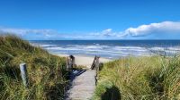 Dort werden wir von Regen und Sturm überrascht. Uns peitscht der Regen und Sand ins Gesicht, aber es ist einfach toll, die Nordseeküste von dieser Seite kennenzulernen!