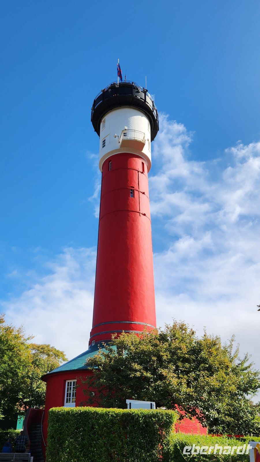Auch auf dieser Insel muss man in eine kleine Inselbahn umsteigen, um den Ort der Insel zu erreichen. Stolz steht der Leuchtturm rot-weiss gestrichen neben dem Bahnhof, einige wollen unbedingt einmal hoch.