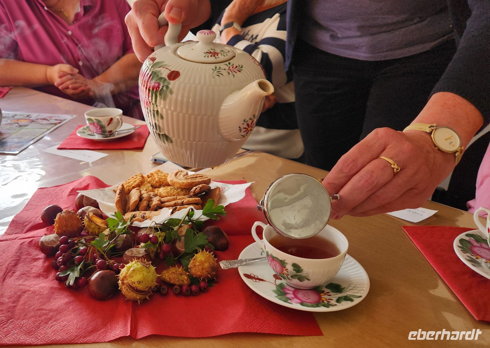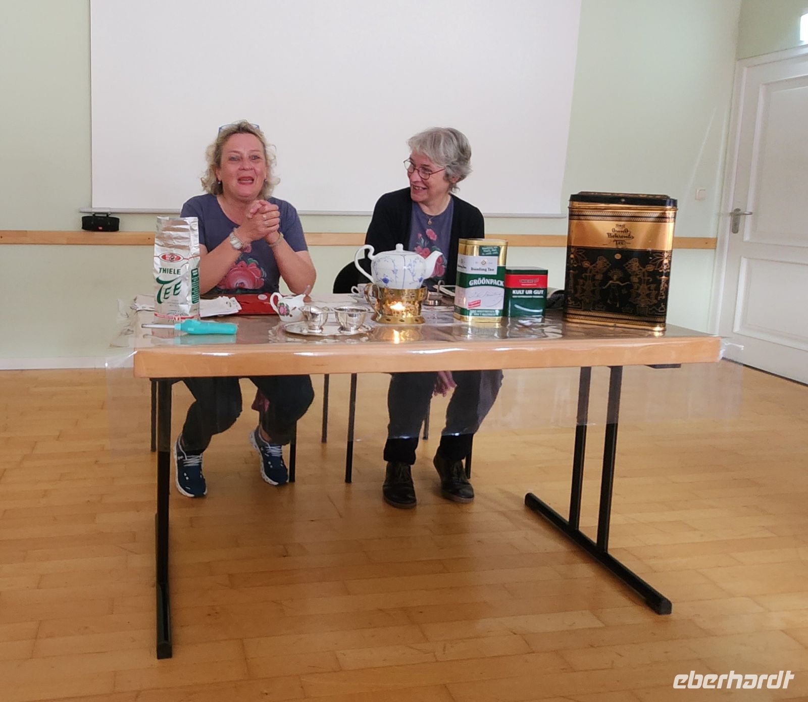 Am Morgen sind wir noch zuvor im historischen Museum von Aurich zu einer Teezeremonie eingeladen. Zwei nette Damen erklären uns alles, was wir wissen sollten, um eine Tasse ostfriesischen Tee auf die richtige Weise zu trinken. Zuerst der Klüntje (Kandis), dann der Tee und dann das Wulkje (echte Sahne), die man stets entgegen dem Uhrzeigersinn eingießt, um ein wenig die Zeit anzuhalten. Nebenbei plaudern die beiden plattdeutsch, wir könnten den beiden ewig zuhören !