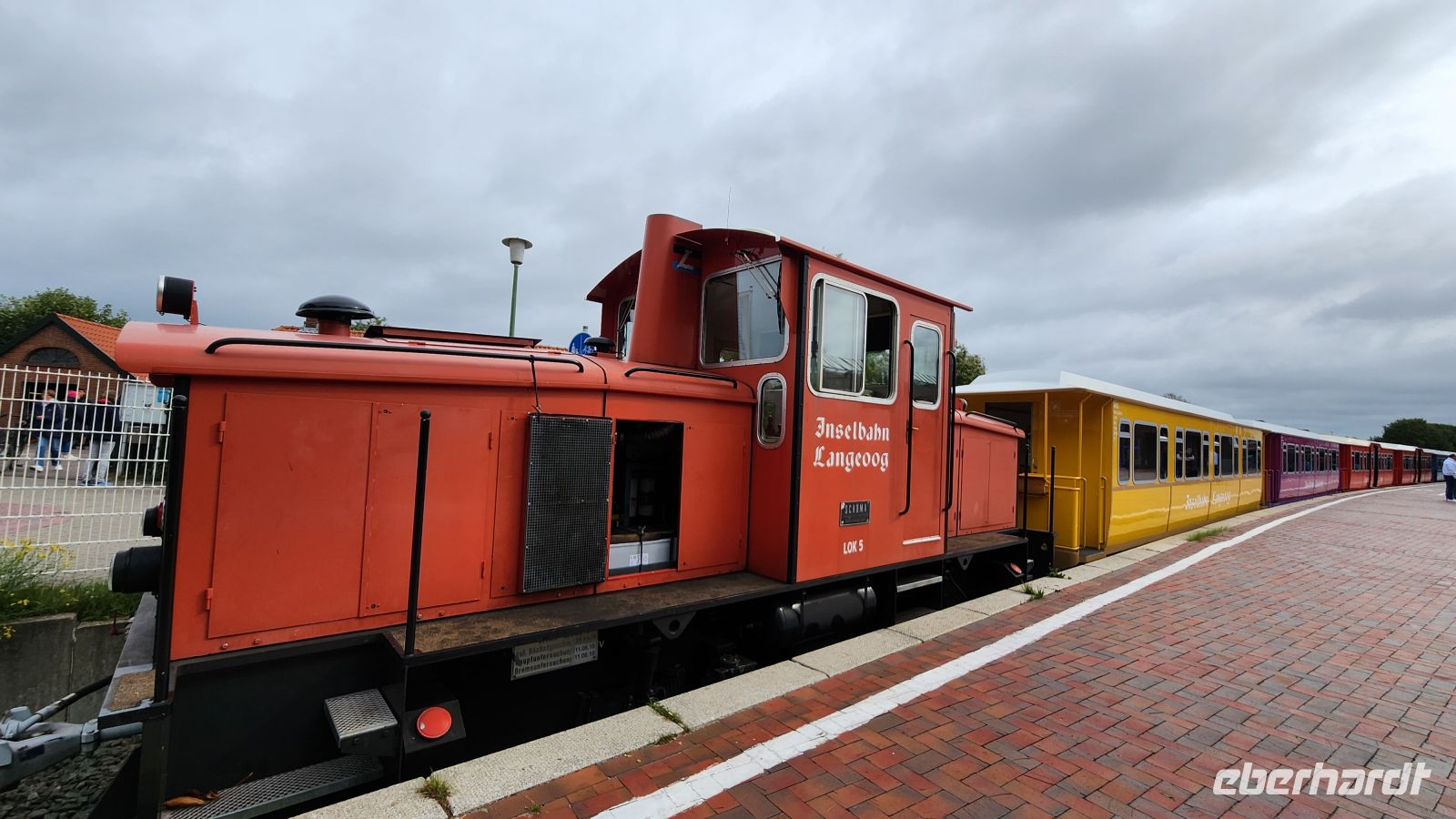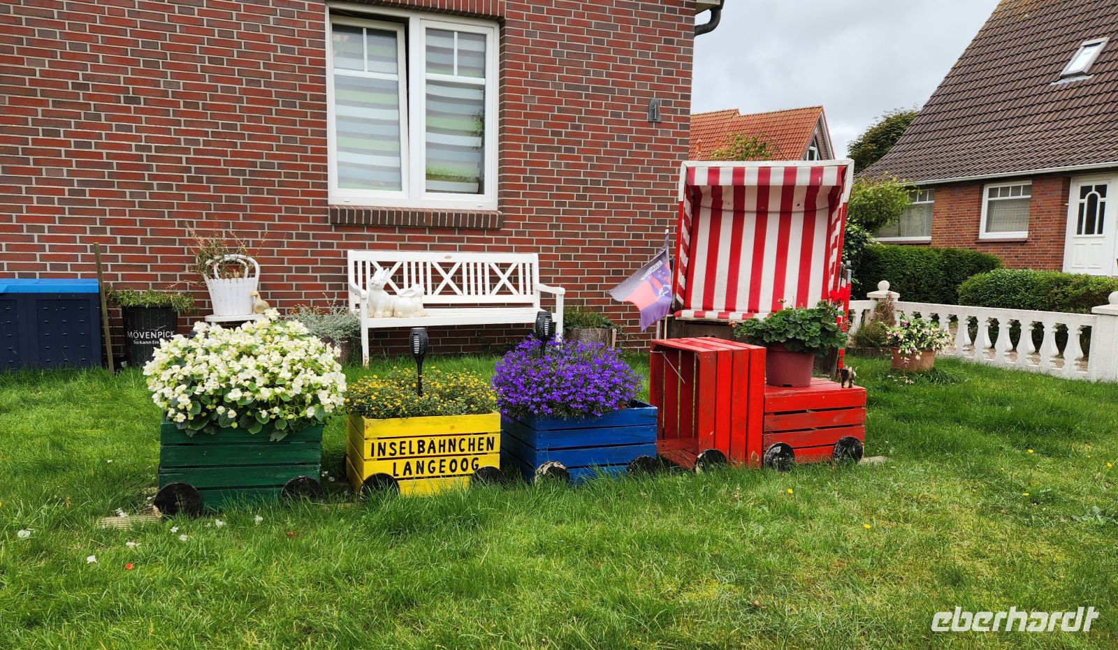 Nach einem gemütlichen Frühstück fahren wir mit unserem Bus zum Fährhafen Bensersiel. Die Fähre bringt uns zum Hafen von Langeoog. Dort müssen wir noch in die kleine, bunte Inselbahn umsteigen. Dann sind wir direkt im Ort von Langeoog angekommen.