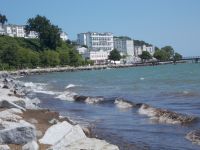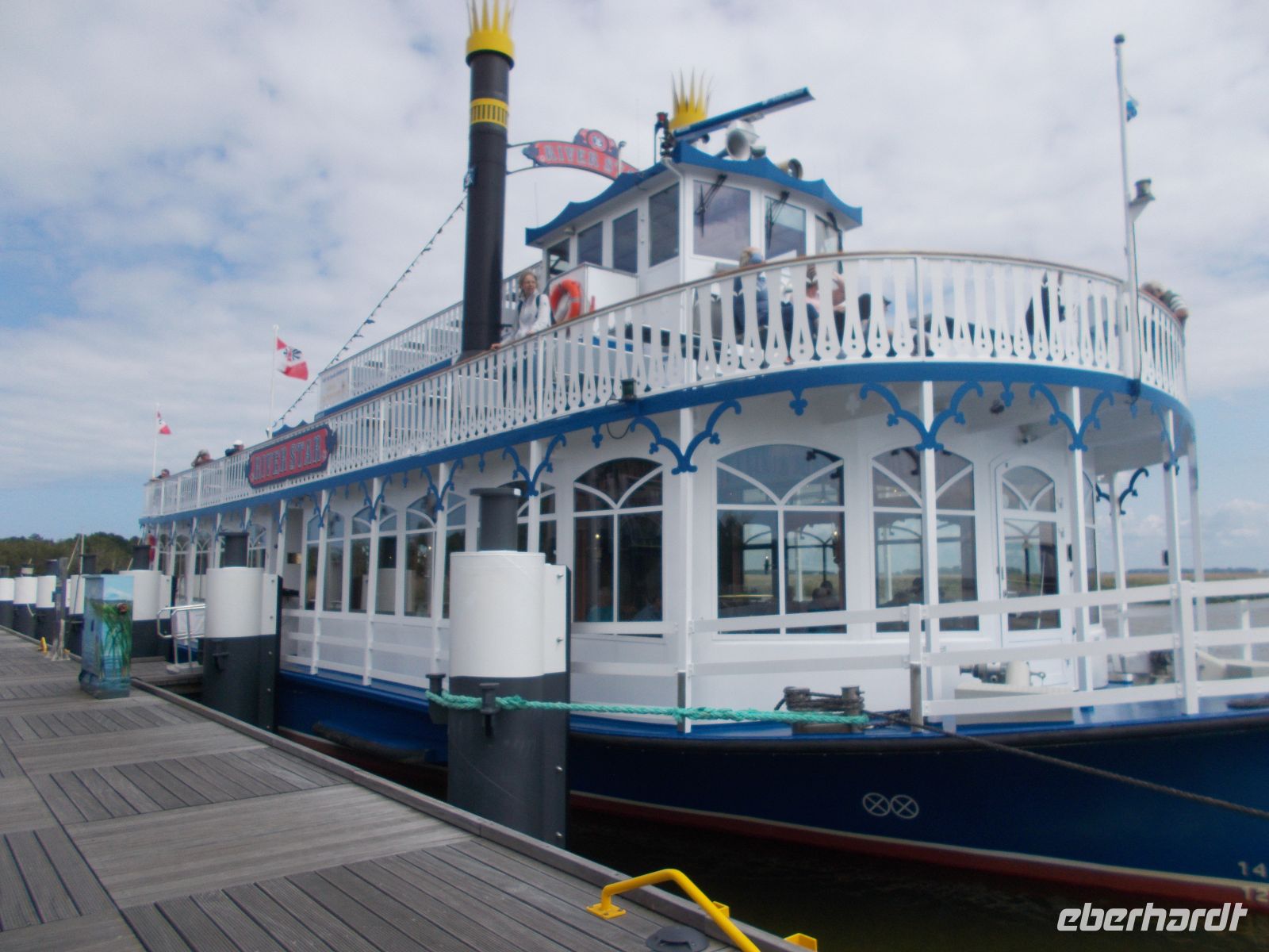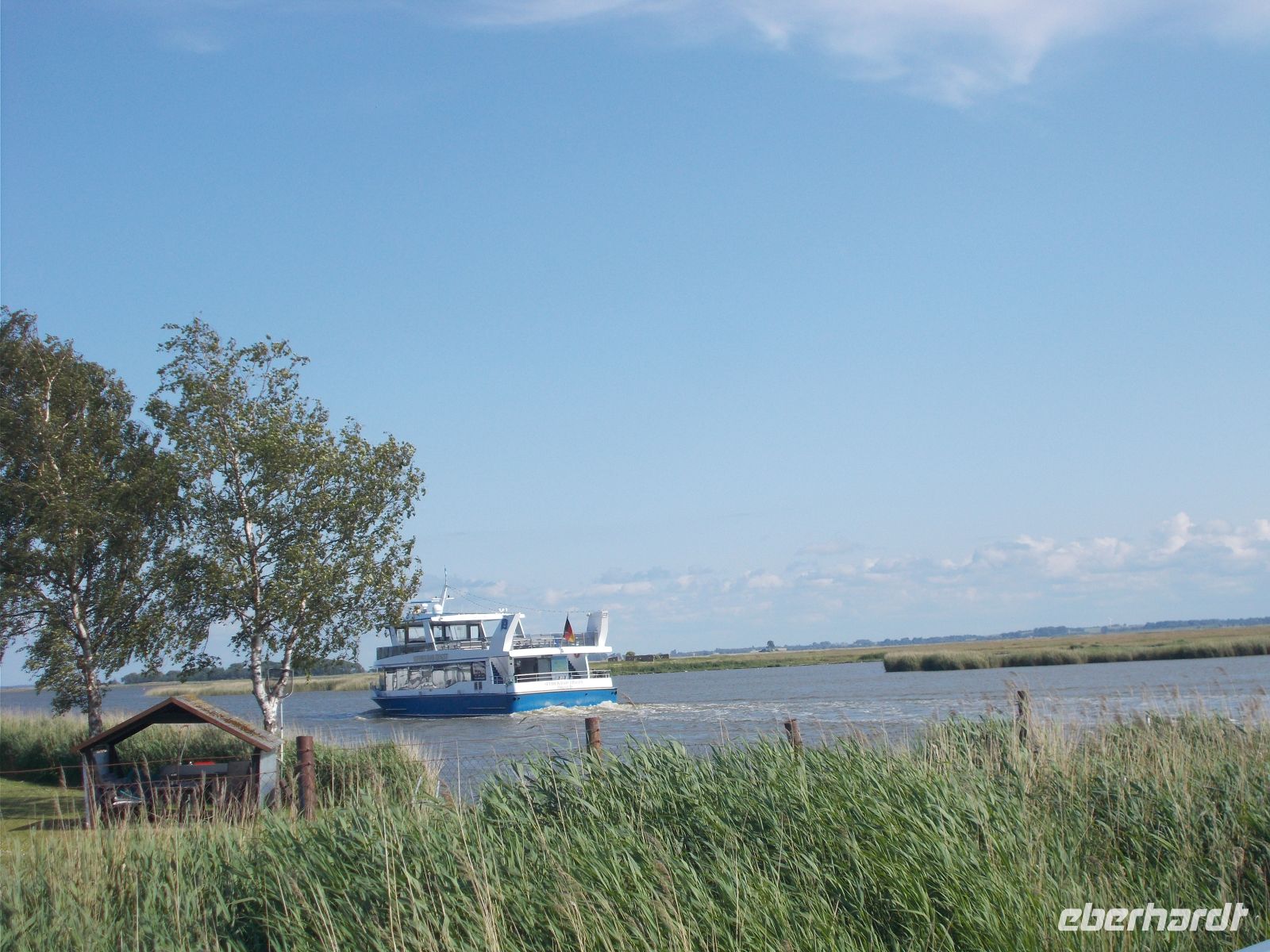Ahrenshoop ,nicht nur auf Hiddensee haben sind die Künster gern niedergelassen. Dieser beschauliche Ort hat sich immer mehr zur Künstlerkolonie entwickelt.Nicht nur die hölzerne Fischerkirche ist einen Besuch wert, es gibt einen extra ausgewiesenen Kunstpfad.Die "bunte Stube" wurde 1922 von einem Malerpaar zum Treffpunkt der Künster gegründet und ist bis heute nicht wegzudenken von Ahrenshoop.Die Freizeit nutzte wieder Jeder für sich.Hier konnten wir schon die ein oder andere ,besonders gestaltete ,Haustür entdecken. Bei einen kleinen Abstecher ,durch das Dörfchen Born,hatten wir noch mehr Gelegenheit ,diese kostbaren Tratidionen und Reetgedeckte Häuser zu bestaunen. In Prerow ,in der Werkstatt der Brüder Roloff,wurden wir in diese besondere Kunst ,der Türgestaltung,eingewiesen.Von hieraus ging es nach Zingst, an den Bodden.Ein Mississippi Dampfer( in Polen gebaut ) nahm uns an Bord. "Leinen los" und wir schipperten über den Barhter Bodden und Zingster Strom. Ein Vogelschutzgebiet seit 1970, wo nur die Kühe Zugang zu ihren Weiden haben.Natur pur !Wieder trockenen Boden unter den Füßen, fuhren wir in den Badeort Zingst und stiegen an die Ostseeseite aus.Bis zum Abendessen im Kurhaus , direkt an der Seebrücke gelegen, hatten wir noch Zeit um den Ort zu erkunden. Das Essen war wieder sehr lecker und reichlich (auch wenn es diesmal nicht im Hotel war)und zum Abschluß stießen wir mit einem Glas Sekt auf das "schöne Inselhüpfen "an.