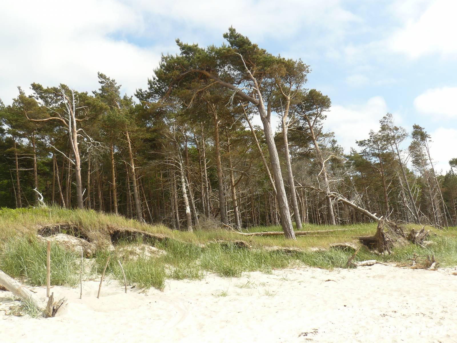 Das Wetter war, wie fast immer auf dieser Reise, hervorragend: sonnig und nicht zu heiß zum Wandern. Unsere Männer nutzten diesen Tag für ein selbstgewähltes Alternativprogramm per Rad. Und die Damen genossen die Wanderung von Wieck am Bodden entlang nach Born. Dort begeisterten uns die alten Katen und Kapitänshäuser, und v.a. die Fischbrötchen und anderen Fischgerichte am Hafen von Born. Derartig gestärkt wollten alle es wagen: wir durchwanderten den Darsswald, zogen am Grab des Försters von Raesfeld vorbei und erreichten schließlich den Darßer Weststrand. Die Mücken hatten uns im Wald zugesetzt, sodass wir mal wieder richtig schnell wurden. Nach einer herrlichen Pause am Meer, ganz ohne Plagegeister, folgte der schwierigste Teil der Wanderung: wir liefen am Strand entlang weiter bis nach Ahrenshoop. Das hört sich einfacher an als es war, denn der Weststrand mit seinen bizarren Baumleichen fällt steiler ab und man wünscht sich geradezu, dass man das linke Bein um 10 cm verkürzen könnte - oder das rechte Bein um 10 cm ausfahren könnte... Einige Gäste machten kurzen Prozess und liefen mit hochgekrempelten Hosen barfuß durchs Wasser. Dort wurde der Strand flacher und es ging sich leichter. Auch diesen wunderschönen Tag ließen wir wieder mit dem Sonnenuntergang am Dierhagener Strand ausklingen.