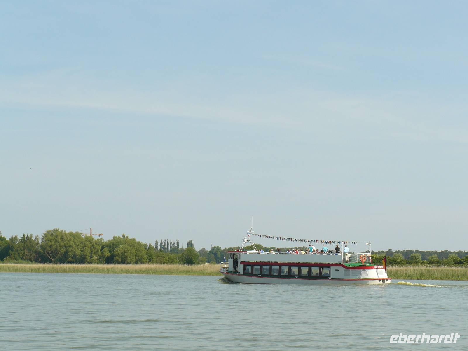 Die Wettervorhersage war schlecht und unser Skipper hatte uns am Vortag wenig Hoffnung gemacht. „Da kommt n Sturm auf, mal sehn ob die Rostocker den nich festhaltn wolln..." Wir hatten Rasmus auf unserer Seite, hatten wir ihm doch am Vorabend nicht nur ein feuchtfröhliches Ständchen gebracht. Das muss ihm gefallen haben, denn weder in „Dierhagi" noch in Wustrow stürmte es am späten Vormittag. Blauer Himmel und ne leichte Briese waren genau das, was wir brauchten. Und in Begleitung von 2 erfahrenen Skippern, die uns zunächst mal dazu brachten Rasmus ein weiteres Opfer zu bringen, indem sie eine Schnapsflasche rumgehen ließen - aber dieses Opfer fiel den meisten von uns nicht allzu schwer - glitten wir über den strahlenden Bodden und ließen uns erzählen wie man mit den Zeesbooten Fisch fängt und wie man diese alten Segelschiffe mit ein paar kleinen Tricks schneller macht. Danach folgte - ja, was wohl?... Klar - das Fischbrötchen! Und einige Gäste konnten das Wandern einfach nicht lassen. Sie gingen zu Fuß am Strand entlang zum Hotel zurück. Es hatte 27 Grad und es wurde schwülwarm. Die anderen nutzten dieses tropsche Flair und legten sich an den Dierhäger Stand. Als die Reiseleiterin kam fand sie ein lustiges Bild vor: in einer langen Reihe lag ein Gast neben dem anderen. Es war unschwer zu erkennen, dass die Gruppe einen gewissen Zusammenhalt gefunden hatte. Das Wasser hatte immer noch 14 Grad, aber das hielt unsere Nixen nicht zurück. Dann allerdings zogen Wolken auf und als der Donner uns laut mahnte packten wir unsere sandigen Kleider und Handtücher zusammen. Beim Verlassen des Strandes trafen wir auf die Strandwanderer und bei den ersten Regentropfen erreichten wir sehr zufrieden über diesen letzten schönen Urlaubstag das Hotel. Der letzte Abend fiel buchstäblich ins Wasser - kein Sonnenuntergang am Strand mehr! Aber darüber konnten wir nicht böse sein, man muss die Feste feiern wie sie fallen, und unser Fest fiel nun mal nicht auf den letzten Abend. Wir hatten ja zum Glück die Gelegenheit am Vorabend schon genutzt und schmiedeten nun kräftig Pläne für weitere Reisen...