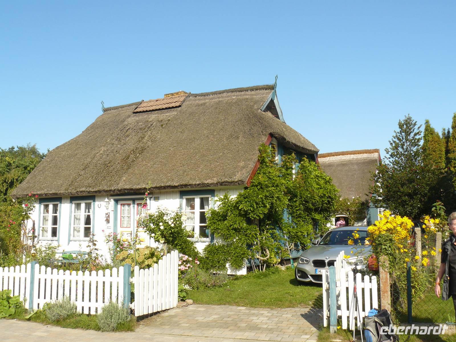 Ein weiterer herrlicher Herbsttag folgte. Bei strahlend blauem Himmel zogen wir los und wanderten vollzählig von Wieck am Bodden entlang nach Born. Dort begeisterten uns die alten Katen und Kapitänshäuser, und v.a. die Fischgerichte am Hafen von Born.