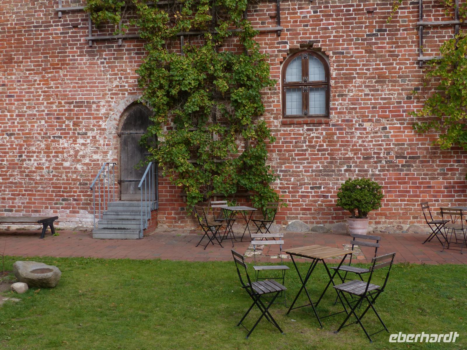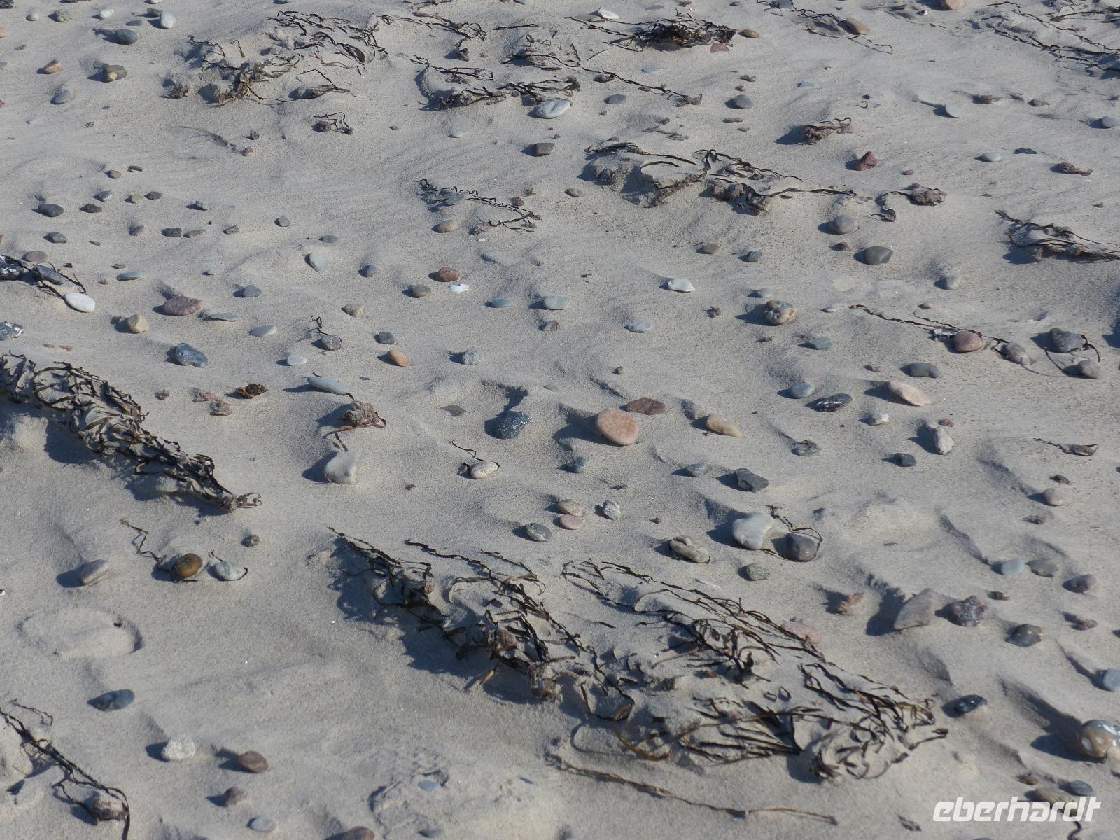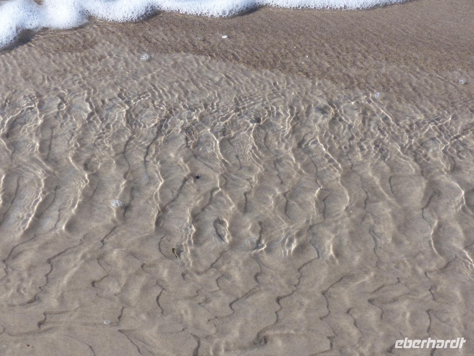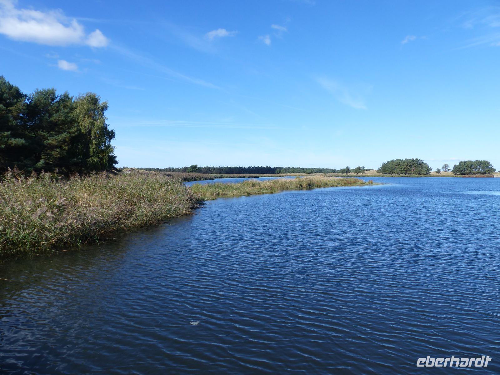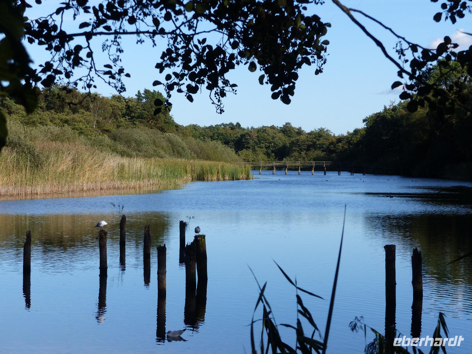 Windstärke 8 hatte der Wetterdienst vorhergesagt. Da wollte unser Skipper nicht hinausfahren. Also gab es keinen Segeltörn. Und so zogen die meisten Gäste mit mir nach Ribnitz ins Bernsteinmuseum. Dort schimmerten uns in goldgelben Tönen Schmuck und Kleinkunst entgegen. Und auch das Gebäude, in dem das Museum untergebracht ist, ist sehr schön: die alten Klostermauern geben Atmosphäre! Draußen war es unfreundlich, grau - zunächst. Als wir dann aber das Museum verließen klarte es auf. Und der Bummel durch den Markt endete bei vielen Gästen auf der Terrasse eines Cafes in der Sonne! Ein wanderfreier Tag - mit Margret geht das einfach nicht, stellten meine Gäste bald fest. Das Wetter war nun zwar immer noch stürmisch, denn der Wind fegte, aber es war wunderschön. Der Wind hatte alle Wolken weggeblasen. Und wer wollte, konnte mich am Nachmittag noch ins Ribnitzer Moor begleiten. Dort machten wir einen kleinen Abstecher zu den Torfstichen. In früheren Jahren hatte man hier legal und mancherorts auch illegal Torf abgebaut. Die legalen Torfstiche sind heute, nachdem man aufgehört hat das Grundwasser abzupumpen, große Moorseen geworden, die langsam zuwachsen. Zwischen diesen Seen wurde ein kleiner Pfad angelegt, dem wir nun folgten. Der Rückweg erfolgte am Strand entlang bei blitzblauem Himmel und tiefblauem Meer. Und wir fanden sogar einige Hühnergötter. Das sind Lochsteine. Findet man einen Hühnergott, muss man die Augen schließen, ein kleines Tänzchen aufführen und sich etwas wünschen. Dieser Wunsch soll dann in Erfüllung gehen. So zumindest der Volksglaube. Und einer meiner Gäste ließ es sich nicht nehmen und führte dieses Tänzchen auf. Ich drücke ganz dolle die Daumen, dass dieser Wunsch dann auch bald in Erfüllung geht - nicht traurig sein, wenn's nicht funktioniert. Ich warte schon seit 4 Jahren auf die Erfüllung meines letzten Hühnergott-Wunsches... Abends zogen wieder Wolken auf. Es hat immer wieder geregnet auf dieser Reise, aber nur nachts. Bei unseren Touren haben wir keinen einzigen Regentropfen abbekommen, und das, obwohl die Wettervorhersage vor unserer Abreise wirklich fürchterlich war. Wer von Euch hat mit seinem sonnigen Gemüt denn diesen Regen vertrieben??? Aber meine Lampions blieben nun eben trotzdem im Koffer (...nächster Versuch erfolgt beim Adventswochenende in Rheinsberg....) und wir verbrachten dafür diesen Abend gemütlich an der Hotelbar.