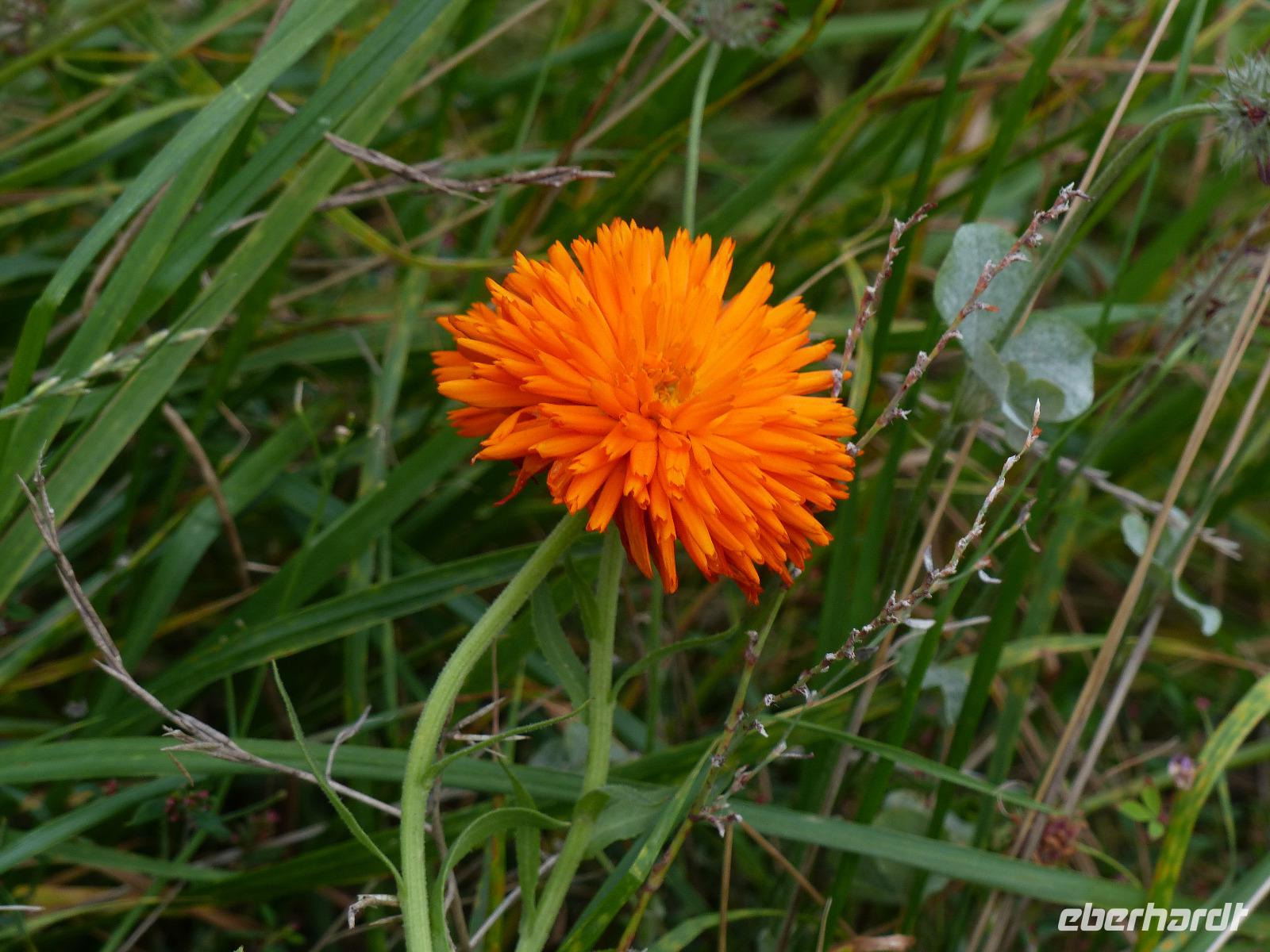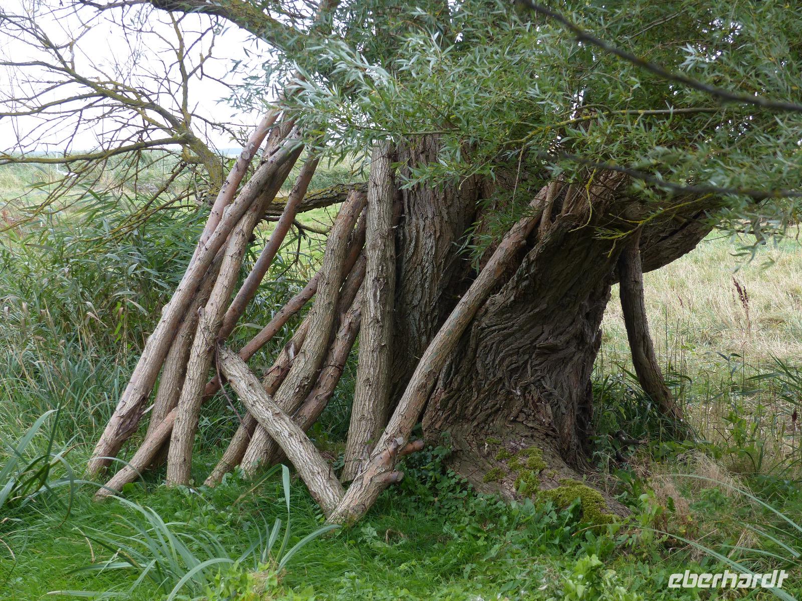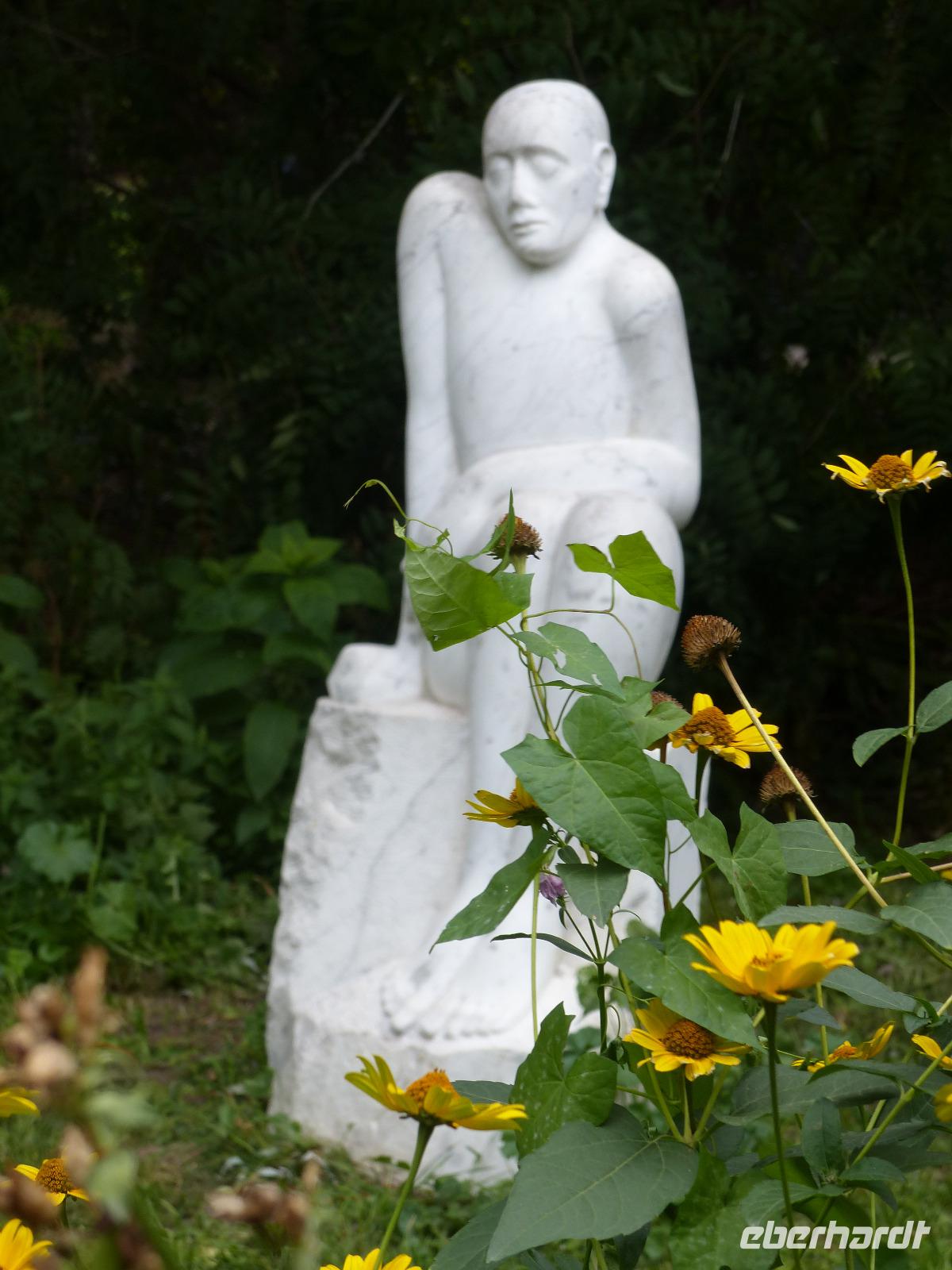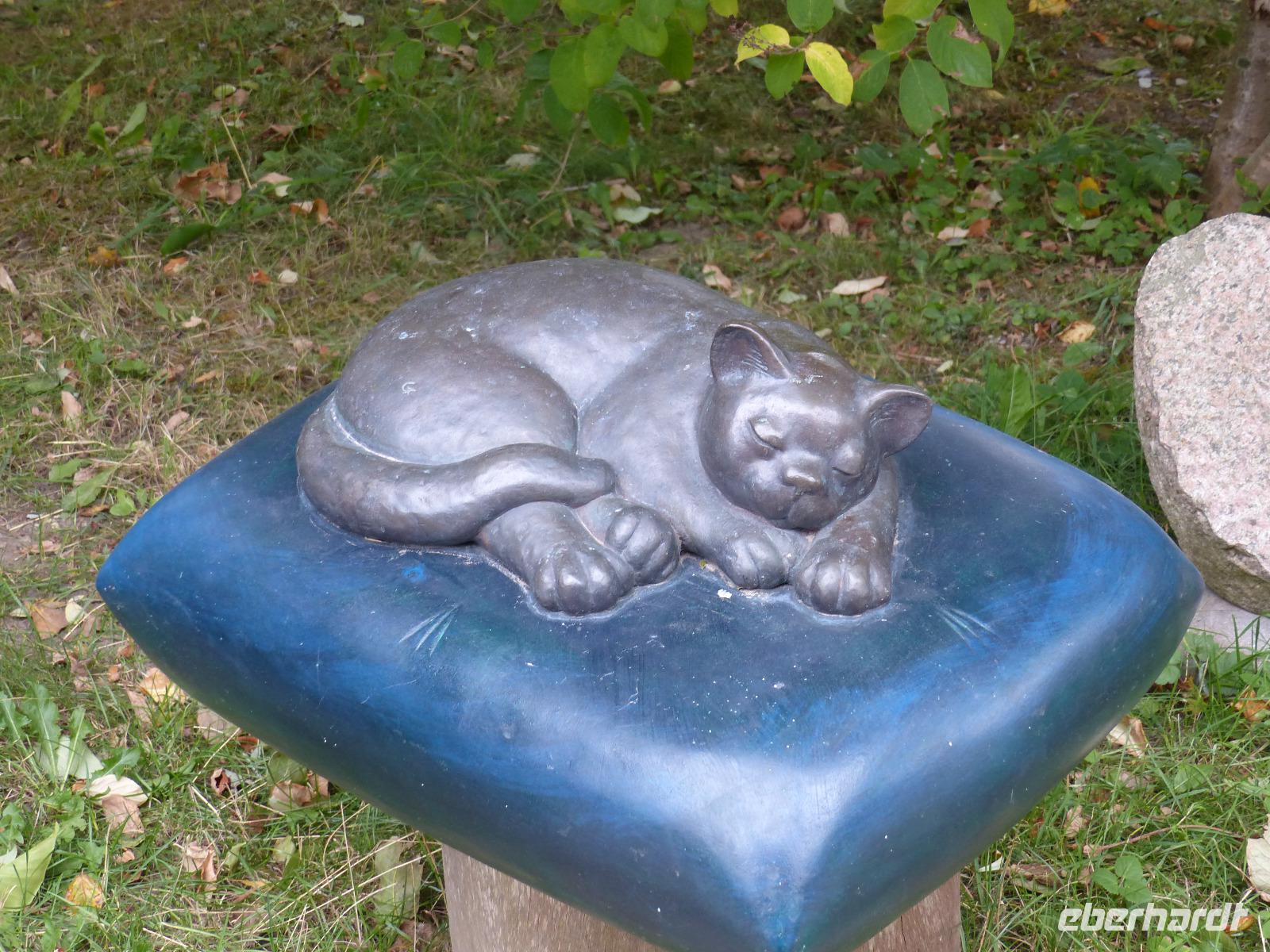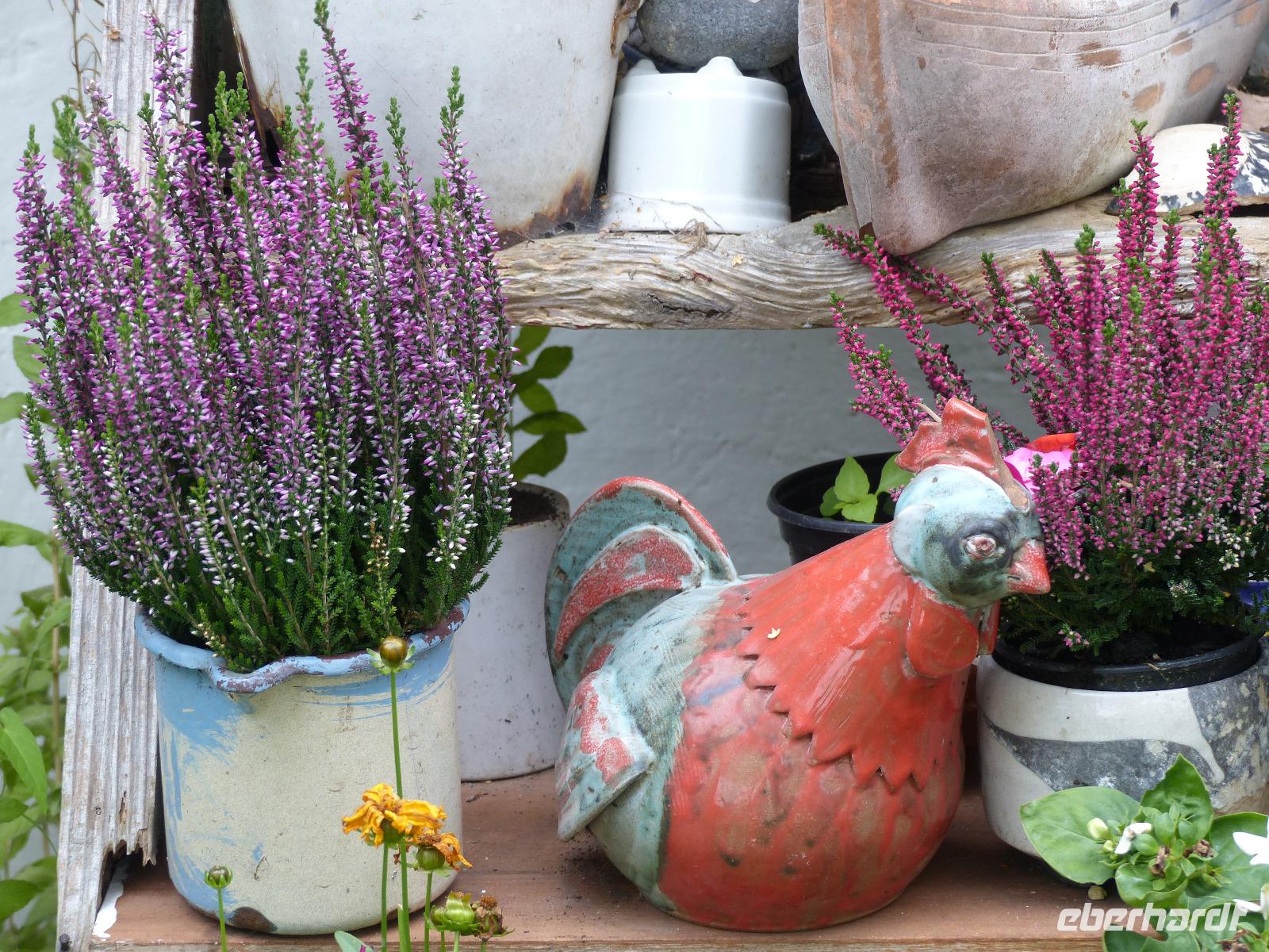Am Vorabend bahnte sich bei mir ein Problem an: ich hatte doch glatt nach dem Zähneputzen Zahnstücke in der Hand. Da hieß es für mich früh aufstehen und hoffen, dass der Zahnarzt in Wustrow auch bereit ist mich schnell zu behandeln. Alles klappte, ich stand pünktlich um 9 Uhr wieder bissfest in Wustrow an der Seebrücke, aber ich musste mit leerem Magen losziehen. Essen durfte ich erst 2 Stunden später. Meine Gäste hatten unterdessen das Frühstück genossen und standen voller Energie nun vor mir. Das Wetter zeigte sich heute Vormittag von seiner sehr rauen Seite. Es stürmte kräftig und riesige Wellen donnerten auf die Wellenbrecher zu. So beließen wir es bei einem kurzen Blick auf die Seebrücke, denn eine morgendliche Meeresdusche wollten wir uns ersparen. Gut eingepackt in dicke Jacken, mit Mützen und Handschuhen trotzten wir diesem Herbststurm. An der Steilküste entlang wanderten wir in Richtung Ahrenshoop. Hagebutten und Sandornbeeren säumten unseren Weg. Im letzten Jahr war wieder ein größeres Stück der Steilküste abgebrochen. Der Weg, den ich noch im letzten Jahr mit den Eberhardt-Reisenden entlang gewandert bin, ist heute aus Sicherheitsgründen teilweise gesperrt. Das Meer gräbt hier immer mehr Land ab und Stück für Stück verschwindet der Weg in den Fluten. Wir bestiegen den höchsten Berg des Fischlandes, den 17,9 m hohen Bakelberg und zogen dann landeinwärts weiter. Ein rosarotes Popartkunstwerk erinnert hier oben an Paul Müller-Kaempff, der in Ahrenshoop die Künstlerkolonie gegründet hatte. Danach wanderten wir also eine auch für mich neue Strecke, spazierten an alten Weidenbüschen entlang durchs Landesinnere, zwischen wunderschönen Streublumenfeldern hindurch. Auch diese boten sich den Fotografen an. Nach unserer Ankunft in Ahrenshoop zogen wir uns zur Mittagspause in die Wärme zurück und genossen je nach Wunsch Herzhaftes, Fischiges oder Süßes. Ein paar Gäste gefiel Ahrenshoop so gut, dass sie gleich da blieben und auf den Rest der Wanderung verzichteten. Die Wanderer zogen weiter zwischen herbstlichen Gärten entlang zum Dornenhaus. Diese Galerie, die ihre Plastiken sehr malerisch im Garten plaziert hat, schauten wir uns kurz an. Das Dornenhaus stand aber schon lange bevor die Künstler aufs Fischland kamen. Dann wanderten wir weiter zum Hafen von Althagen und machten dort einen weiteren Halt, denn der Wunsch nach Räucherfisch kam auf. Vorüber an weiteren herrlich blühenden, herbstlichen Gärten voller Dalien, Apfelbäumchen mit leuchtenden Früchten und Sonnenblumen wanderten wir aus Ahrenshoop hinaus, zwischen Pferdekoppeln und Feldern entlang und erreichten schließlich, nachdem wir einen hübschen Wald durchquert hatten, Wustrow. Unser Ziel war der dortige Boddenhafen. Wer wollte, konnte sich die Kirche von Wustrow ansehen und auch den Turm besteigen, während andere es vorzogen, ein leckeres Eis zu essen, bevor es dann mit windzerzausten Frisuren, stahlenden Augen und roten Wangen wieder ins Hotel zurück ging.