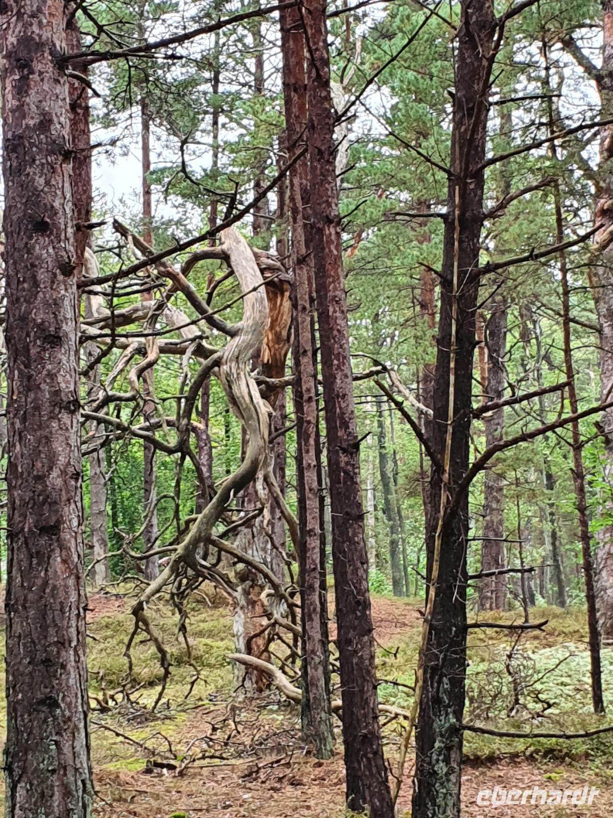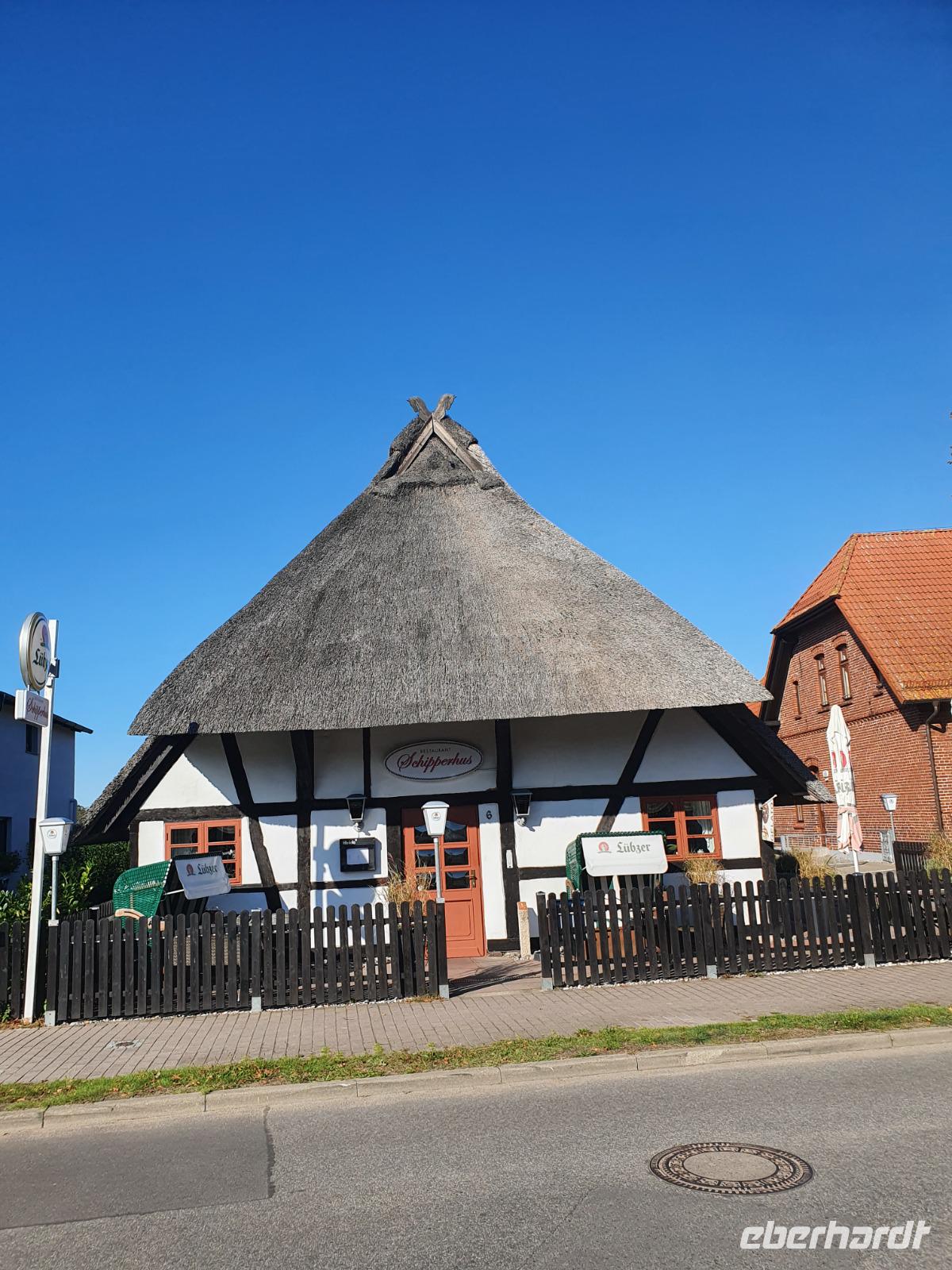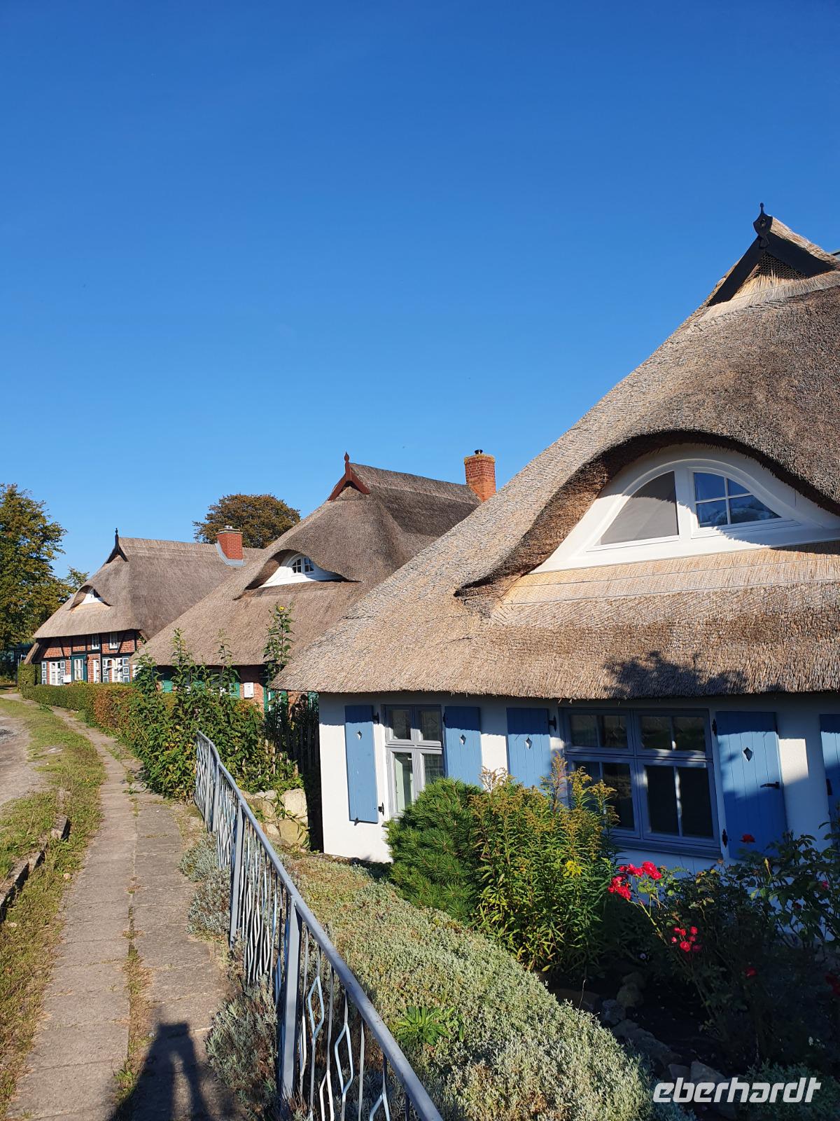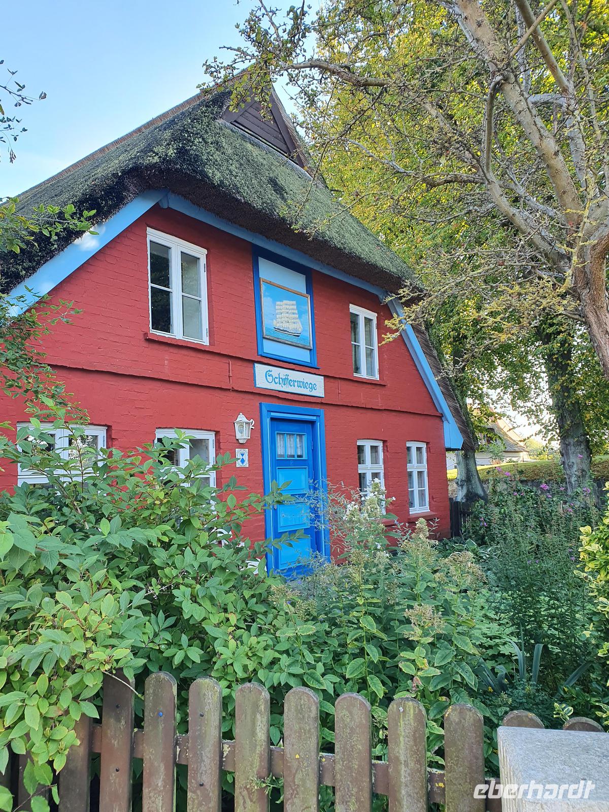 Der Blick zum Himmel wird von leichtem Nieselregen getrübt. Wanderfreudig fahren wir nach Wieck auf dem Darß. Der kleine Ort mit seinen für die Region typischen reetgedeckten Häusern und bunt bemalten Haustüren erinnern an die Zeit, da Fischer, Seefahrer und Bauern mit ihrem Tun die Region prägten. Uns fallen immer wieder einander zu- oder abgewandte Pferdeköpfe an den Giebeln auf. Sie sollen Böses wie Feuer, Blitzschlag, Unheil oder Krankheiten abwenden. Entlang des Boddens und durch den Wald gelangen wir gegen Mittag nach Born. Der leichte Nieselregen bleibt uns leider treu. Ein Teil der Gruppe lässt sich deshalb vom Bus nach Ahrenshoop bringen. Wir wandern weiter am Bodden, müssen diesen Weg jedoch wegen einer Gefahrenstelle verlassen und vorbei an Wiesen und Weiden erreichen wir am Nachmittag die kleine Schifferkirche in Ahrenshoop. Der Bau erinnert an ein kieloben liegendes Schiff, der Glockenturm der Kirche steht neben der Kirche. Hier endet unsere erste Wanderung und das Wetter verspricht für die kommenden Tage eine deutliche Besserung.