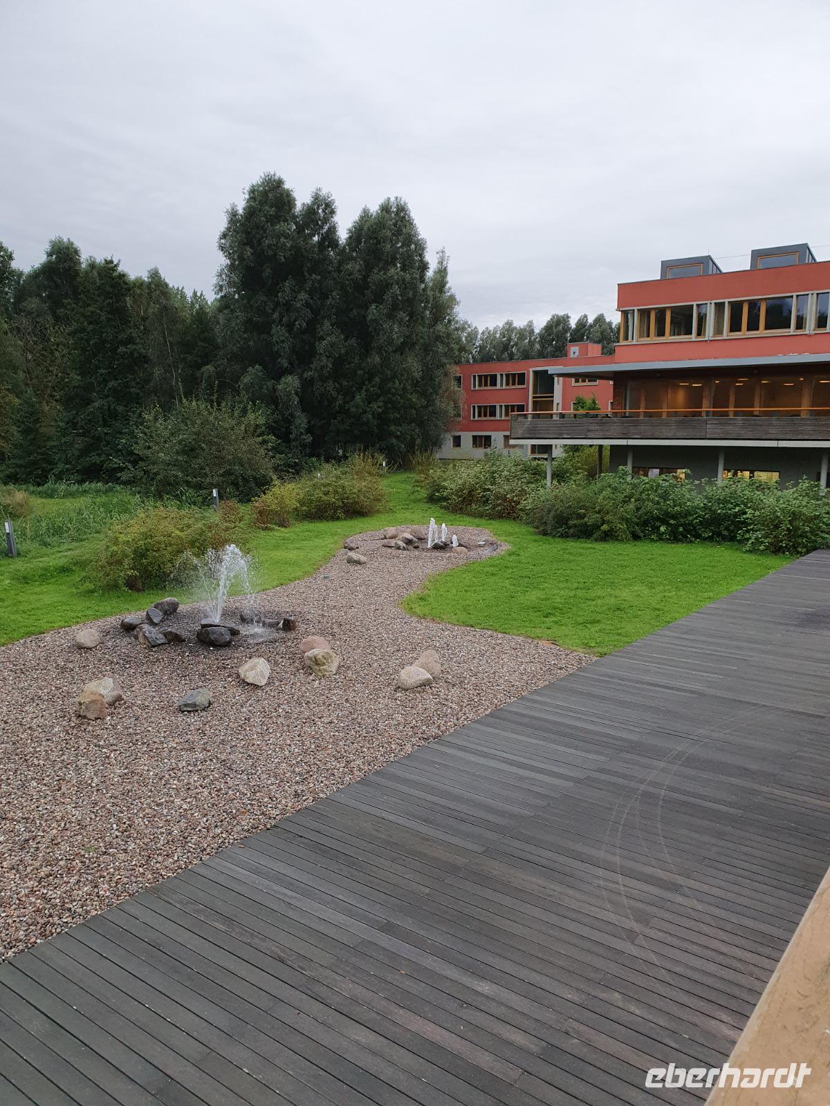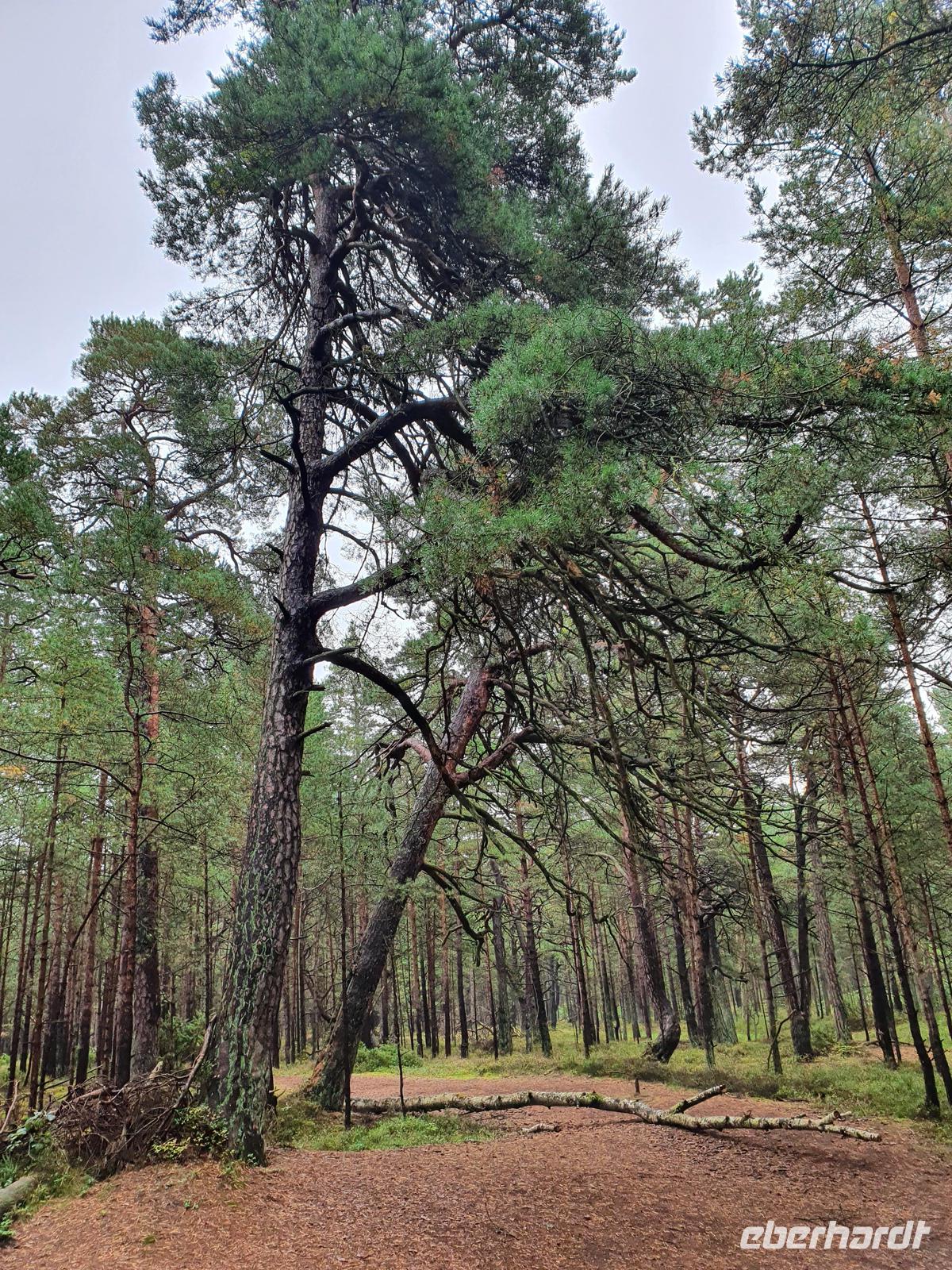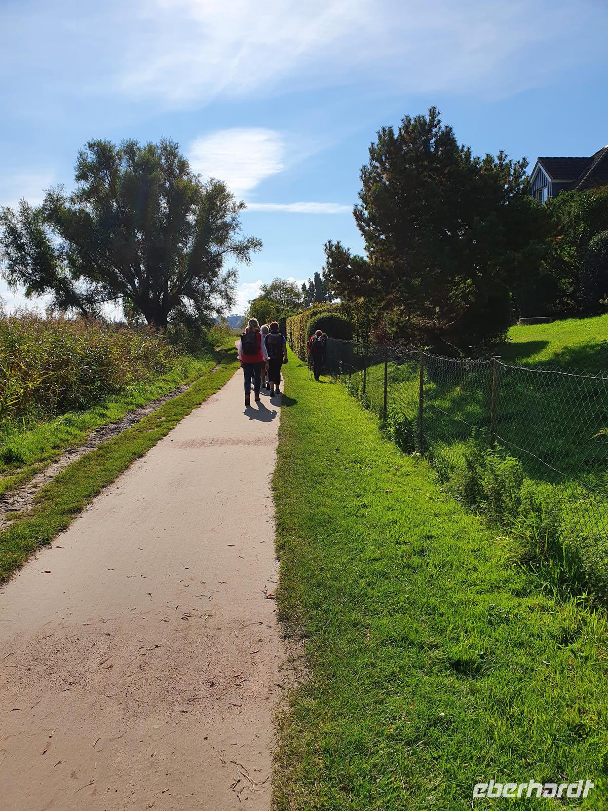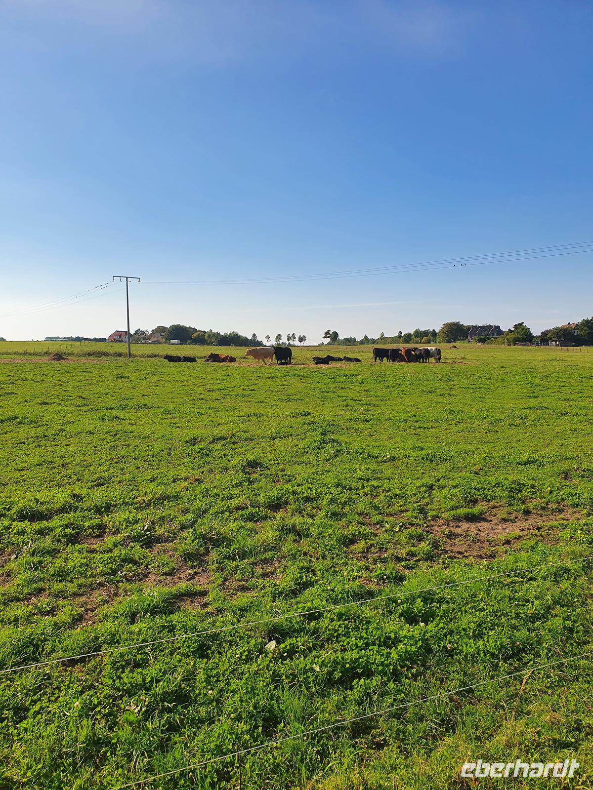 Der Blick zum Himmel wird von leichtem Nieselregen getrübt. Wanderfreudig fahren wir nach Wieck auf dem Darß. Der kleine Ort mit seinen für die Region typischen reetgedeckten Häusern und bunt bemalten Haustüren erinnern an die Zeit, da Fischer, Seefahrer und Bauern mit ihrem Tun die Region prägten. Uns fallen immer wieder einander zu- oder abgewandte Pferdeköpfe an den Giebeln auf. Sie sollen Böses wie Feuer, Blitzschlag, Unheil oder Krankheiten abwenden. Entlang des Boddens und durch den Wald gelangen wir gegen Mittag nach Born. Der leichte Nieselregen bleibt uns leider treu. Ein Teil der Gruppe lässt sich deshalb vom Bus nach Ahrenshoop bringen. Wir wandern weiter am Bodden, müssen diesen Weg jedoch wegen einer Gefahrenstelle verlassen und vorbei an Wiesen und Weiden erreichen wir am Nachmittag die kleine Schifferkirche in Ahrenshoop. Der Bau erinnert an ein kieloben liegendes Schiff, der Glockenturm der Kirche steht neben der Kirche. Hier endet unsere erste Wanderung und das Wetter verspricht für die kommenden Tage eine deutliche Besserung.