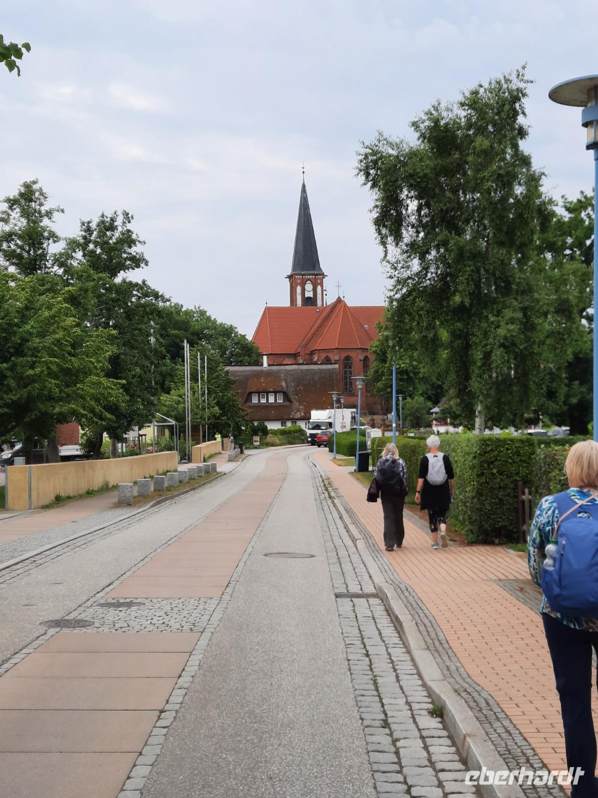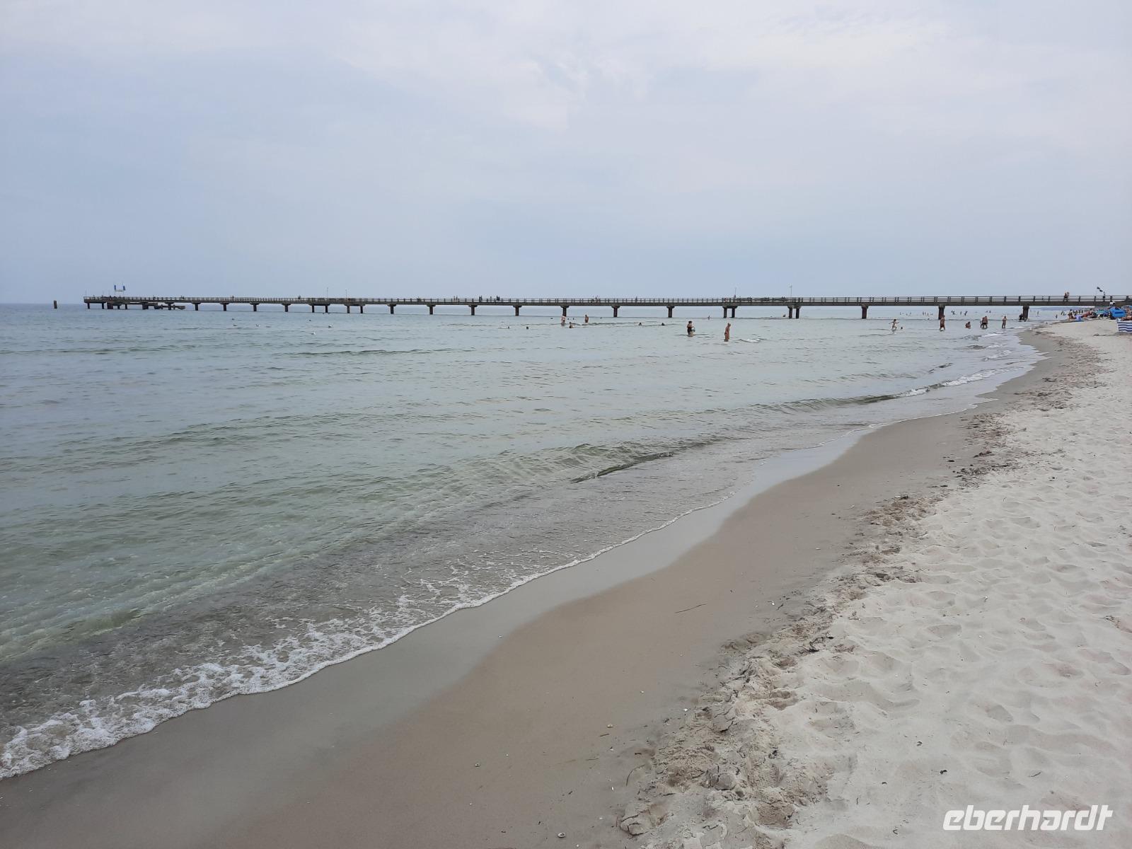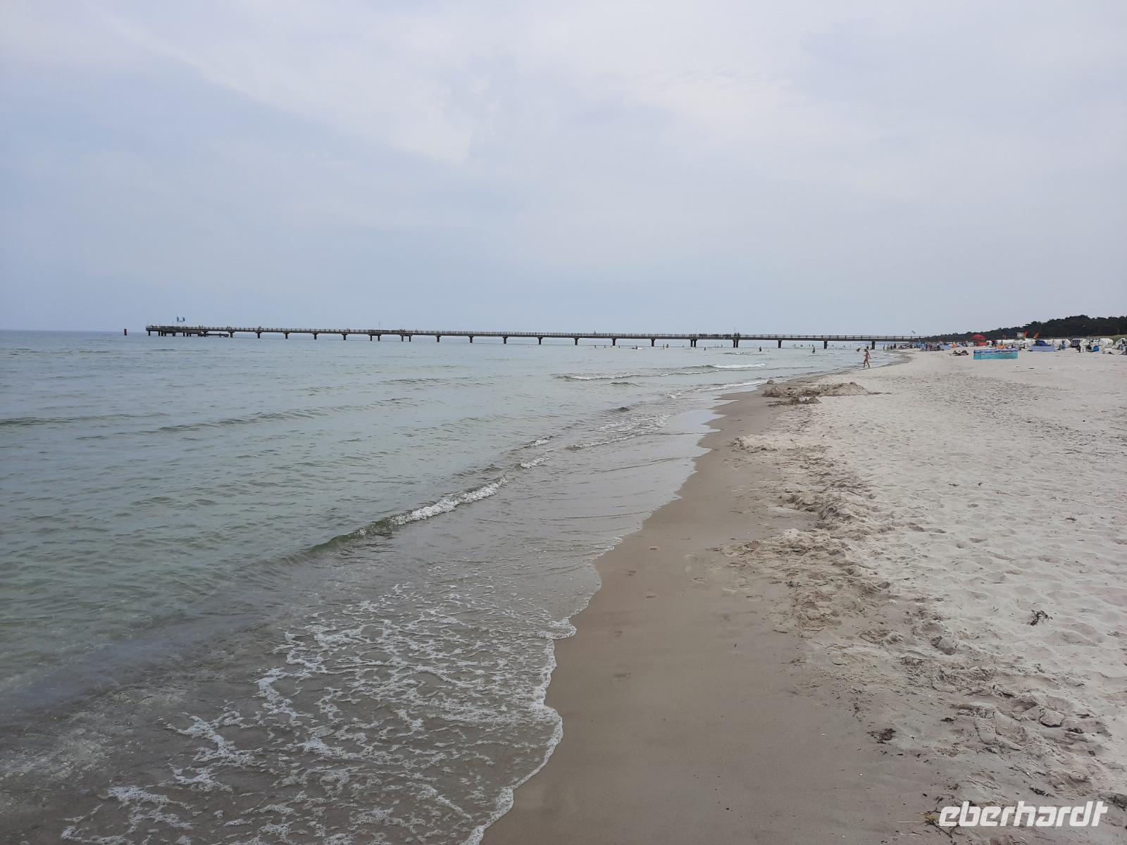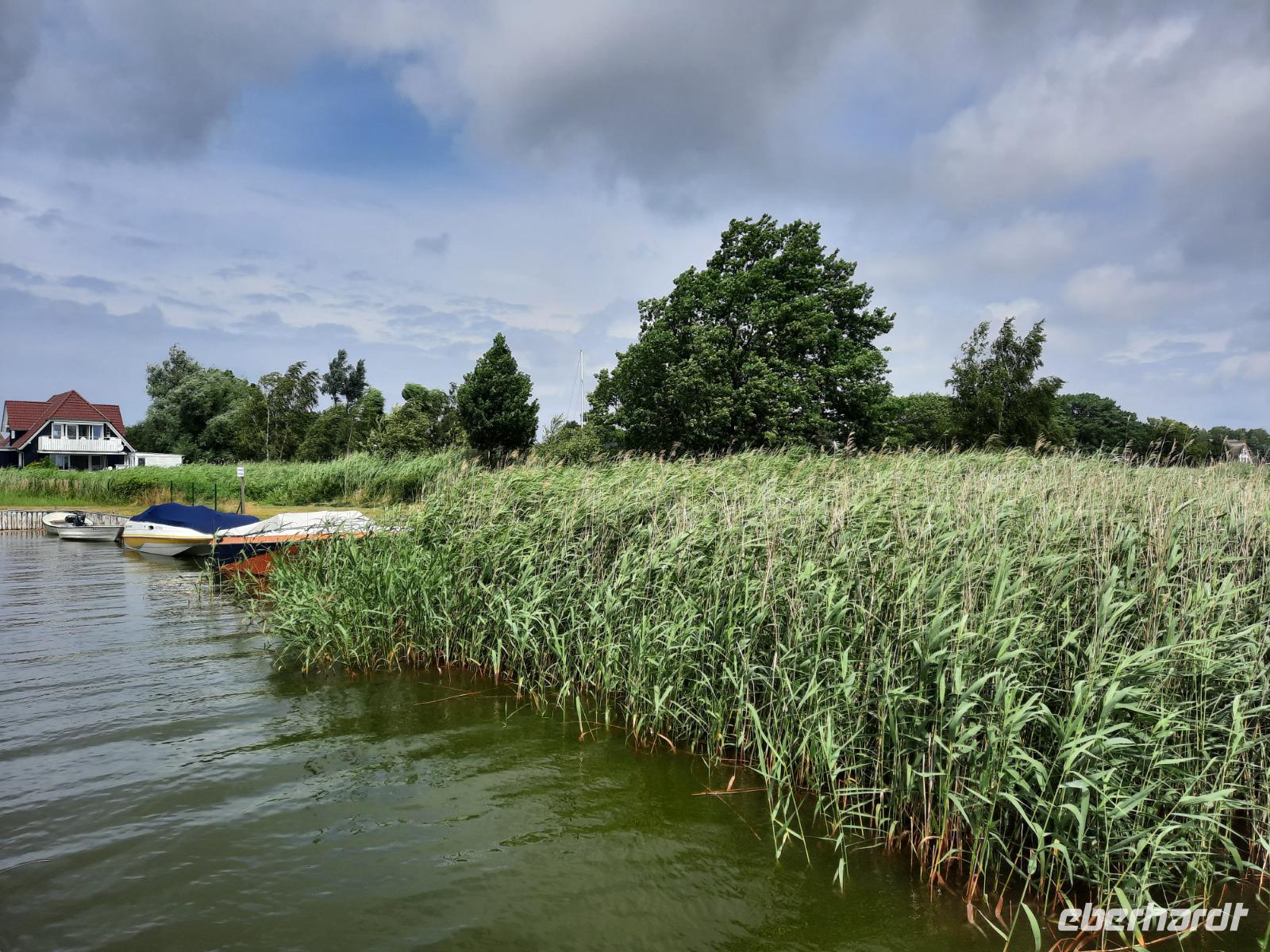 Gut gestärkt vom üppigen Frühstücksbuffet konnten wir auch heute bei angenehmen Temperaturen um die 20 Grad starten. Der Blick zum Himmel versprach zwar am Morgen nichts Gutes, denn es regnete bei unserer Abfahrt in Dierhagen. Nach gerade einmal zehn Minuten Busfahrt waren wir am kleinen Hafen von Wustrow angekommen und ganz plötzlich war kein Niederschlag mehr in Sicht - was für ein Glück! Vom Parkplatz am Hafen wanderten wir zunächst zur Wustrower Seebrücke, die noch Ende des 19. Jahrhunderts lediglich eine 50 Meter lange Holzbrücke war. Diese wurde dann durch Eisgang zerstört und erst 1992/93 wurde die heutige, 240 Meter lange Seebrücke errichtet. Der Tag war noch jung und somit hatten wir die Seebrücke noch ganz für uns allein! Von hier aus wanderten wir weiter der Küste entlang, die stetig höher wurde. Wenig später führte uns dann ein kurzer Abstecher zum Bakelberg, dem sogenannten "Mount Everest" des Fischlands. Immerhin handelt es sich hier um die höchste Erhebung der Halbinsel und für Seeleute war der Berg früher ein wichtiger geographischer Orientierungspunkt, worauf auch der Name "Bake" zurückzuführen ist. Anschließend erreichten wir den Steilabfall Hohes Ufer mit spektakulären Blicken auf Strand und Ostsee. Das Hohe Ufer hat schließlich eine bis zu 18 Meter hohe Kliffranddüne, die aus eiszeitlichen Sanden gebildet ist und die starke Meeresbrandung der Ostsee hat dann zur Herausbildung des Kliffs geführt. Durch den stetigen Abtrag des alten Inselkerns des Fischlands bricht es besonders nach herbstlichen Stürmen immer wieder nach und die Küstenlinie verlagert sich interessanterweise langsam nach Osten. In dem hohen Steilabbruch haben sich sogar Uferschwalben eingenistet und Bruthöhlen gegraben. Später gingen wir dann in das Künstlerdorf Ahrenshoop mit seinen ca. 700 Einwohnern hinein und bogen den historischen Grenzweg (Grenze südlich Mecklenburg/nördlich Vorpommern) ein. Wir gelangten so zur belebten Dorfstraße, wo wir eine wohlverdiente kleine Pause einlegten und die vielen wunderschönen Häuser in regionaltypischer Bauweise mit rohrgedeckten Dächern bewundern konnten. Später kamen wir dann noch an der Schifferkirche vorbei, die erst vor knapp 70 Jahren eingeweiht wurde und den Ortsbezug durch die gewählte Architektur und die verwendeten heimischen Baumaterialien unterstreichen. Sie trägt ihre Verbundenheit zur Seefahrt nicht nur im Namen, sondern ist sogar einem kieloben liegenden Boot nachempfunden. Unsere Wanderung führte uns nun südlich weiter. Wir erreichten so Althagen mit seinem malerischen Hafen. Wie wäre es denn mit Räucherfisch und einer Mini-Bierprobe...? Gesagt, getan... Zuerst stärkten wir uns mit Räucherfisch am Imbiss "Zur Reuse", wo es selbstverständlich auch eine eigene Räucherei gab. Wir saßen in rustikalem Ambiente an langen Eichenbänken und konnten den frischen Fisch aus dem Rauch genießen. Es wird immer gesagt, ein Fisch muss schwimmen... Also sollte es auch etwas zum "Nachspülen" geben und so konnten wir wenig später das Bier der erst im Jahre 2017 eröffneten "Fischland-Brauerei" verkosten, welches es übrigens ausschließlich in Ahrenshoop zu trinken gibt. Zwischenzeitlich setzte leichter Regen ein, der aber ganz schnell wieder vorüber war... So konnte es nach dieser kulinarischen Stärkung gut gelaunt in den Nachmittag gehen. Wir setzten unsere Wanderung fort und auf dem Deichweg gelangten wir an Niehagen vorbei bzw. der Boddenküste entlang bis Wustrow zurück. Als wir den Hafen in Wustrow erreichten, stärkten wir uns nochmals - diesmal allerdings mit Kaffee und Eis oder Törtchen. Heute lagen uns schließlich stolze 16,7 Wander-Kilometer in den Beinen!