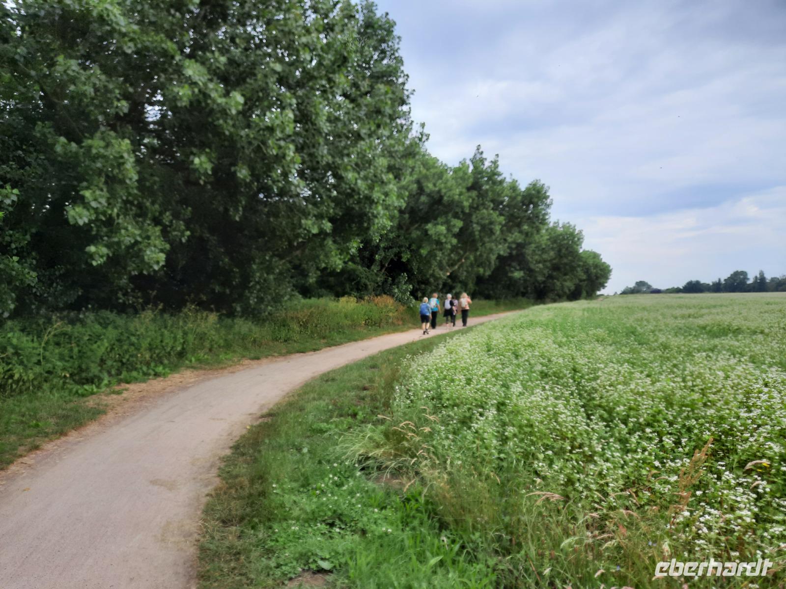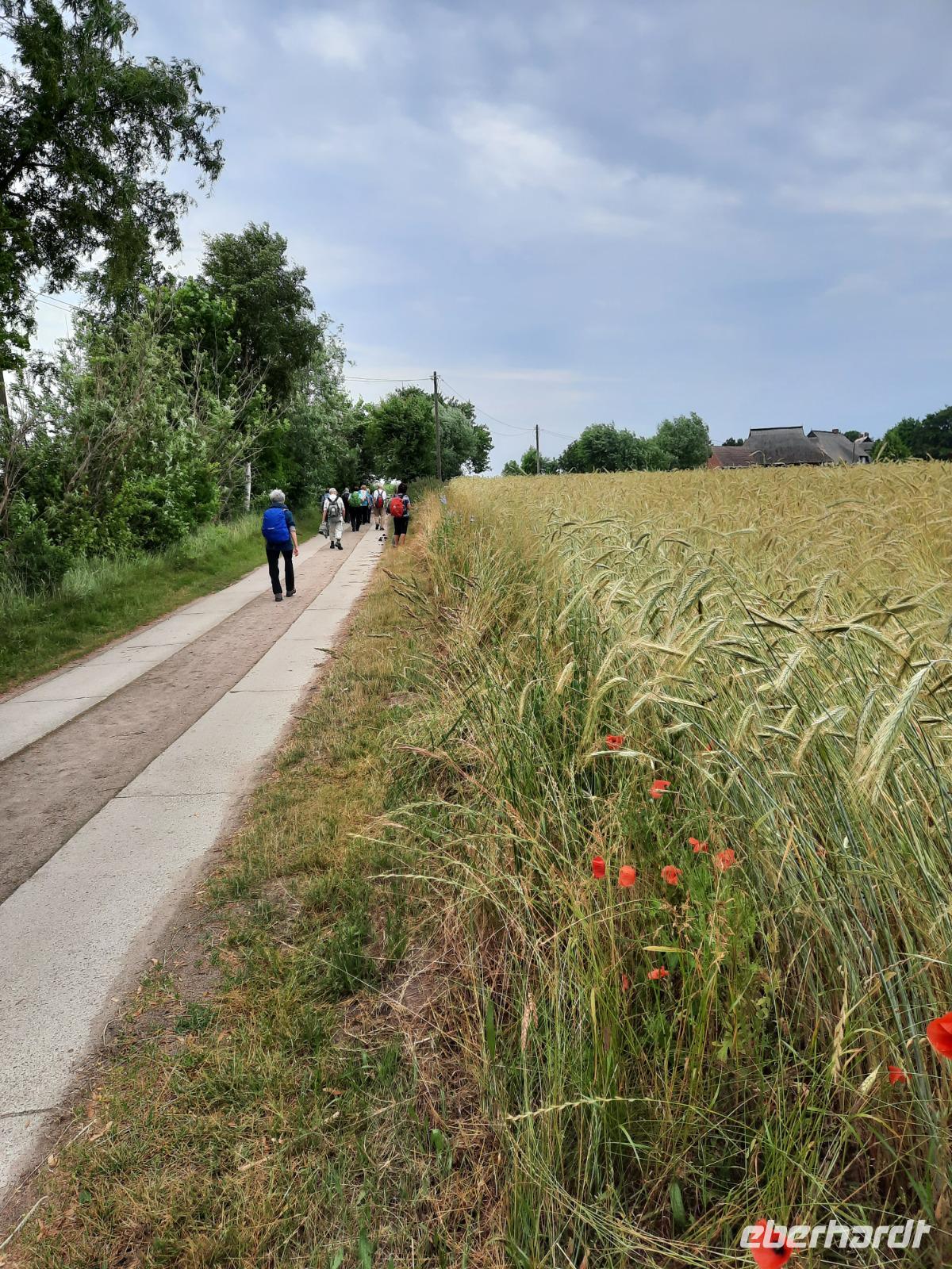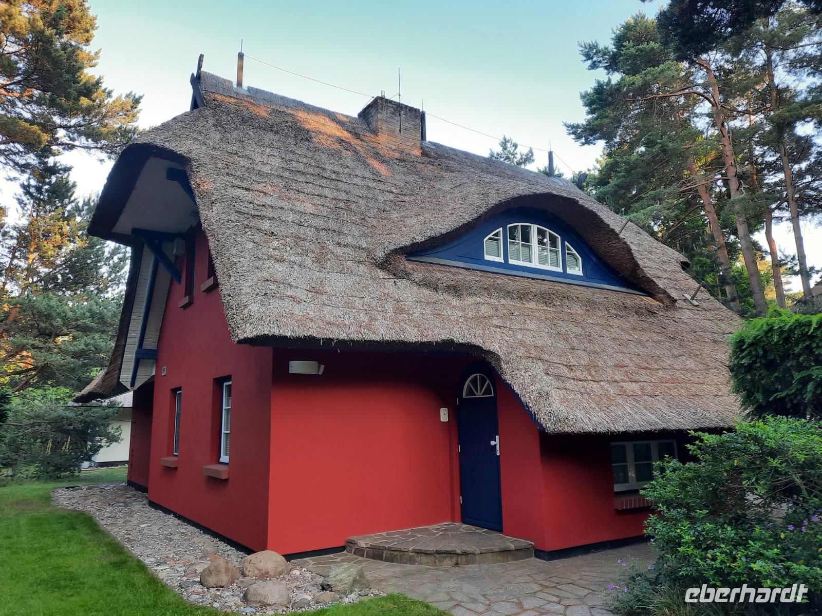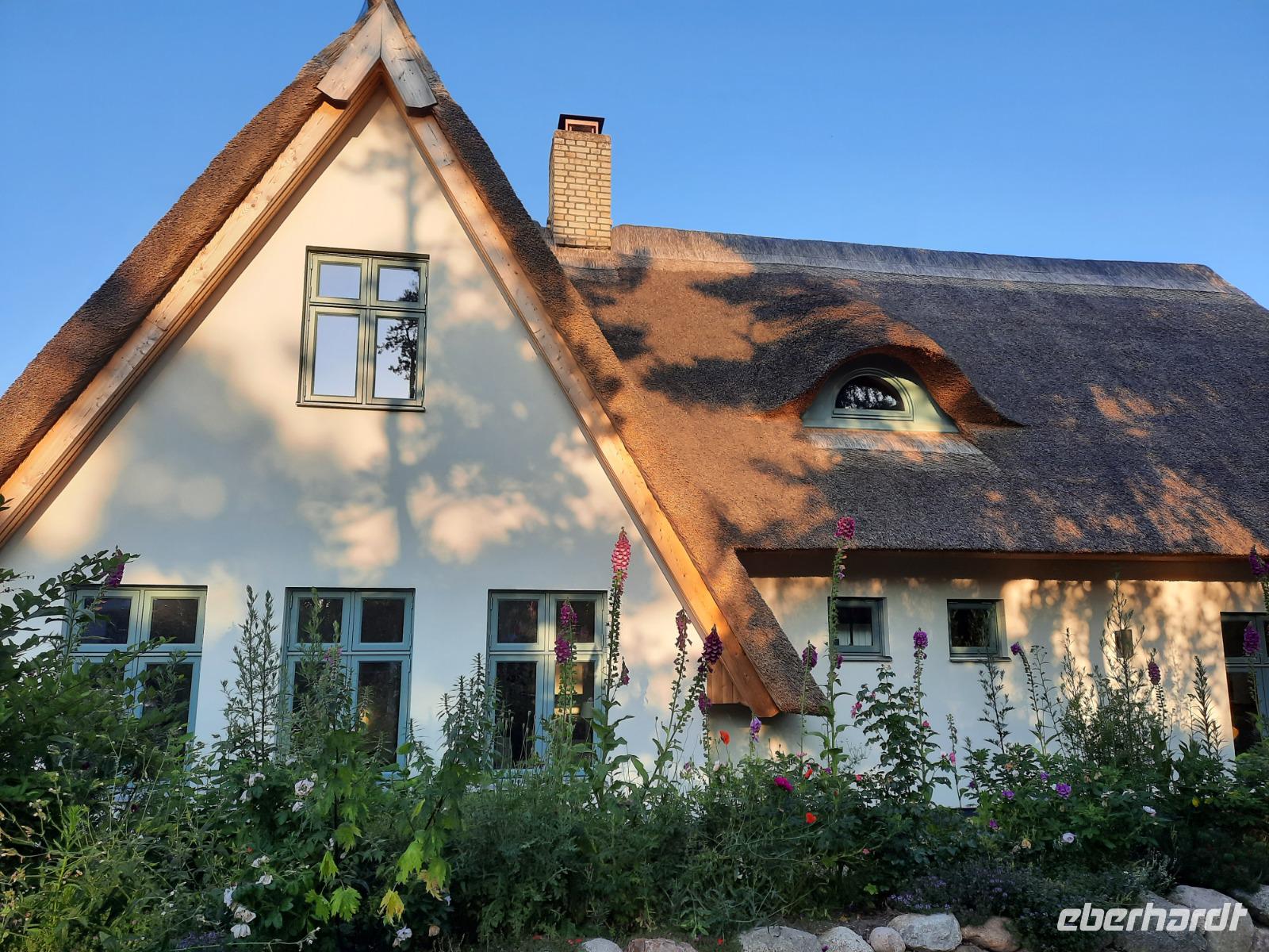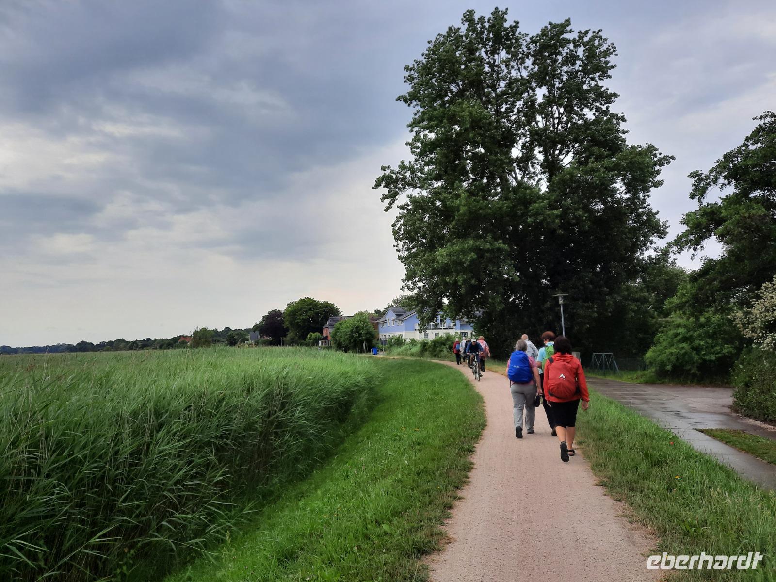 Gut gestärkt vom üppigen Frühstücksbuffet konnten wir auch heute bei angenehmen Temperaturen um die 20 Grad starten. Der Blick zum Himmel versprach zwar am Morgen nichts Gutes, denn es regnete bei unserer Abfahrt in Dierhagen. Nach gerade einmal zehn Minuten Busfahrt waren wir am kleinen Hafen von Wustrow angekommen und ganz plötzlich war kein Niederschlag mehr in Sicht - was für ein Glück! Vom Parkplatz am Hafen wanderten wir zunächst zur Wustrower Seebrücke, die noch Ende des 19. Jahrhunderts lediglich eine 50 Meter lange Holzbrücke war. Diese wurde dann durch Eisgang zerstört und erst 1992/93 wurde die heutige, 240 Meter lange Seebrücke errichtet. Der Tag war noch jung und somit hatten wir die Seebrücke noch ganz für uns allein! Von hier aus wanderten wir weiter der Küste entlang, die stetig höher wurde. Wenig später führte uns dann ein kurzer Abstecher zum Bakelberg, dem sogenannten "Mount Everest" des Fischlands. Immerhin handelt es sich hier um die höchste Erhebung der Halbinsel und für Seeleute war der Berg früher ein wichtiger geographischer Orientierungspunkt, worauf auch der Name "Bake" zurückzuführen ist. Anschließend erreichten wir den Steilabfall Hohes Ufer mit spektakulären Blicken auf Strand und Ostsee. Das Hohe Ufer hat schließlich eine bis zu 18 Meter hohe Kliffranddüne, die aus eiszeitlichen Sanden gebildet ist und die starke Meeresbrandung der Ostsee hat dann zur Herausbildung des Kliffs geführt. Durch den stetigen Abtrag des alten Inselkerns des Fischlands bricht es besonders nach herbstlichen Stürmen immer wieder nach und die Küstenlinie verlagert sich interessanterweise langsam nach Osten. In dem hohen Steilabbruch haben sich sogar Uferschwalben eingenistet und Bruthöhlen gegraben. Später gingen wir dann in das Künstlerdorf Ahrenshoop mit seinen ca. 700 Einwohnern hinein und bogen den historischen Grenzweg (Grenze südlich Mecklenburg/nördlich Vorpommern) ein. Wir gelangten so zur belebten Dorfstraße, wo wir eine wohlverdiente kleine Pause einlegten und die vielen wunderschönen Häuser in regionaltypischer Bauweise mit rohrgedeckten Dächern bewundern konnten. Später kamen wir dann noch an der Schifferkirche vorbei, die erst vor knapp 70 Jahren eingeweiht wurde und den Ortsbezug durch die gewählte Architektur und die verwendeten heimischen Baumaterialien unterstreichen. Sie trägt ihre Verbundenheit zur Seefahrt nicht nur im Namen, sondern ist sogar einem kieloben liegenden Boot nachempfunden. Unsere Wanderung führte uns nun südlich weiter. Wir erreichten so Althagen mit seinem malerischen Hafen. Wie wäre es denn mit Räucherfisch und einer Mini-Bierprobe...? Gesagt, getan... Zuerst stärkten wir uns mit Räucherfisch am Imbiss "Zur Reuse", wo es selbstverständlich auch eine eigene Räucherei gab. Wir saßen in rustikalem Ambiente an langen Eichenbänken und konnten den frischen Fisch aus dem Rauch genießen. Es wird immer gesagt, ein Fisch muss schwimmen... Also sollte es auch etwas zum "Nachspülen" geben und so konnten wir wenig später das Bier der erst im Jahre 2017 eröffneten "Fischland-Brauerei" verkosten, welches es übrigens ausschließlich in Ahrenshoop zu trinken gibt. Zwischenzeitlich setzte leichter Regen ein, der aber ganz schnell wieder vorüber war... So konnte es nach dieser kulinarischen Stärkung gut gelaunt in den Nachmittag gehen. Wir setzten unsere Wanderung fort und auf dem Deichweg gelangten wir an Niehagen vorbei bzw. der Boddenküste entlang bis Wustrow zurück. Als wir den Hafen in Wustrow erreichten, stärkten wir uns nochmals - diesmal allerdings mit Kaffee und Eis oder Törtchen. Heute lagen uns schließlich stolze 16,7 Wander-Kilometer in den Beinen!