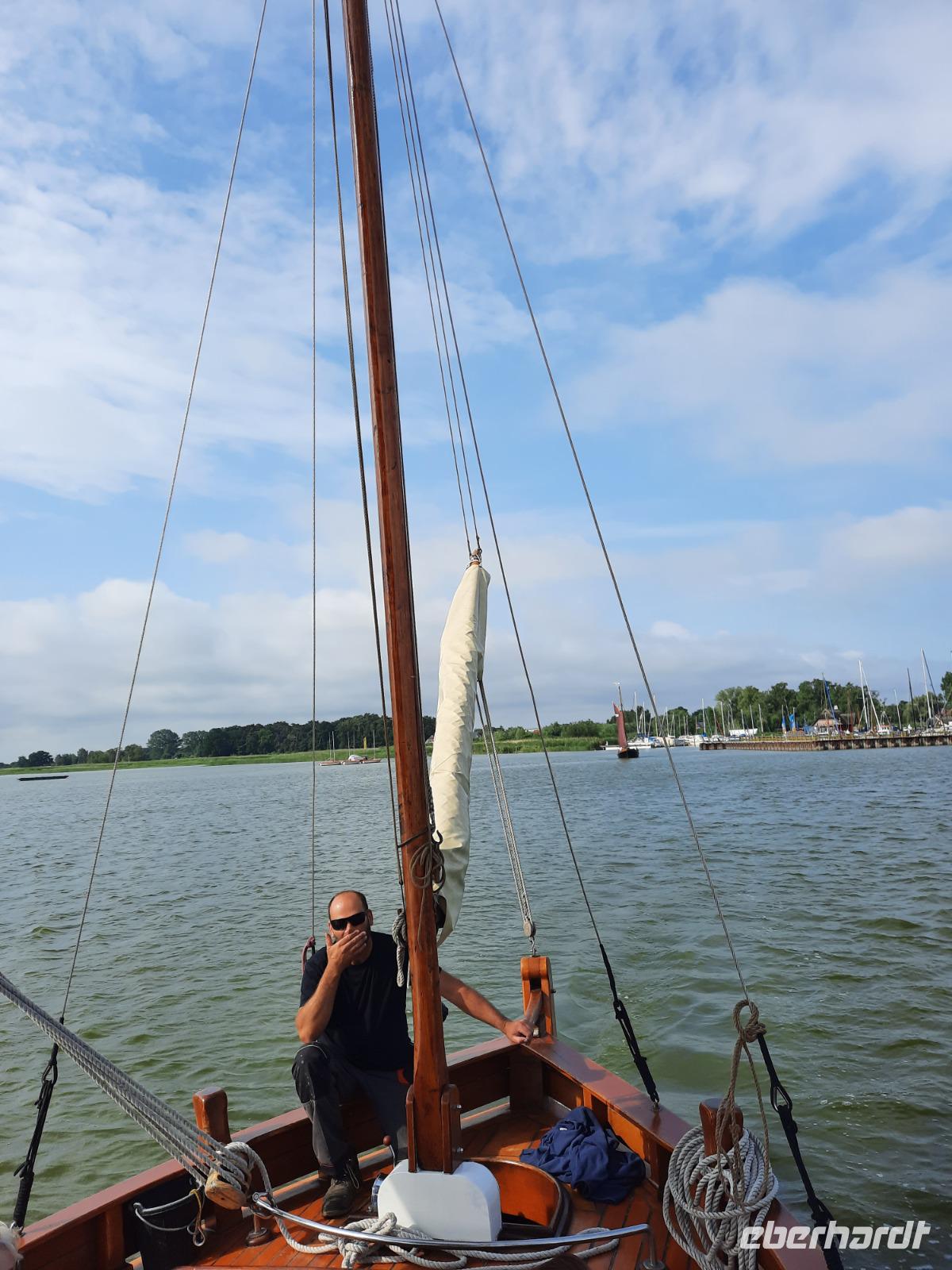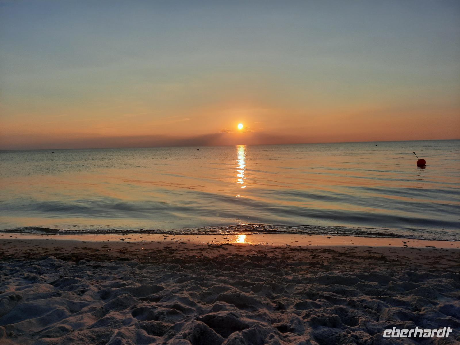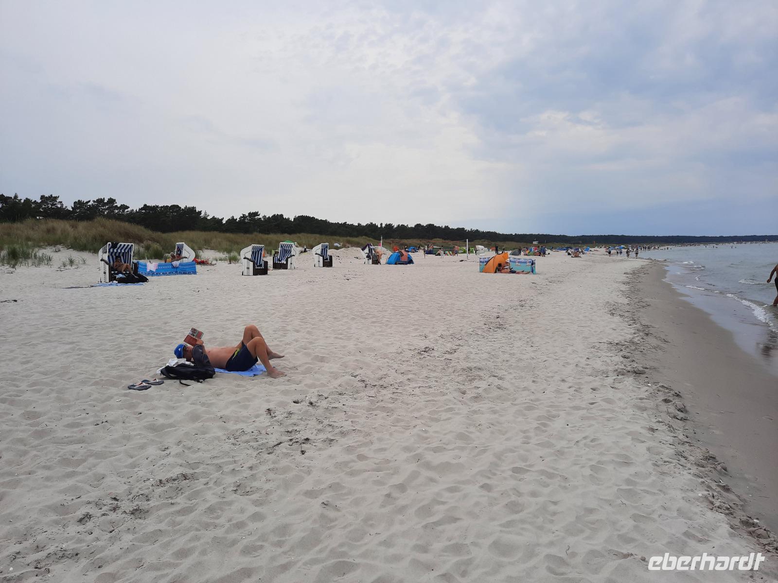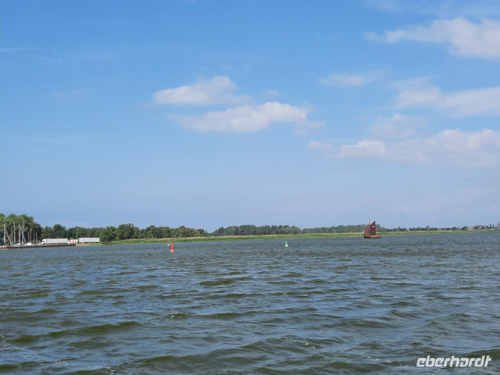 Heute war es nun soweit, denn unsere Zeesbootfahrt konnte stattfinden. Mit unserem Bus erreichten wir nach nur wenigen Fahrminuten den direkt am Saaler Bodden gelegenen Hafen von Dierhagen-Dorf, wo zwei traditionelle Zeesboote mitsamt Kapitänen auf uns warteten. Einigen war etwas mulmig zumute, denn der Wind wehte ziemlich kräftig... Man erklärte uns dann später, dass es auf dem Bodden unmöglich sei, seekrank zu werden und dies nur auf hoher See passieren könnte. Also waren wir beruhigt und konnten diese Segelbootsfahrt in vollen Zügen genießen. Mit Zeesbooten wurden immerhin noch bis in die 1970er Jahre hinein auf den Vorpommerschen Boddengewässern gefischt und das Schlepp- bzw. Treibnetz, die sog. "Zeese", gab dem Boot seinen Namen. Wir ließen uns treiben und schipperten ca. 90 Minuten im Bodden umher. Ein wirklicher Höhepunkt der Reise und auch die Sonne zeigte sich heute wieder ab und an in ihrer vollen Pracht. Nach diesem tollen Erlebnis hatten wir zudem die Möglichkeit zum Besuch des kleinen Dierhäger Hafenmarktes, wo man sämtliche regionale Spezialitäten angeboten bekommt. Anschließend fuhren wir voller Vorfreude auf unsere letzte Wanderung in das nur wenige Kilometer entfernte Wieck a. Darß. Der Ortsname leitet sich übrigens von einem niederdeutschen Wort für Bucht ab und bezieht sich auf die Lage in einer Bucht. Wir starteten unsere heutige Wanderung am Parkplatz Darßer Arche, einem informativen Ausstellungsgebäude über die Entstehung der Landschaft des Nationalparks Vorpommersche Boddenlandschaft. Von hier aus wanderten wir entlang des Boddens nach Born. Dort kamen wir unter anderem auch am Forst- und Jagdmuseum vorbei, welches dem ehemaligen Förster Ferdinand von Raesfeld gewidmet ist, der sich um die Aufforstung des Darßwaldes verdient gemacht hatte. Zudem sahen wir hier eine große Anzahl wunderschöner traditioneller Darß-Häuser mit den typischen, meist bunt bemalten Darßer Haustüren. Sie erinnern an die goldenen Jahre der Segelschifffahrt Mitte des 19. Jahrhunderts und manche Motive nehmen daher auch direkten Bezug auf die Seefahrt. Ganz typisch ist die Mischung sehr alter (oft auch heidnischer) volkstümlicher Motive mit klassizistischen Elementen. Fast alle alten Türen zeigen außerdem Symbole zum Schutz des Hauses vor ungünstigen Einflüssen, wie zum Beispiel Blitzschlag, Feuer oder Zauberei. Neben Tulpensträußen und Blüten sind auch Sonnenmotive sehr beliebt. Einmal als Zeichen für Licht, Leben und Wärme, aber früher wohl auch aufgrund der Rolle beim Navigieren der Schiffe. Mittlerweile war die Mittagszeit fast vorbei und so legten wir kurzerhand am Hafen in Born unsere Mittagspause ein. Ein Fischbrötchen, eine Currywurst oder auch ein Eis - die Auswahl war ganz unterschiedlich! Derart gestärkt wanderten wir in den südlichen Teil des Darßer Waldes hinein. Dies war das Jagdrevier der Herrschenden und wir folgten nun dem Ibenhorster Weg. Der Name "Ibenhorst" erinnert übrigens an die Eiben, die einst im Darßer Wald standen. Heute gibt es davon nur noch wenige Exemplare. Eiben wachsen langsam, ihr festes, schön gemasertes Holz war begehrt und fand u. a. als Innenraumvertäfelung in den dänischen Schlössern Amalienborg und Rosenborg Verwendung, wo man es noch heute bewundern kann. Zu guter Letzt unternahmen wir noch einen kleinen Abstecher zum wilden Weststrand. Es sind hier wirklich nur ein paar Schritte von mitten im Wald bis an den Strand...! Am benachbarten Parkplatz "Drei Eichen" stand dann schließlich nach 14,7 Wander-Kilometern unser Buschauffeur Jörg mit dem Bus bereit und brachte uns zum Hotel zurück. Nun hatten wir noch die Gelegenheit zu einem Bad in der Ostsee, bei einer Wassertemperatur von 20 Grad durchaus zumutbar. Bereits vor dem letzten gemeinsamen Abendessen mit leckeren Spezialitäten vom Buffet trafen wir uns nochmals zu einer kleinen herzlichen Abschiedsrunde im Hotelgarten. Wie schnell doch die Tage vorüber waren... Fazit: ES WAR EINE TOLLE ZEIT!!!