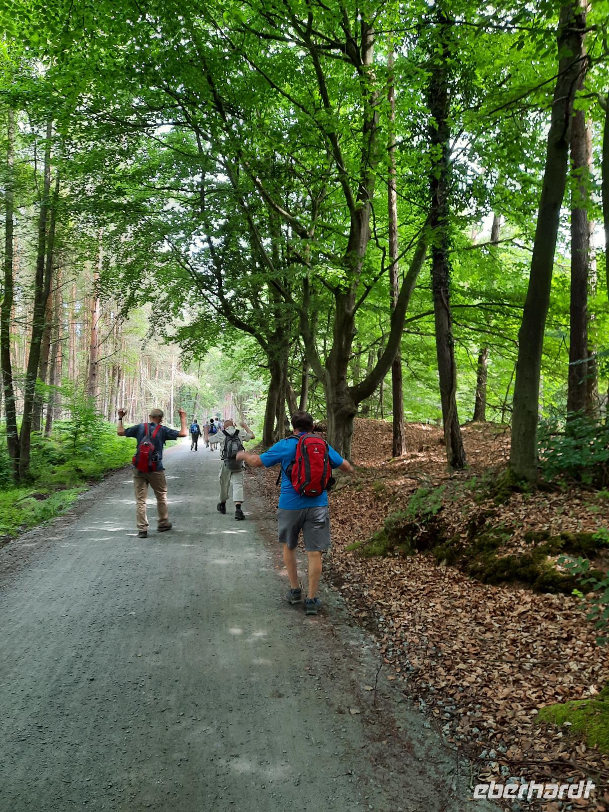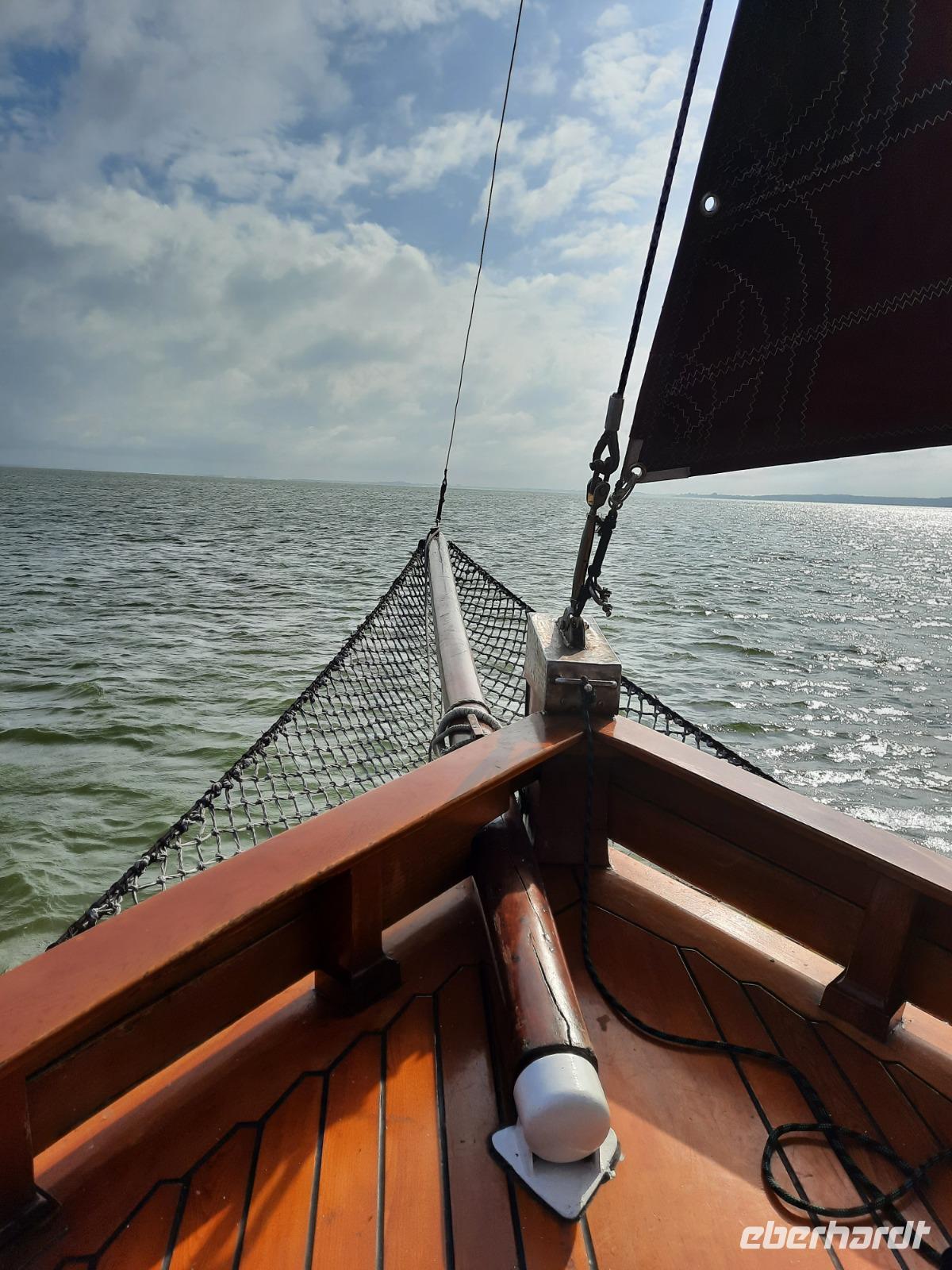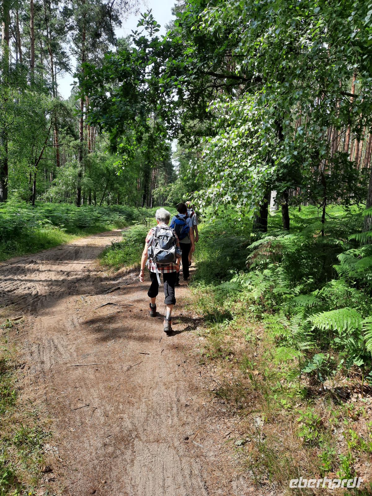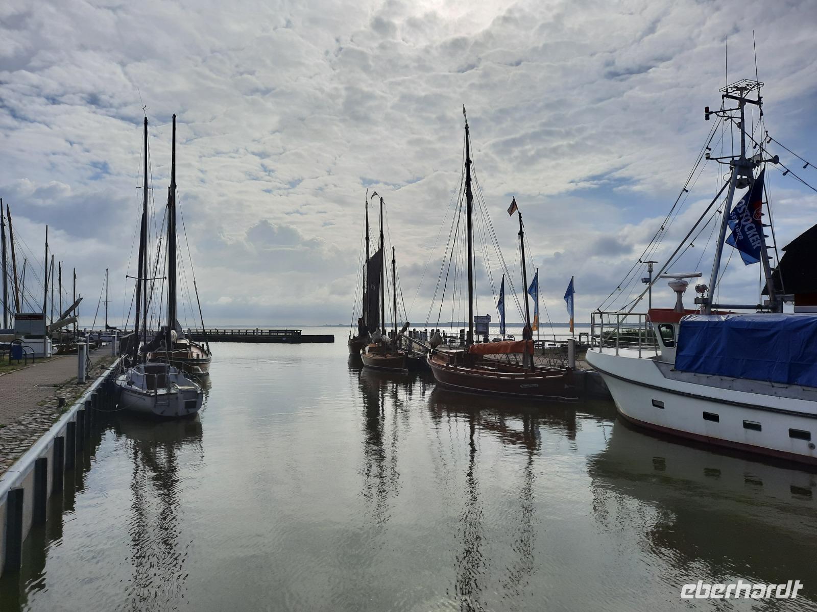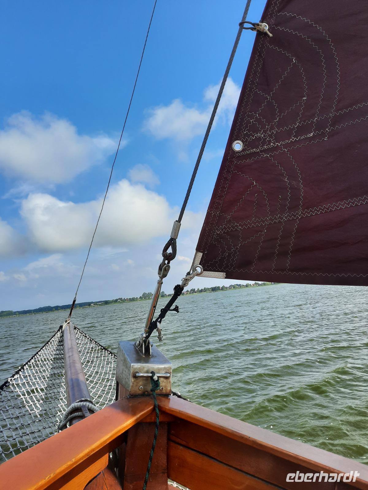 Heute war es nun soweit, denn unsere Zeesbootfahrt konnte stattfinden. Mit unserem Bus erreichten wir nach nur wenigen Fahrminuten den direkt am Saaler Bodden gelegenen Hafen von Dierhagen-Dorf, wo zwei traditionelle Zeesboote mitsamt Kapitänen auf uns warteten. Einigen war etwas mulmig zumute, denn der Wind wehte ziemlich kräftig... Man erklärte uns dann später, dass es auf dem Bodden unmöglich sei, seekrank zu werden und dies nur auf hoher See passieren könnte. Also waren wir beruhigt und konnten diese Segelbootsfahrt in vollen Zügen genießen. Mit Zeesbooten wurden immerhin noch bis in die 1970er Jahre hinein auf den Vorpommerschen Boddengewässern gefischt und das Schlepp- bzw. Treibnetz, die sog. "Zeese", gab dem Boot seinen Namen. Wir ließen uns treiben und schipperten ca. 90 Minuten im Bodden umher. Ein wirklicher Höhepunkt der Reise und auch die Sonne zeigte sich heute wieder ab und an in ihrer vollen Pracht. Nach diesem tollen Erlebnis hatten wir zudem die Möglichkeit zum Besuch des kleinen Dierhäger Hafenmarktes, wo man sämtliche regionale Spezialitäten angeboten bekommt. Anschließend fuhren wir voller Vorfreude auf unsere letzte Wanderung in das nur wenige Kilometer entfernte Wieck a. Darß. Der Ortsname leitet sich übrigens von einem niederdeutschen Wort für Bucht ab und bezieht sich auf die Lage in einer Bucht. Wir starteten unsere heutige Wanderung am Parkplatz Darßer Arche, einem informativen Ausstellungsgebäude über die Entstehung der Landschaft des Nationalparks Vorpommersche Boddenlandschaft. Von hier aus wanderten wir entlang des Boddens nach Born. Dort kamen wir unter anderem auch am Forst- und Jagdmuseum vorbei, welches dem ehemaligen Förster Ferdinand von Raesfeld gewidmet ist, der sich um die Aufforstung des Darßwaldes verdient gemacht hatte. Zudem sahen wir hier eine große Anzahl wunderschöner traditioneller Darß-Häuser mit den typischen, meist bunt bemalten Darßer Haustüren. Sie erinnern an die goldenen Jahre der Segelschifffahrt Mitte des 19. Jahrhunderts und manche Motive nehmen daher auch direkten Bezug auf die Seefahrt. Ganz typisch ist die Mischung sehr alter (oft auch heidnischer) volkstümlicher Motive mit klassizistischen Elementen. Fast alle alten Türen zeigen außerdem Symbole zum Schutz des Hauses vor ungünstigen Einflüssen, wie zum Beispiel Blitzschlag, Feuer oder Zauberei. Neben Tulpensträußen und Blüten sind auch Sonnenmotive sehr beliebt. Einmal als Zeichen für Licht, Leben und Wärme, aber früher wohl auch aufgrund der Rolle beim Navigieren der Schiffe. Mittlerweile war die Mittagszeit fast vorbei und so legten wir kurzerhand am Hafen in Born unsere Mittagspause ein. Ein Fischbrötchen, eine Currywurst oder auch ein Eis - die Auswahl war ganz unterschiedlich! Derart gestärkt wanderten wir in den südlichen Teil des Darßer Waldes hinein. Dies war das Jagdrevier der Herrschenden und wir folgten nun dem Ibenhorster Weg. Der Name "Ibenhorst" erinnert übrigens an die Eiben, die einst im Darßer Wald standen. Heute gibt es davon nur noch wenige Exemplare. Eiben wachsen langsam, ihr festes, schön gemasertes Holz war begehrt und fand u. a. als Innenraumvertäfelung in den dänischen Schlössern Amalienborg und Rosenborg Verwendung, wo man es noch heute bewundern kann. Zu guter Letzt unternahmen wir noch einen kleinen Abstecher zum wilden Weststrand. Es sind hier wirklich nur ein paar Schritte von mitten im Wald bis an den Strand...! Am benachbarten Parkplatz "Drei Eichen" stand dann schließlich nach 14,7 Wander-Kilometern unser Buschauffeur Jörg mit dem Bus bereit und brachte uns zum Hotel zurück. Nun hatten wir noch die Gelegenheit zu einem Bad in der Ostsee, bei einer Wassertemperatur von 20 Grad durchaus zumutbar. Bereits vor dem letzten gemeinsamen Abendessen mit leckeren Spezialitäten vom Buffet trafen wir uns nochmals zu einer kleinen herzlichen Abschiedsrunde im Hotelgarten. Wie schnell doch die Tage vorüber waren... Fazit: ES WAR EINE TOLLE ZEIT!!!