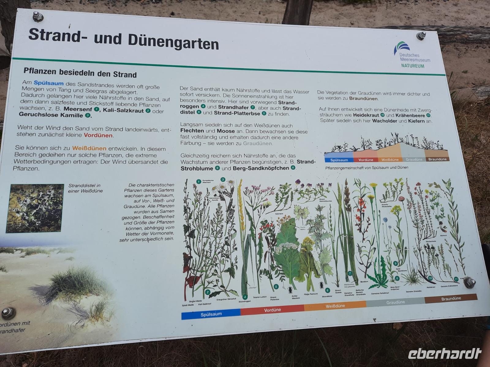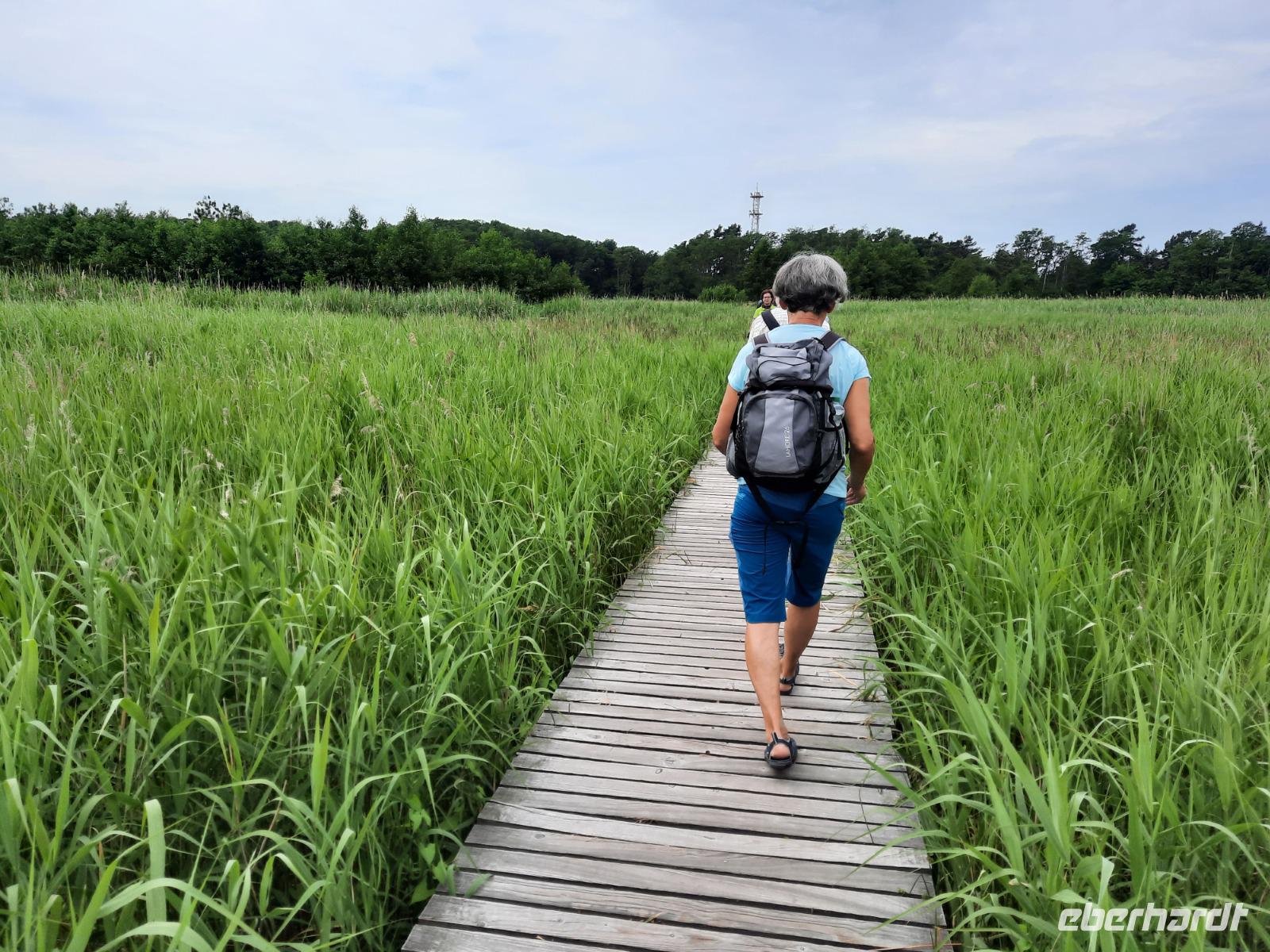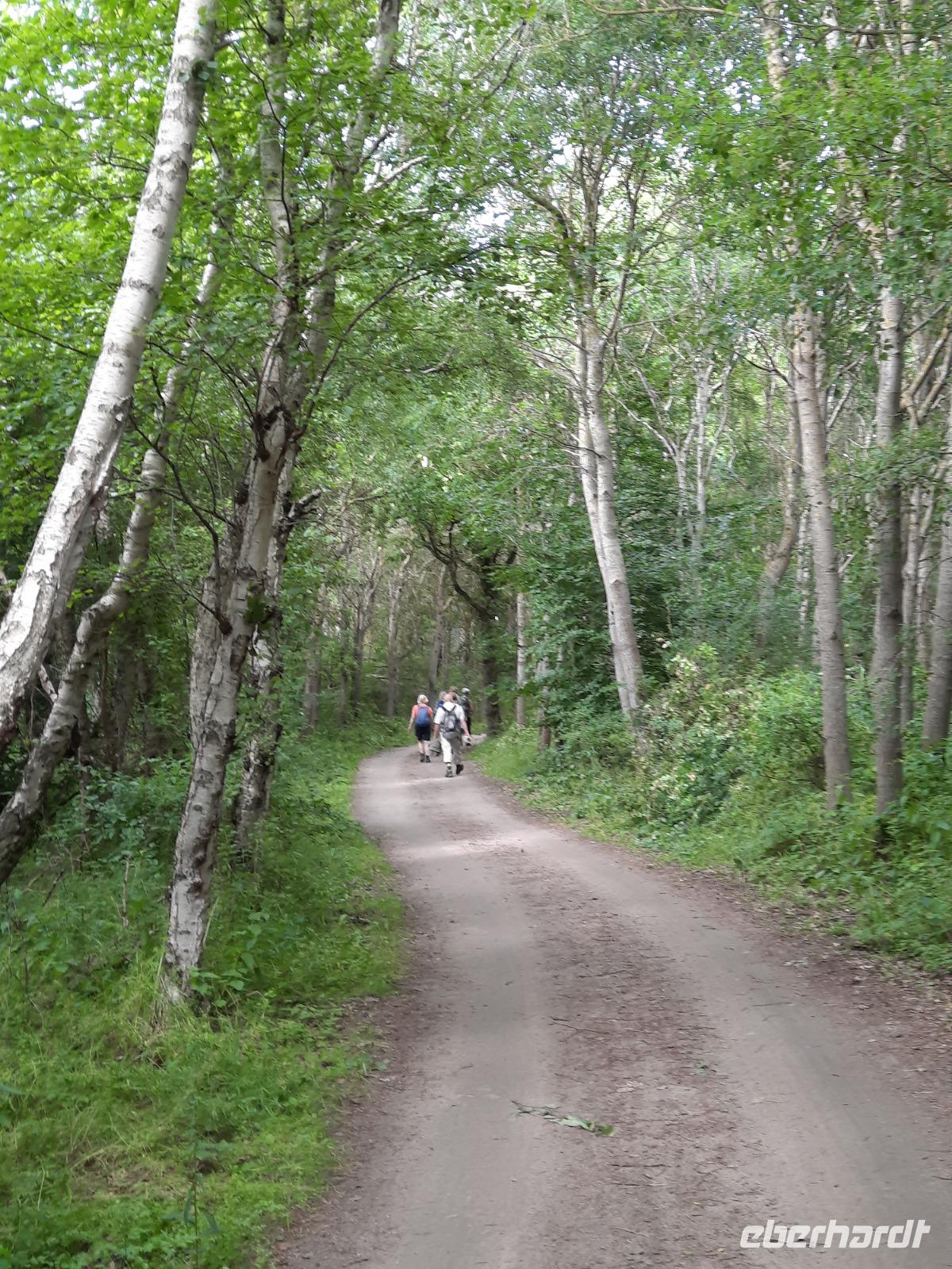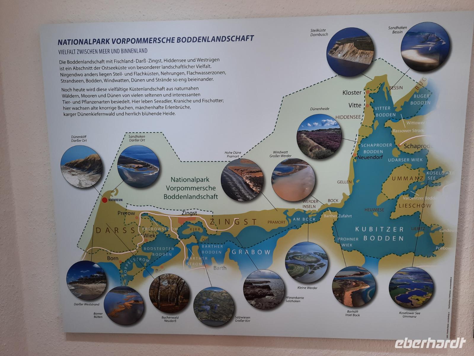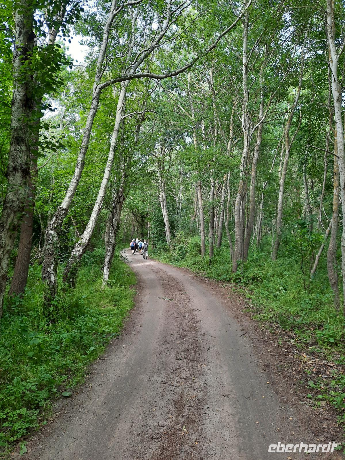 Unsere erste gemeinsame Wanderung führte uns bereits heute an einen der schönsten Plätze auf dem Darß. Zunächst gelangten wir mit unserem Reisebus nordwärts nach Prerow, dem Ausgangspunkt der heutigen Wandertour. Endlich konnte es losgehen...! Durch den dicht mit Bäumen bewachsenen "Darßer Urwald" gelangten wir immer weiter westwärts entlang des Leuchtturmweges, welcher die Halbinsel Fischland-Darß im Westen zur Ostsee hin begrenzt. Er wird seit jeher als renommiertes Jagdgebiet genutzt und hier hielten sich schließlich auch die pommerschen Herzöge, im 19. Jahrhundert sogar der schwedische König bzw. später auch andere politische Größen auf. Dieses wildromantische Gebiet kann man übrigens nur zu Fuß, per Fahrrad oder Pferdekutsche entdecken, denn es gehört zum "Nationalpark Vorpommersche Boddenlandschaft" und ist damit ein Naturschutzgebiet. Sämtliche motorisierte Fahrzeuge sind somit verboten. Wir gelangten immer tiefer in den alten Kiefernwald hinein und teilweise zeigten umgestürzte Bäume ihre mächtigen Wurzeln. Nach reichlich 5 Kilometern erreichten wir unser erstes Etappenziel, den "Darßer Ort" mit seinem Leuchtturm. Hier waren wir nun auf der nördlichsten Landzunge der Halbinsel angekommen. Einige von uns erklommen sogar den mehr als 170 Jahre alten und 35 Meter hohen Leuchtturm und wurden mit einer grandiosen Aussicht über den nördlichen Teil des Darßes belohnt. Direkt neben dem Leuchtturm befindet sich das im Jahre 1991 eröffnete "NATUREUM", eine Außenstelle des Meeresmuseums Stralsund. Glücklicherweise konnten wir zügig hinein, denn der Besucheransturm hielt sich an diesem Wochentag in Grenzen. Wir bekamen in verschiedenen interessanten Ausstellungen und drei Schauaquarien die außergewöhnliche Vielfalt und Schutzbedürftigkeit der Natur vermittelt. Immerhin befanden wir uns hier in einer vom Menschen nur wenig beeinflussten Küstenlandschaft und es wurden unter anderem sehr anschaulich die Flora und Fauna auf dem Darß, die Küstendynamik der Ostsee bzw. beliebte Strandfunde thematisiert. Auch das Außengelände mit seinen Schautafeln über die Beschaffenheit der Landschaft war durchaus sehenswert. Jetzt trennten uns nur noch wenige Meter vom wunderschönen weißen Weststrand, wo oftmals eine steife Brise aus Nordwest weht, was eine kräftige Brandung mit sich bringt. Wir hatten übrigens das perfekte Wanderwetter mit etwas Sonne und ein paar Wolken und so wanderten wir nach einer Mittagspause weiter entlang des Weststrandes in Richtung Norden. Später nahmen wir den Weg durch die Düne, hinter der wir kurzerhand auf einen toll angelegten Holzbohlenpfad gelangten. Wir folgten diesem "Rundwanderweg Darßer Ort", der uns von nun an immer weiter durch die imposante Dünenlandschaft leitete. Je mehr wir Richtung Norden gelangten, umso weniger Bäume gab es. Irgendwie befanden wir uns jetzt in einer Art Steppenlandschaft, die von kleinen Binnenseen durchzogen wurde, auf denen wir Schwäne und andere sich tummelnde Wasservögel sehen konnten. Gut dran waren übrigens diejenigen, die ein Fernglas dabeihatten, denn in den Dünen oder zwischen den Seen kann man mitunter sogar Rotwild entdecken! Am Wegesrand erwarteten uns immer wieder hölzerne Aussichtsplattformen, die zum Verweilen und Beobachten einluden. Auch die zahlreichen Brackwasserseen waren gut zu erkennen, die immerhin ein wichtiges Rast- und Brutgebiet für Wasservögel bieten. Anschließend folgten wir dem nun von dichten Schilfgürteln eingerahmten Rundwanderweg ostwärts und wenig später dann südwärts. Plötzlich erreichten wir einen kleinen Hafen mit dem Seenotrettungsdienst und folgten nun dem Weg entlang der Hafenausfahrt, wo wir kurzerhand wieder auf den feinsandigen Ostseestrand stießen. Die restlichen etwa 4 Kilometer führten uns entlang des Strandes bis zur Seebrücke in Prerow, wo sich so manch einer mit einem leckeren Eis oder einem Fischbrötchen nach dieser ca. 15,5 Kilometer langen Wanderung belohnte. Ein wiederum schmackhaftes Abendessen im Hotel krönte diesen ersten erfolgreichen Wandertag.