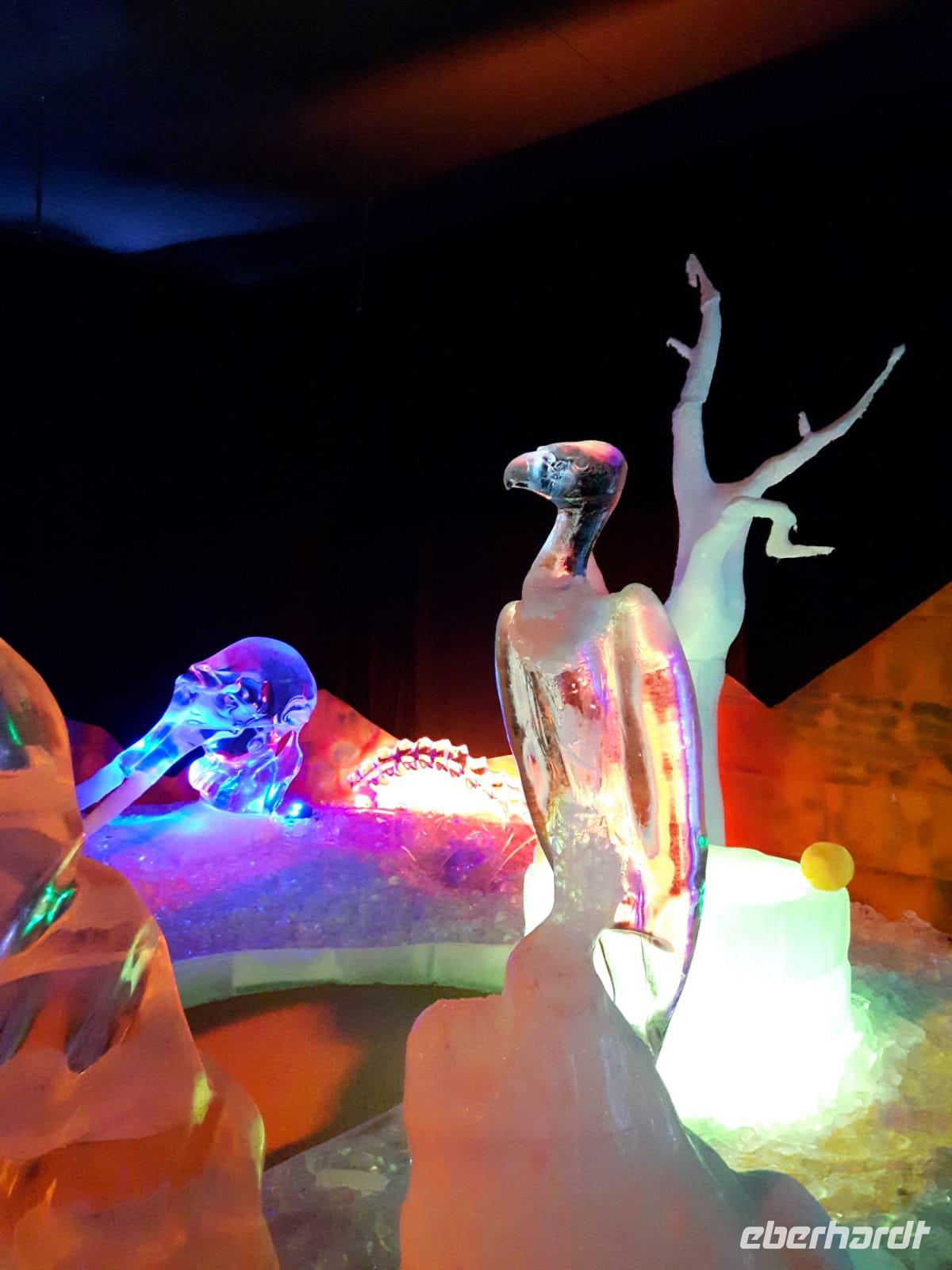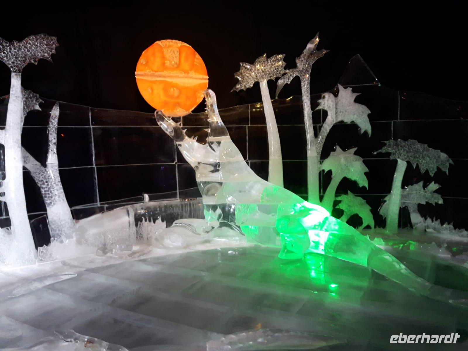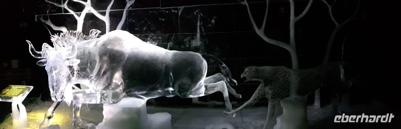 "Eiswelt", die größte Eisfiguren-Ausstellung Europas! Diese steht gegenwärtig unter dem Motto "Afrika - Expedition zum Kilimanjaro" und es erwartete uns eine gefrorene Erlebniswelt aus mehr als 350 Tonnen Eis. Wir begaben uns auf eine Entdeckungsreise mit zahlreichen wilden Tieren Afrikas, wanderten durch die Wuste und lernten das Leben der Menschen in einem typisch afrikanischen Dorf kennen. Wir bestaunten auch die imposante Eisrutsche und ein Eishotel - mit Licht- und Musikeffekten wurde alles bestens zur Schau gestellt, ein wirklich einmaliges Erlebnis! Zwischenzeitlich kam sogar die Sonne hervor und der Regen war vorüber. Damit war eine weitere Idee der Nachmittagsgestaltung geboren... Wir gelangten demnach nach Graal-Müritz und von dort aus wanderte der Großteil der Gruppe gemeinsam mit mir zunächst an der Seepromenade und später nördlich entlang der zahlreichen Moorgebiete bis nach Dierhagen zurück. Nach ca. 2,5 Stunden und etwa 10 Wanderkilometern erreichten wir unser Ziel, das Ostseehotel Dierhagen. Ein gelungener Tag voller Überraschungen und ein großes Dankeschön an unsere Gäste für Eure Flexibilität!