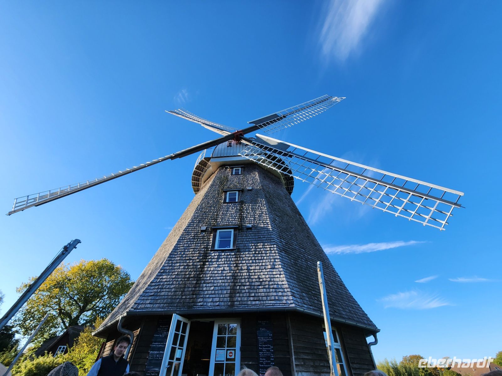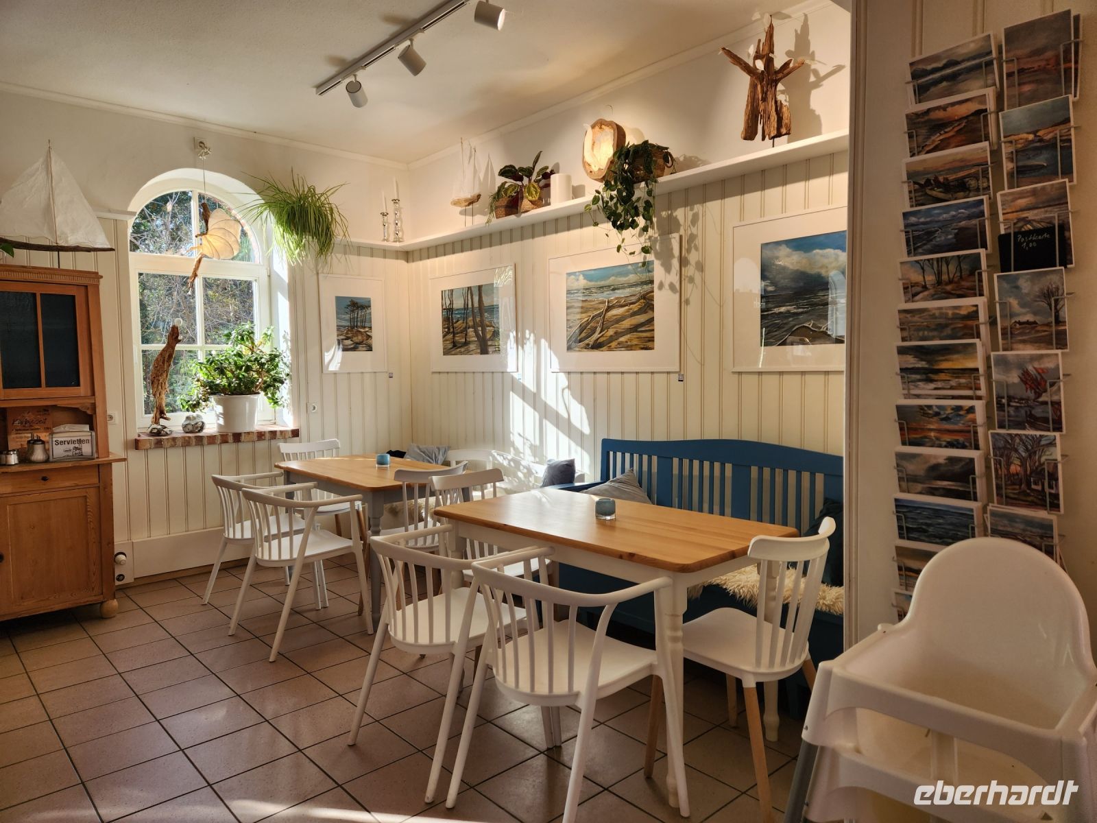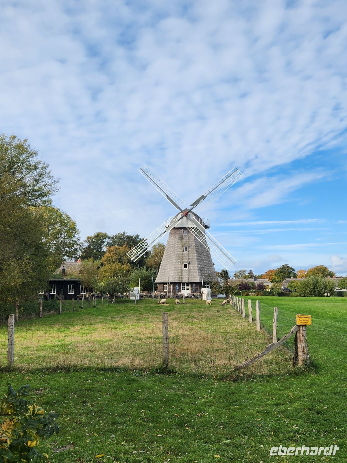 Am Hafen von Born gönnen wir uns wieder ein Fischbrötchen und wandern danach weiter Richtung Ahrenshoop. Langsam werden wir müde, aber unsereTischreservierung an der Ahrenshooper Mühle lässt uns durchhalten. Wir können den leckeren Kuchen derMühledraußen an einem langen Tisch im Garten genießen.