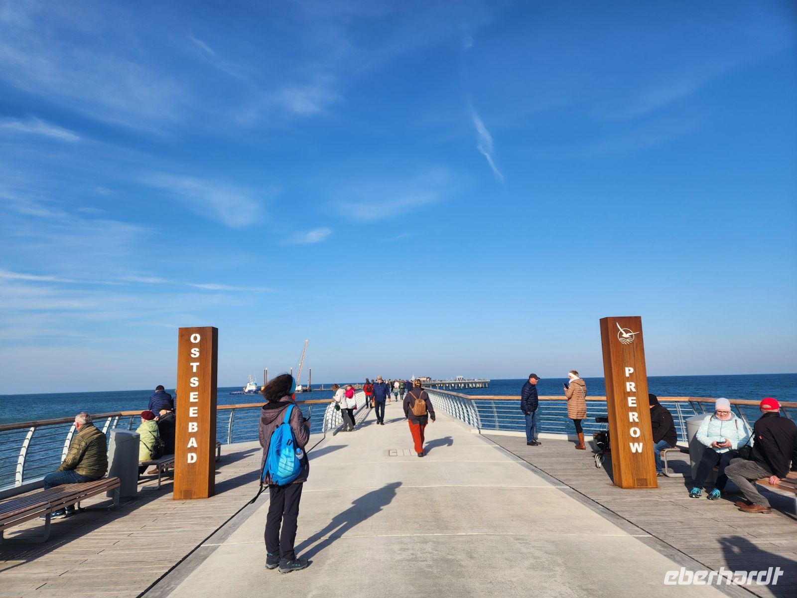 Wir gehören zu den ersten Besuchern, die auf der neuen Prerower Seebrücke entlang spazieren können, ganze 720 m ist sie lang, den Nachmittag zuvor wurde sie feierlich eröffnet.