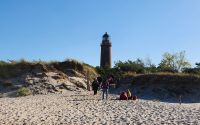 Heute ist der Leuchtturm Darßer Ort unser Ziel. Als wir in Prerow mit dem Bus ankommen, wartet eine Kutsche auf uns, die uns durch den Darßer Wald bis zum Leuchtturm fahren wird. Ein Gläschen Küstennebel darf bei dieser Gelegenheit natürlich nicht fehlen. Wir besuchen das Natureum, es gibt hier eine liebevoll zusammengestellte Ausstellung zur Darßer Natur und natürlich besteigen wir auch den Leuchtturm, 126 Stufen bringen uns zu einer wirklich fantastischen Aussicht.