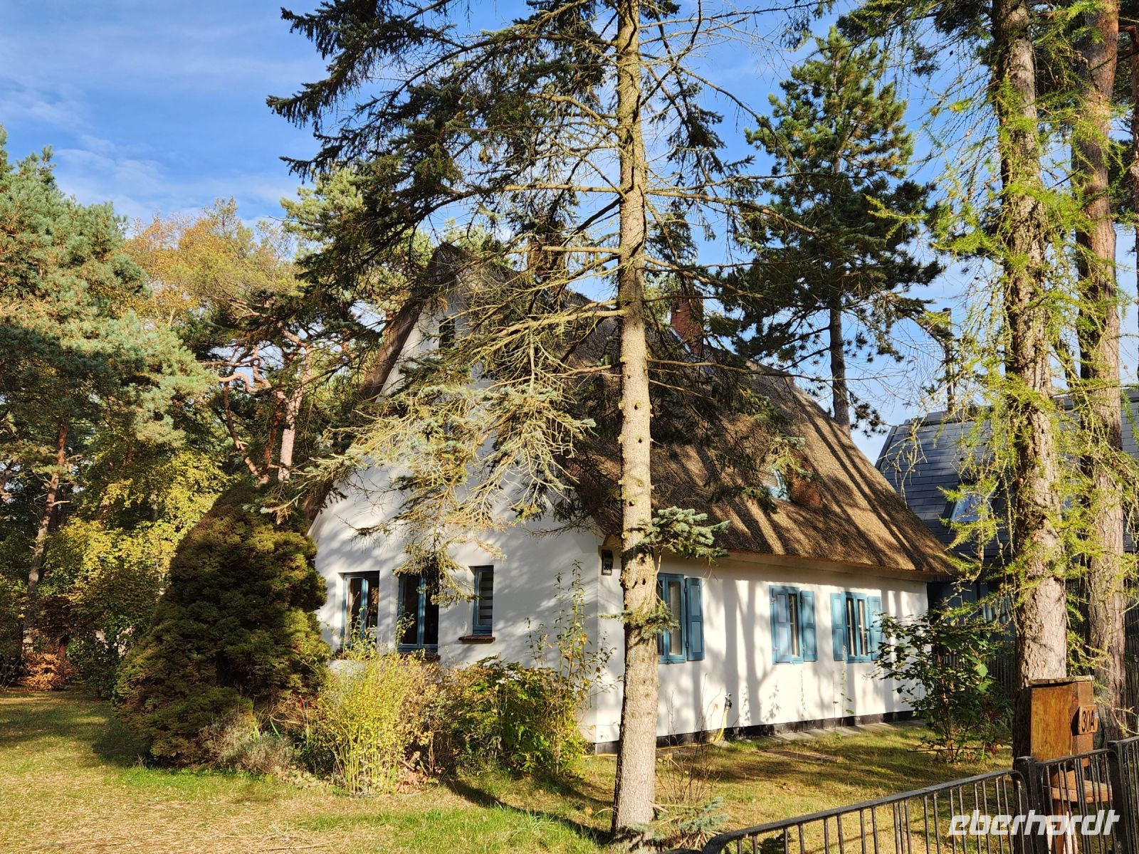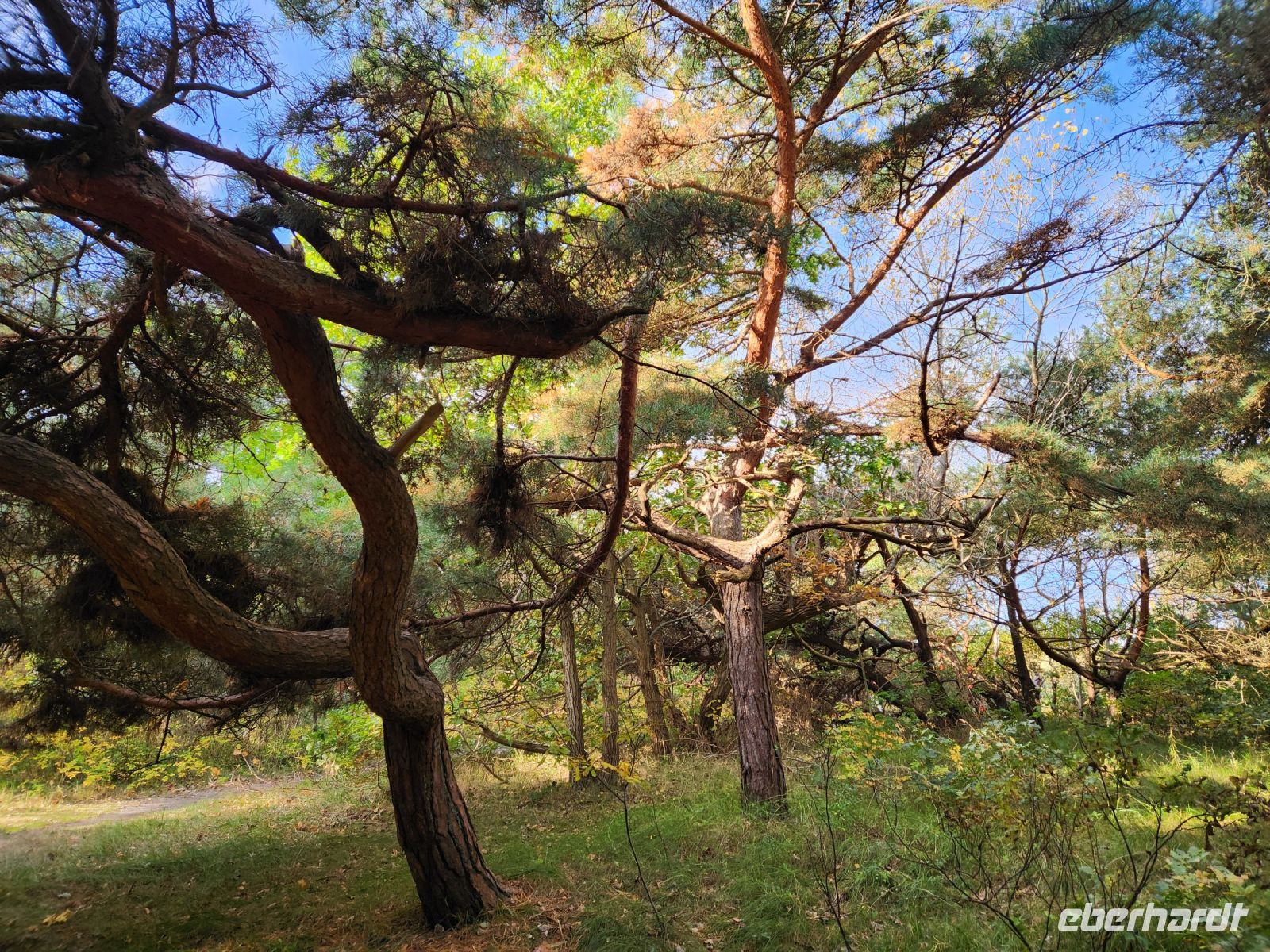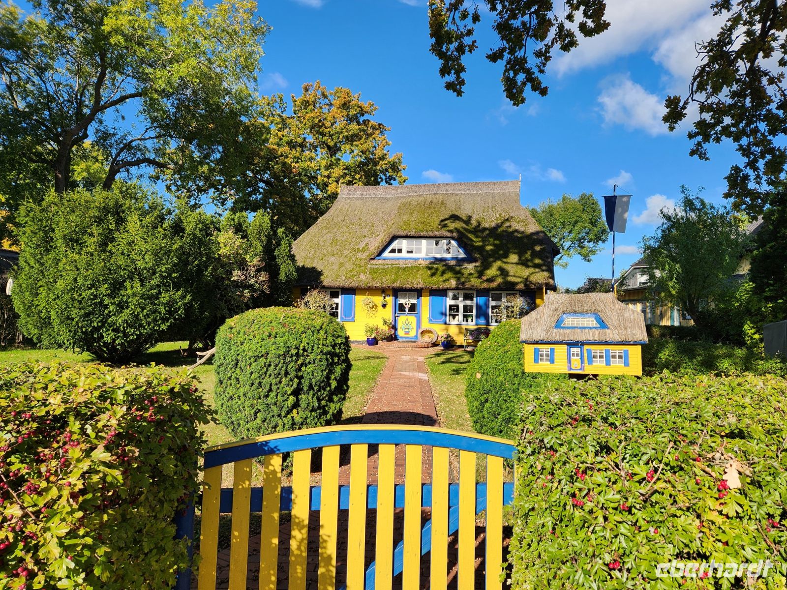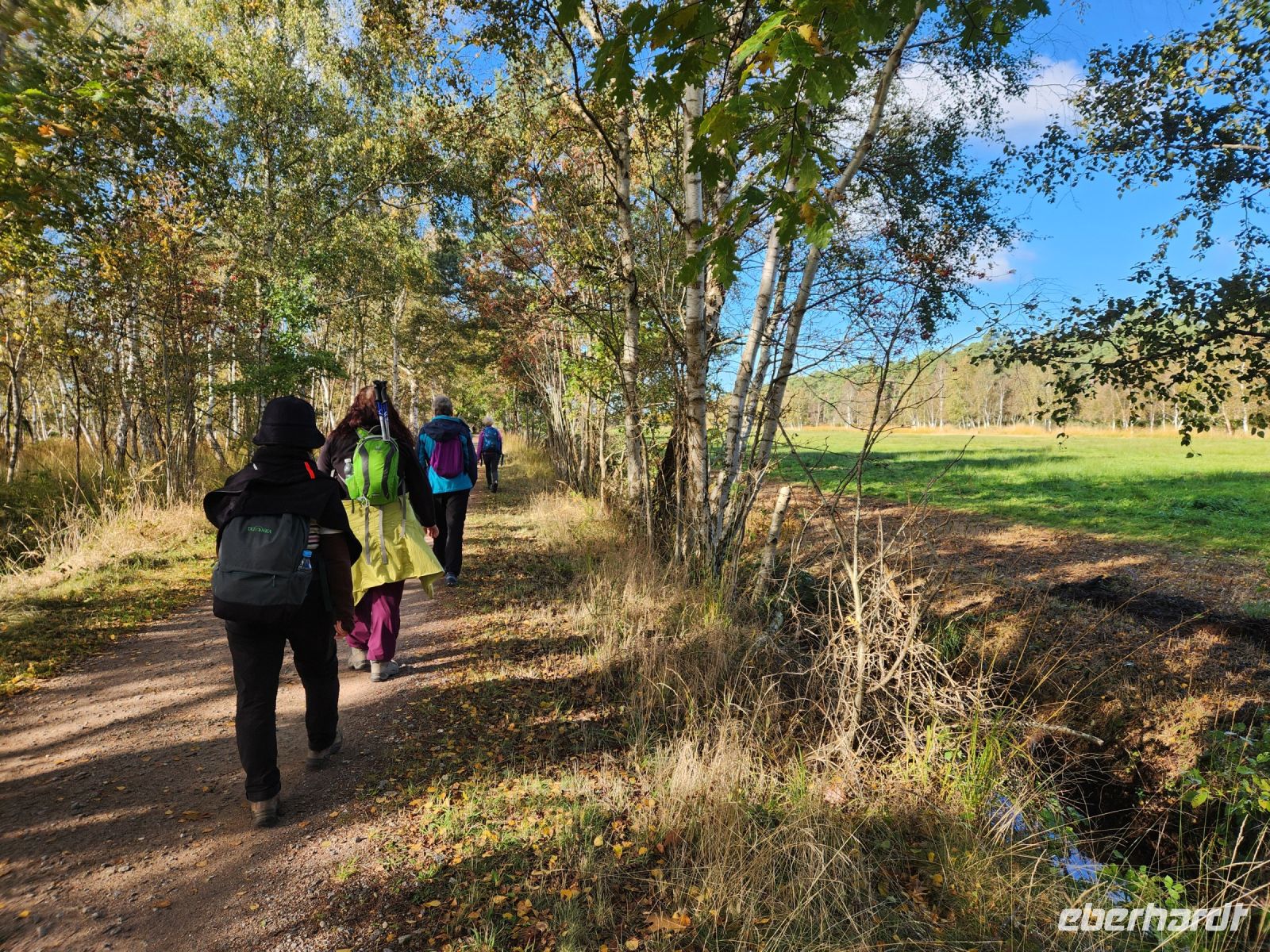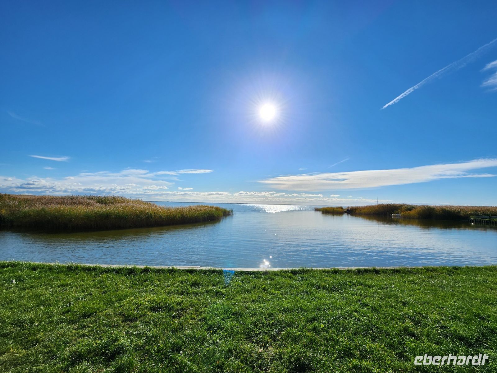 Schon am Morgen begrüßt uns ein blauer Himmel, alle sind sehr gut gelaunt und freuen sich auf die zweite Wanderung. Heute bleiben wir den ganzen Tag auf der Boddenseite. Wir starten im ruhigen Wiek am Darß, nachdem wir die Ortsmitte verlassen haben, wartet nur noch idyllische Boddenlandschaft auf uns. Wir durchqueren auch ein kleines Waldstück und laufen dann lange Zeit am Schilfgürtel entlang, bis wir den Ortsrand von Born am Darß erreichen. Wir bleiben oft vor den hübschen, alten Häusern stehen, machen immer wieder Erinnerungsfotos und staunen über die hübschen Motive auf den handgeschnitzten Darßer Türen.