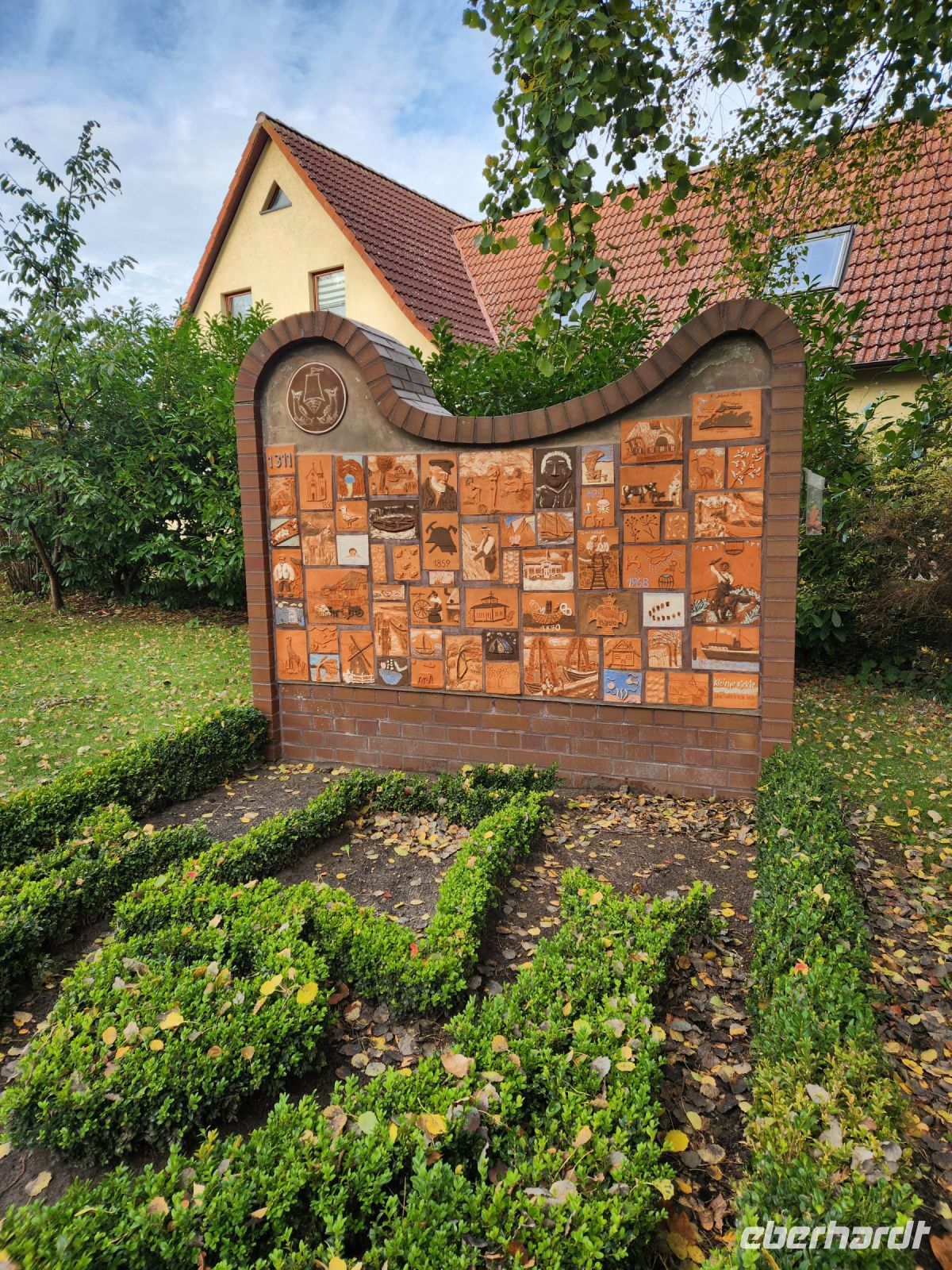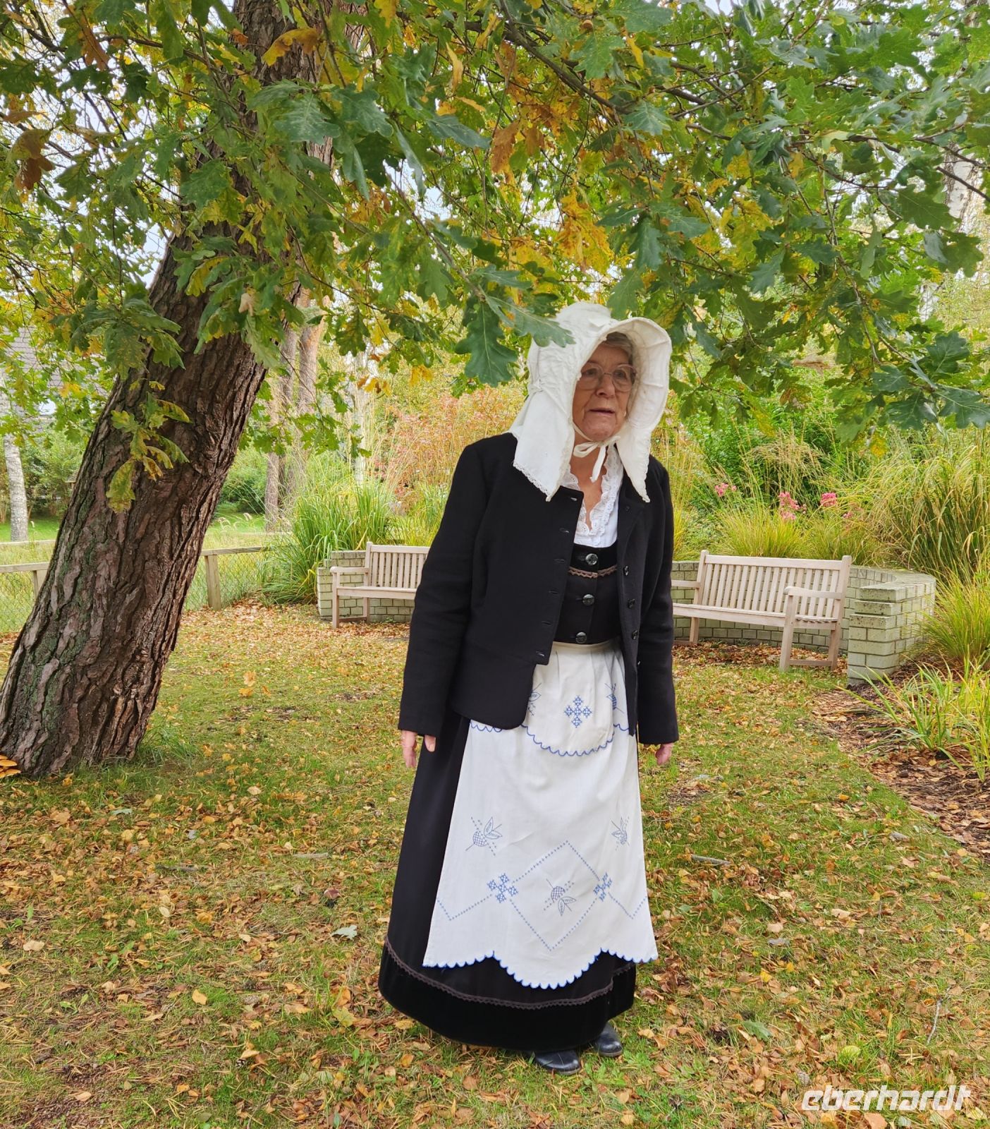 Ein Teil der Gruppe nimmt am Vormittag an einer historischen Ortsführung durch Dierhagen mit Margarete teil. Die Dame erscheint in Tracht und gespannt hören wir ihr zu, sie hat viel Interessantes über Dierhagen und seinen Einwohnern zu erzählen.