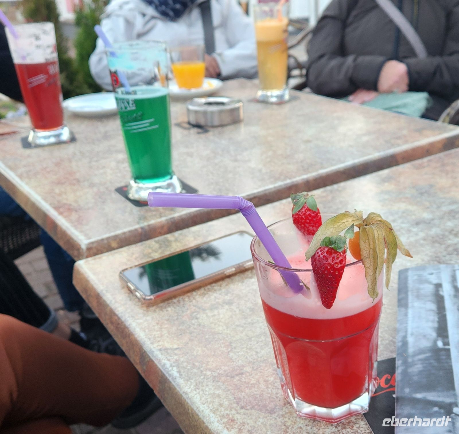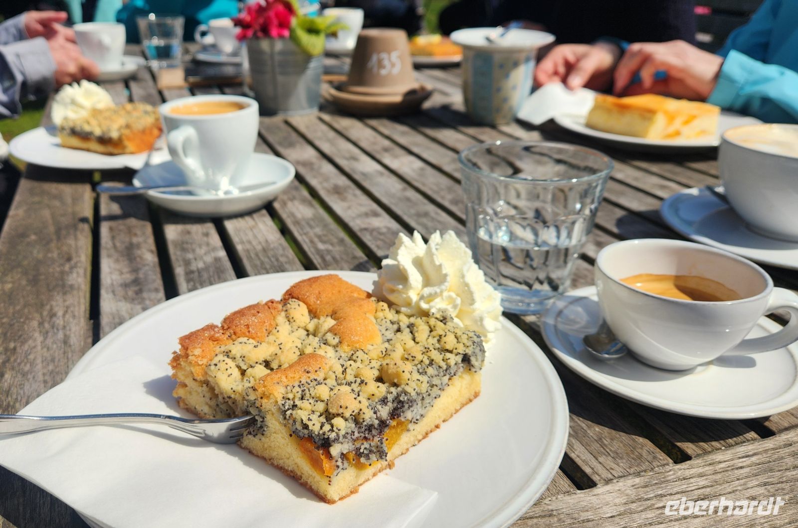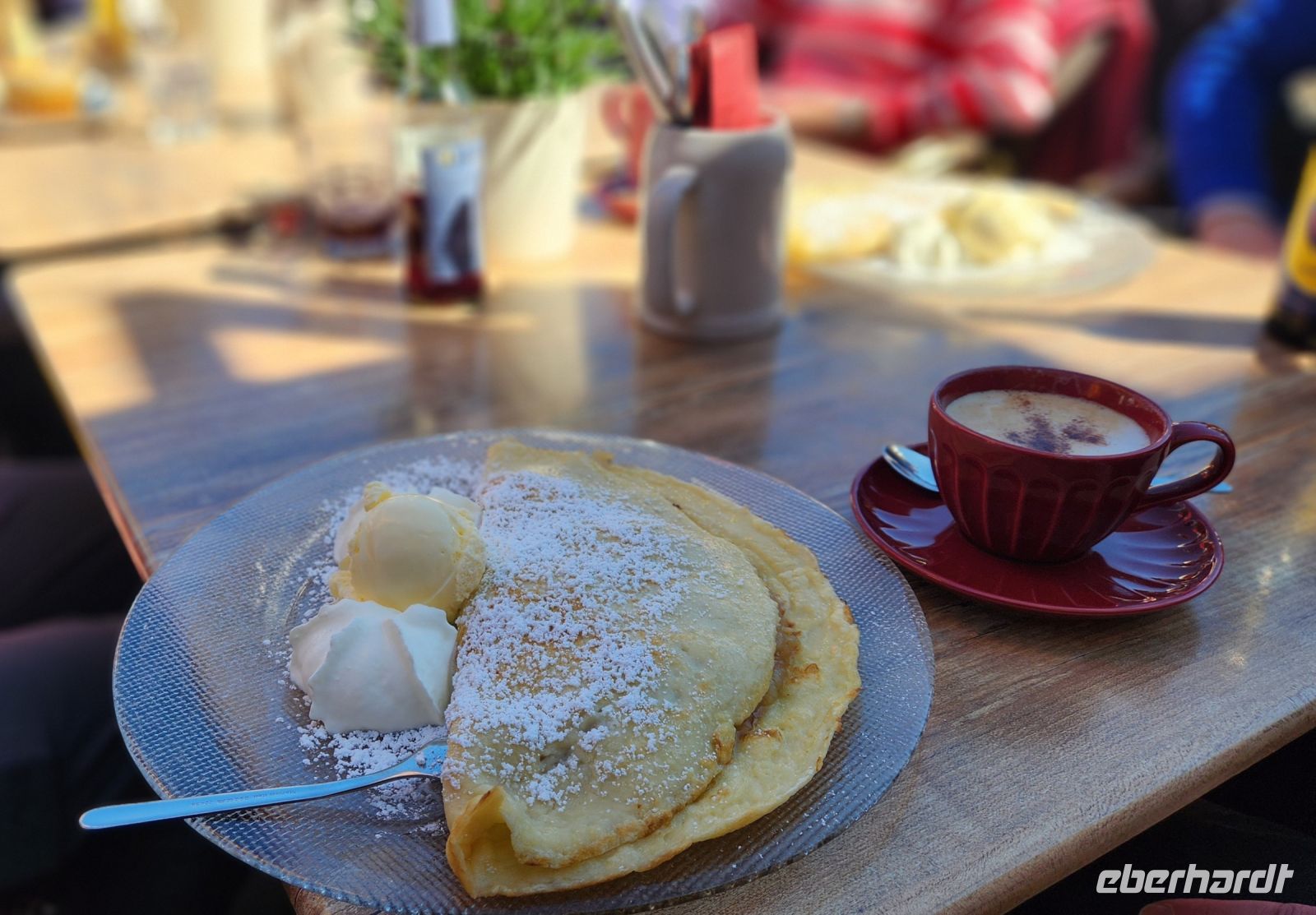 Den Nachmittag haben wir frei, viele zieht es an den Strand, denn wie jeden Tag lacht die liebe Sonne. Und auch heute hat gottseidank das Cafe Schreiber geöffnet und bietet wieder ausgesprochen leckeren, selbstgebackenen Kuchen an, so lässt sich's leben :)