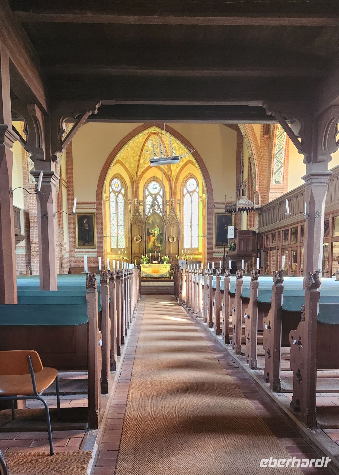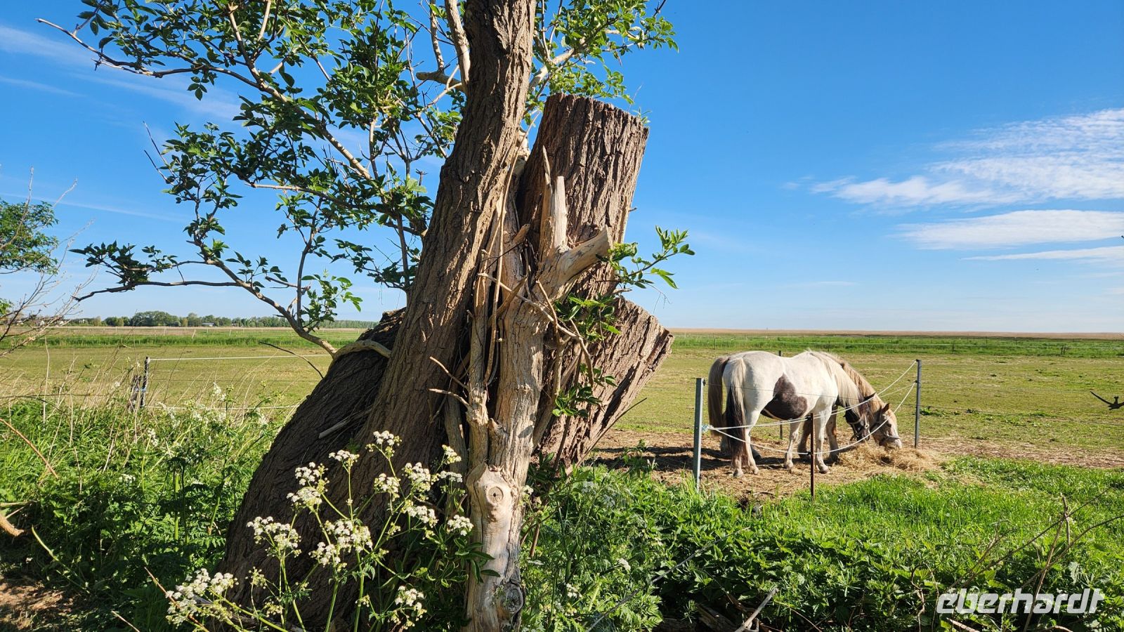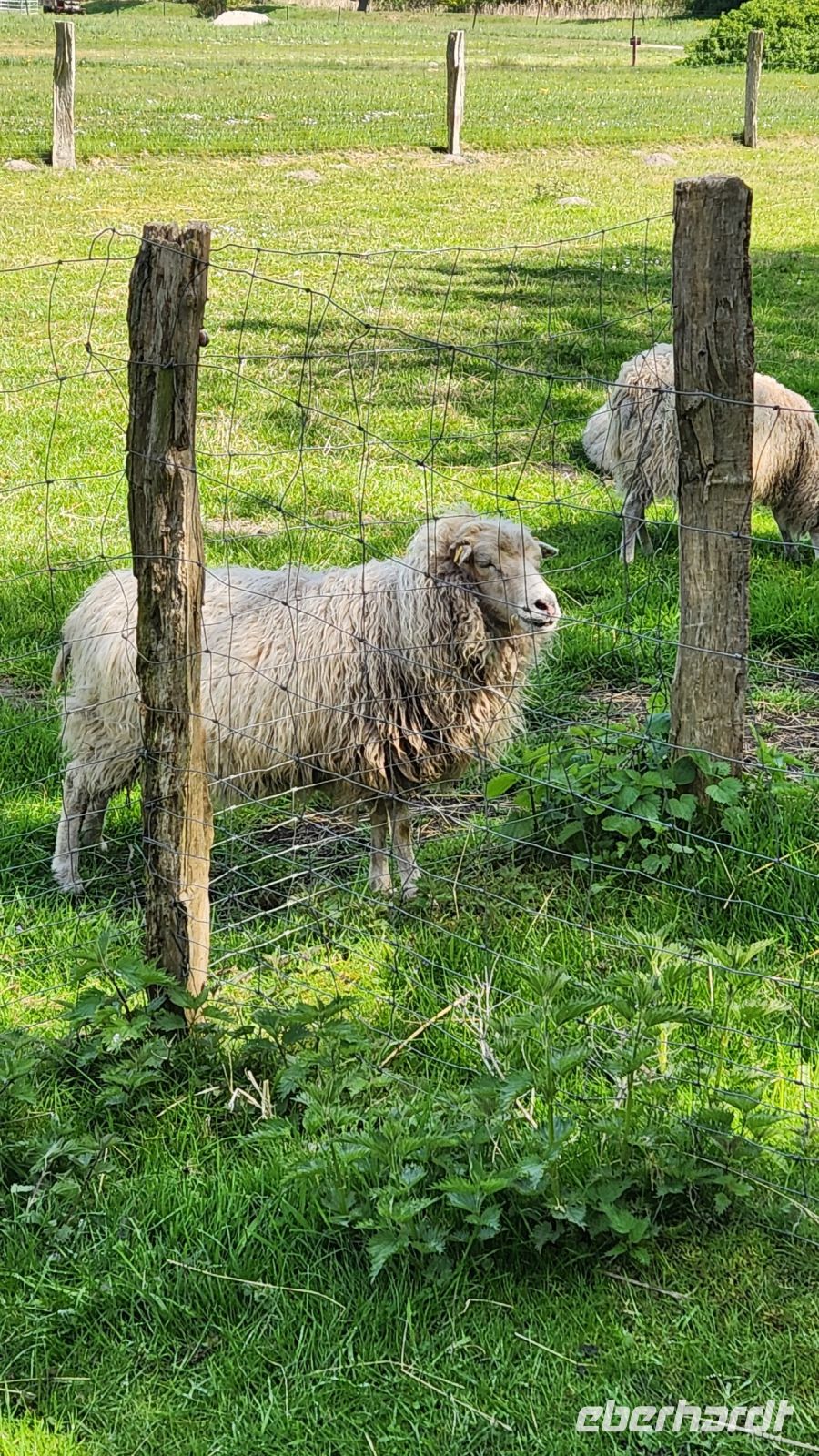 Zum Mittagessen in Ahrenshoop angekommen, gönnen wir uns ein Fischbrötchen, das muss einfach sein! Und da es in Ahrenshoop ein wundberschönes Cafe in einer Windmühle gibt, gehen wir anschließend dort auch noch hin und sitzen draußen in der Sonne bei Kaffee und Kuchen, neben uns Schafe. Danach machen wir uns auf der Boddenseite wieder auf den Rückweg nach Wustrow. Wir kommen an der unter Denkmalschutz stehenden Schifferkirche und am Hafen von Althagen vorbei. Das Schilf ist schon hoch gewachsen, das uns vom Saaler Bodden trennt. Im Wind hängt die Wäsche an der Leine, ein Bild wie aus alten Tagen. Auf den Feldern grasen Pferde und nach einem hübschen Spazierweg durch einen Wald, erreichen wir wieder Wustrow. Da so herrliches Wetter ist, besteigen noch viele von uns den Kirchturm und genießen den Rundumblick über Wustrow, man sieht die alte Seefahrtschule, die Ostsee in weiter Ferne, den Hafen von Wustrow und den Bodden.