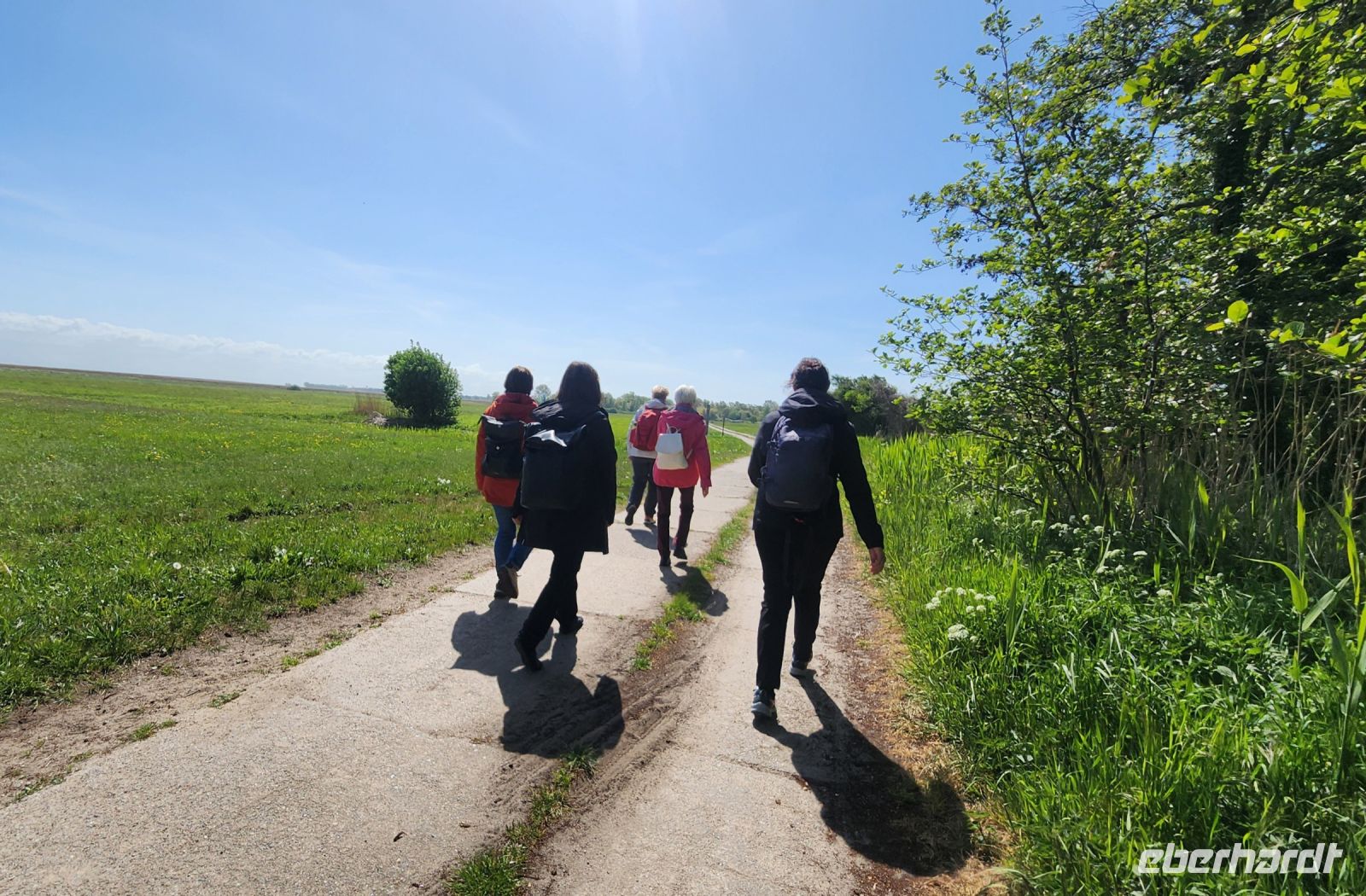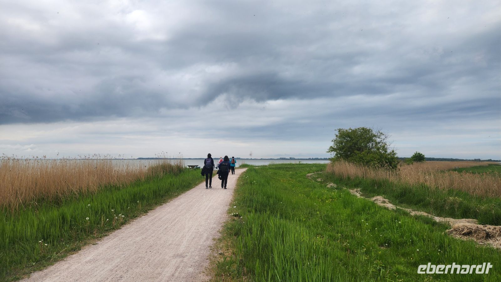 Die Wanderer machen sich am Morgen auf den Weg zur Bushaltestelle und fahren umweltbewusst, wie auch an den anderen Tagen, mit dem öffentlichen Bus. Heute steht eine Rundwanderung auf dem Plan. Wir starten im Seebad Wustrow. Die erste Stunde an diesem Morgen nieselt es und ab dann werden wir die ganze Woche nur noch einen Sonnen - Wolkenmix haben ... wenn Engel reisen :)))