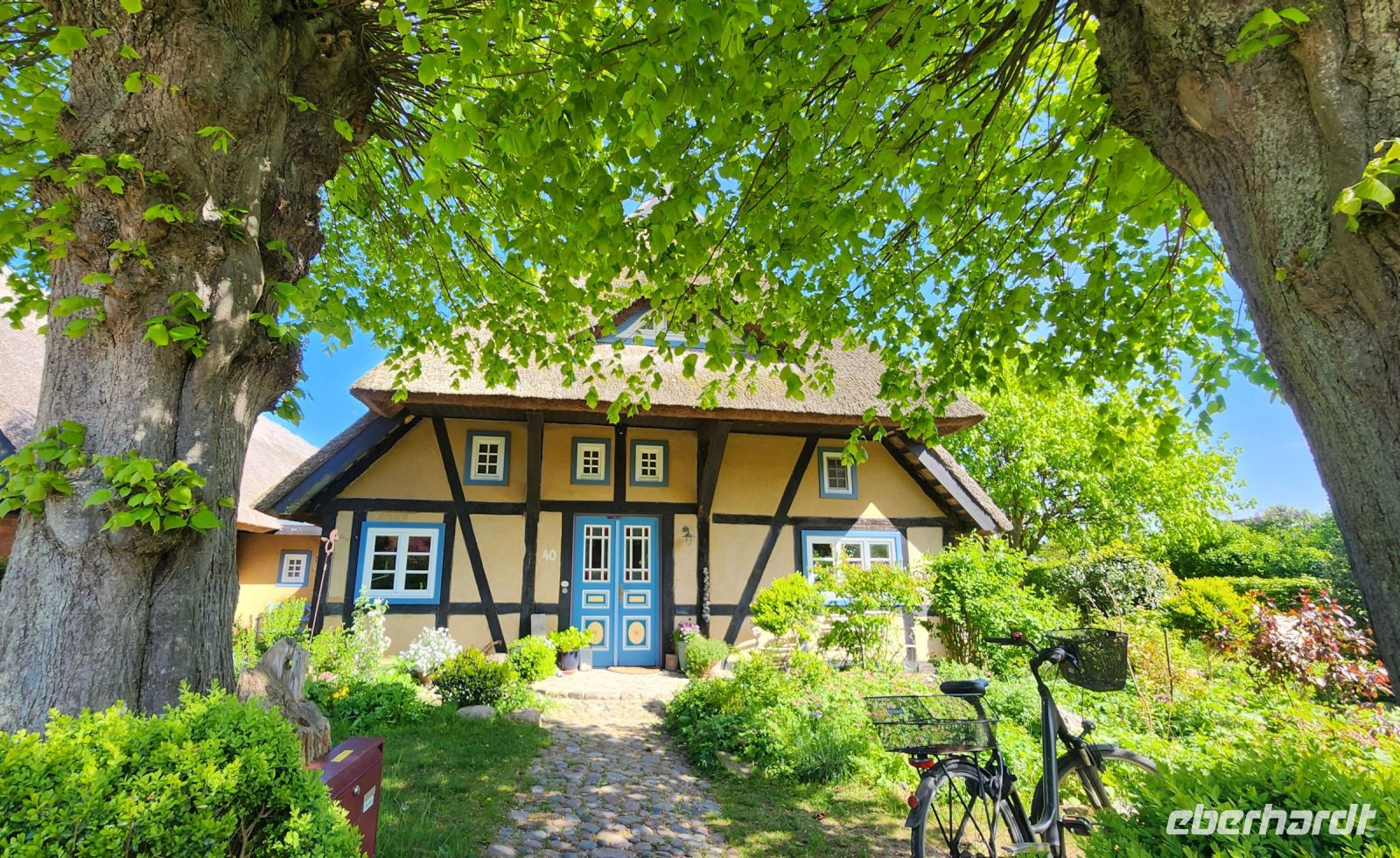 Die Wanderer starten heute in Wieck am Darß. Wir werden die ganze Zeit auf der Boddenseite bleiben. Unser erstes Ziel ist Born am Darß. Ein Bilderbuch - Dorf mit vielen schönen, alten Häusern, mit Rohrdächern und den hübschen Darßer Türen, die handgeschnitzt sind und die verschiedensten Motive zeigen. Immer wieder halten wir an und machen an diesem Tag besonders viele Fotos. Im Cafe Peterssons genießen die meisten ein Stück selbstgebackenen Kuchen, manche auch eine heiße Suppe oder einen knusprigen Flammkuchen. Viele Kilometer laufen wir dann wieder am Schilfgürtel entlang, bis wir Ahrenshoop erreichen. Bis unser Bus fährt, bleibt uns noch etwas Zeit, um im Teeladen zu stöbern.