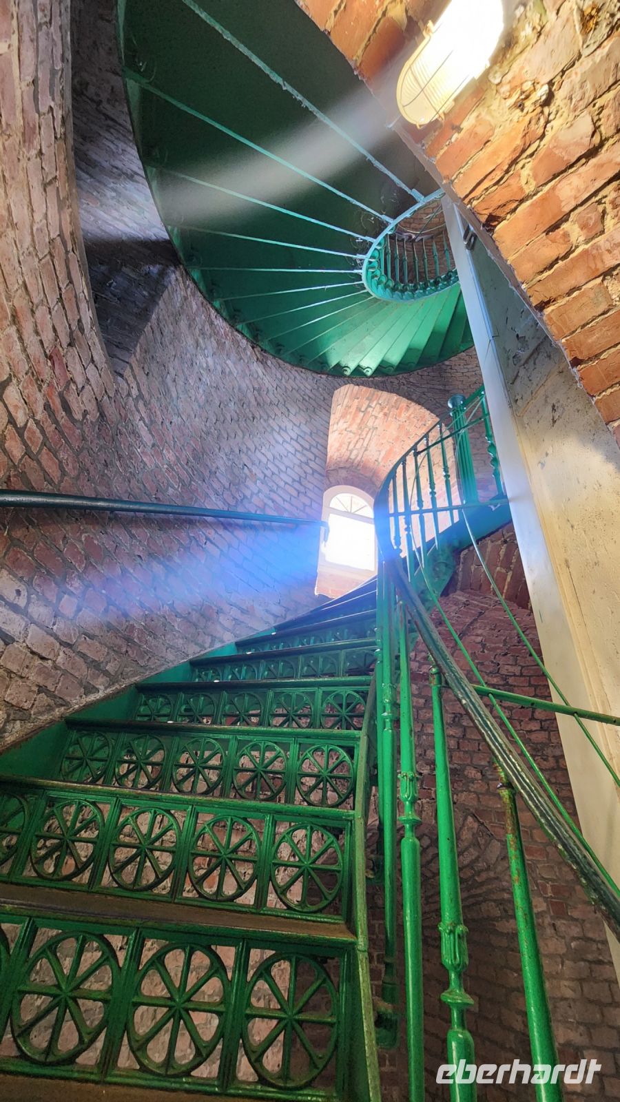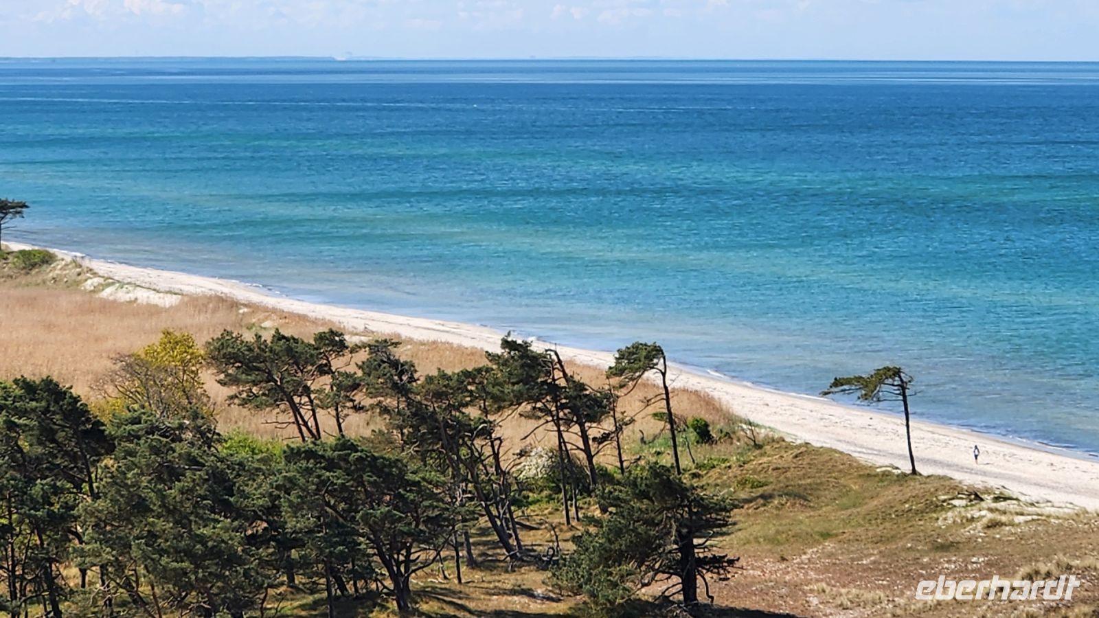 Wir besteigen natürlich auch den Leuchtturm! 126 Stufen sind es, der Blick ist atemberaubend! Wir sehen den berühmten Weststrand mit seinen Windflüchtern, die Kernzone des Nationalparks Vorpommersche Boddenlandschaft und den über 50 ha großen Darßer Wald.