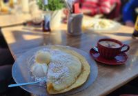 Anschließend machen wir einen Rundgang durch Dierhagen mit Margarete, eine sehr nette ältere Dame, die in Tracht gekleidet ist und uns viele Geschichten über das Fischland erzählen kann. Im Pfannkuchenhaus stärken wir uns im Anschluss mit süßen oder auch deftigen Variationen . Den Rest des Tages verbringen einige am Strand. Beim Abendessen treffen wir uns alle wieder und erzählen uns gegenseitig was wir erlebt haben.