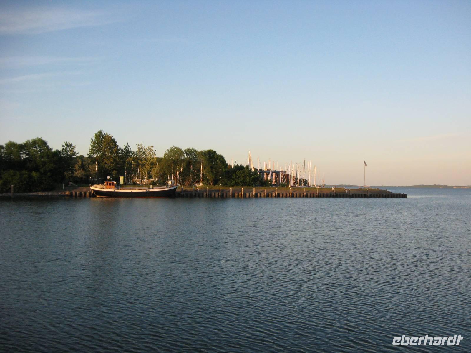 Vom Strand aus konnte man über die Dänische Wieck schon Greifswald sehen.
