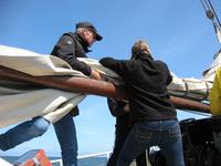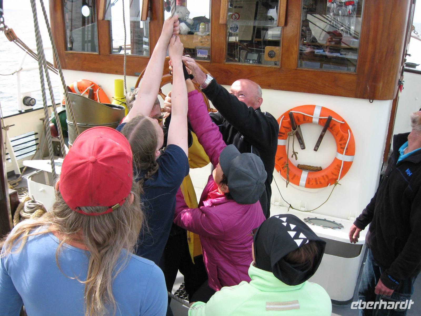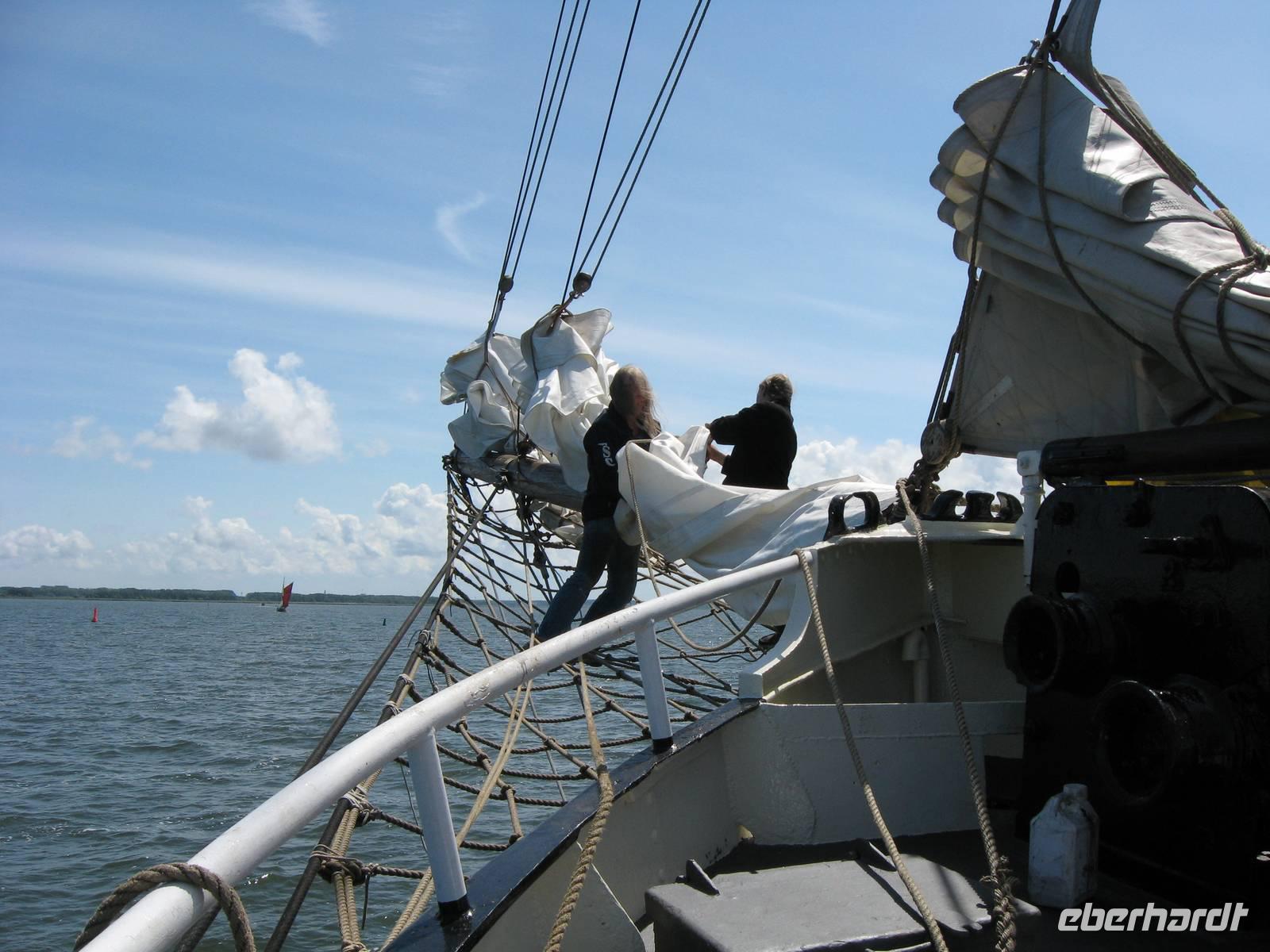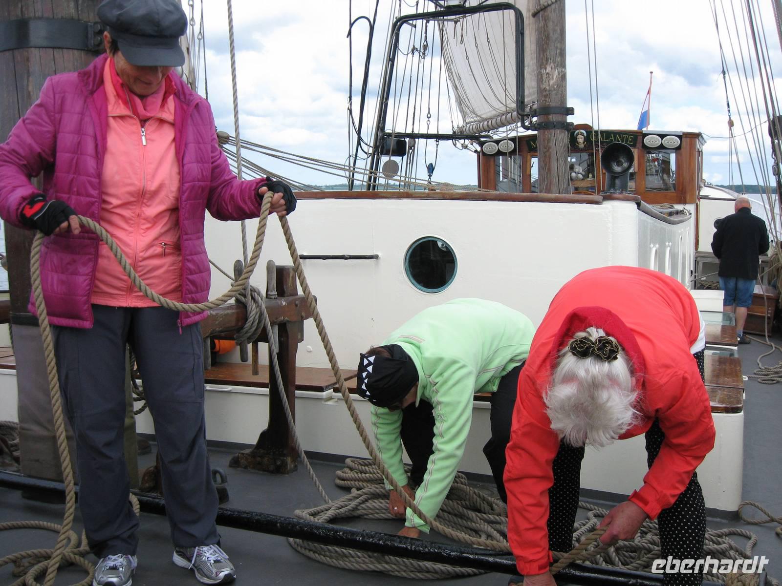 Auf diesen Tag haben wir uns besonders gefreut. Heute werden die Segel gesetzt und wir sind life dabei. Wir haben gelernt, was Luv und Lee ist, wie die Segel heißen und haben selbst mit zugefasst beim Setzen und Einholen der Segel - eine fantastische Erfahrung. Hut ab vor unserem Kapitän Johan, Steuermann Eline, und Maat Joan. Jetzt wissen wir, wie hart der Job ist und mit welcher Leidenschaft sie dabei sind.