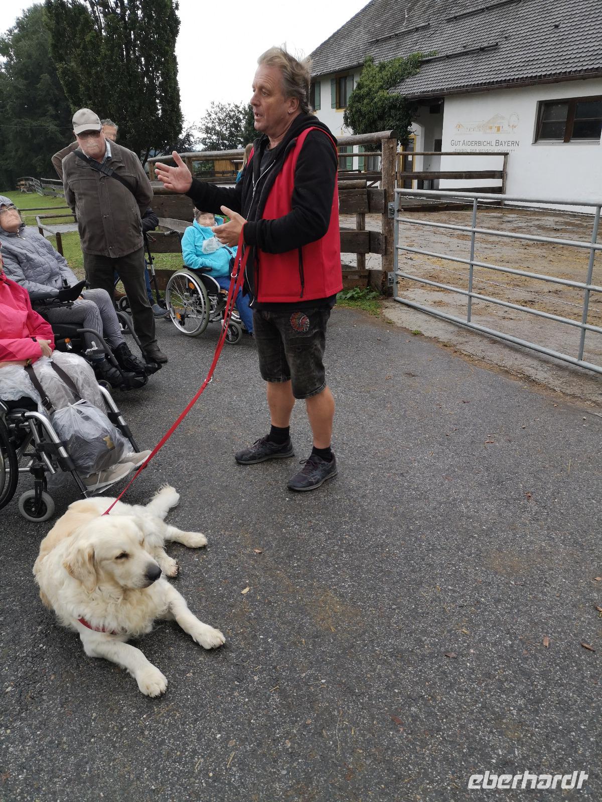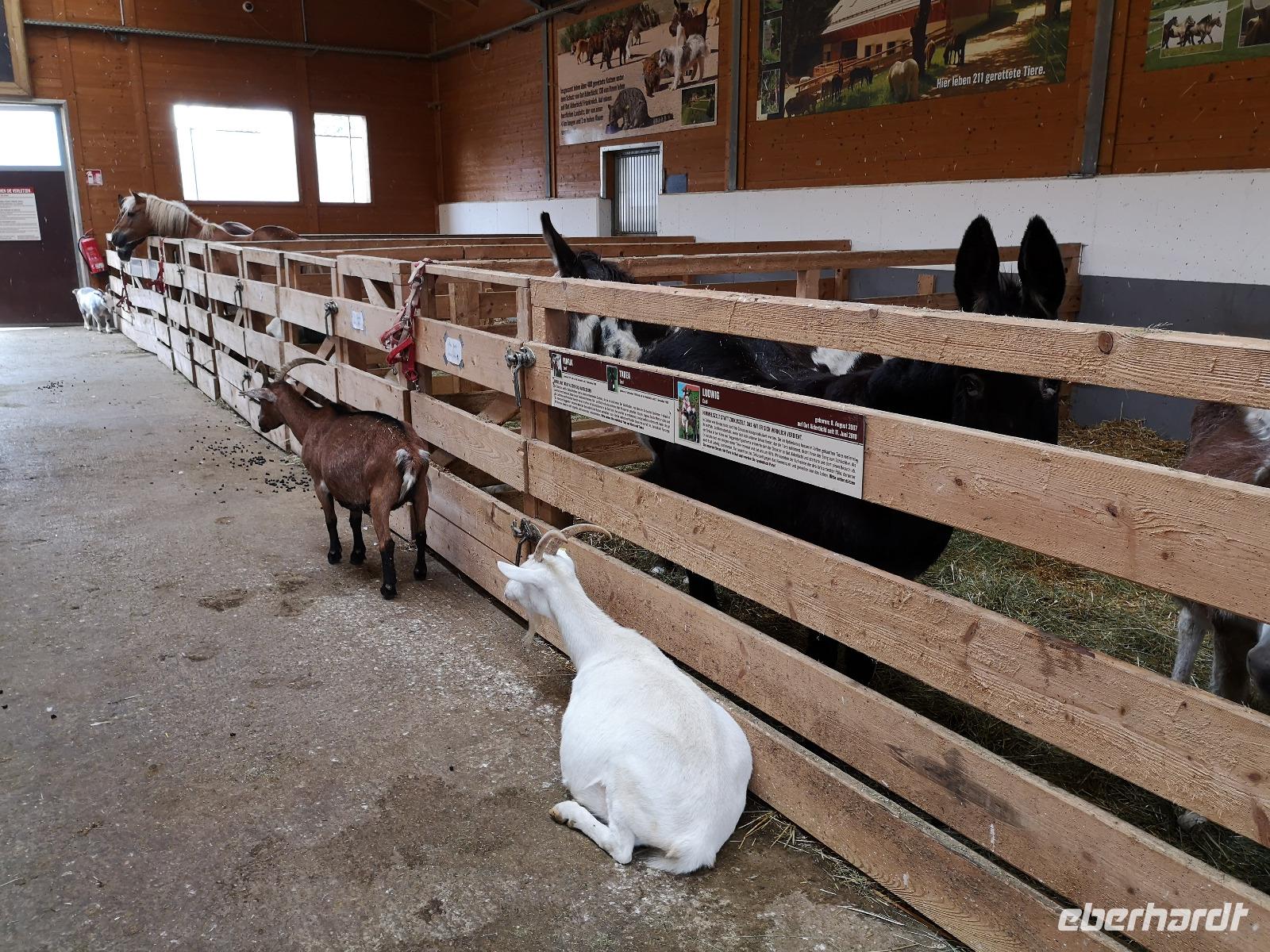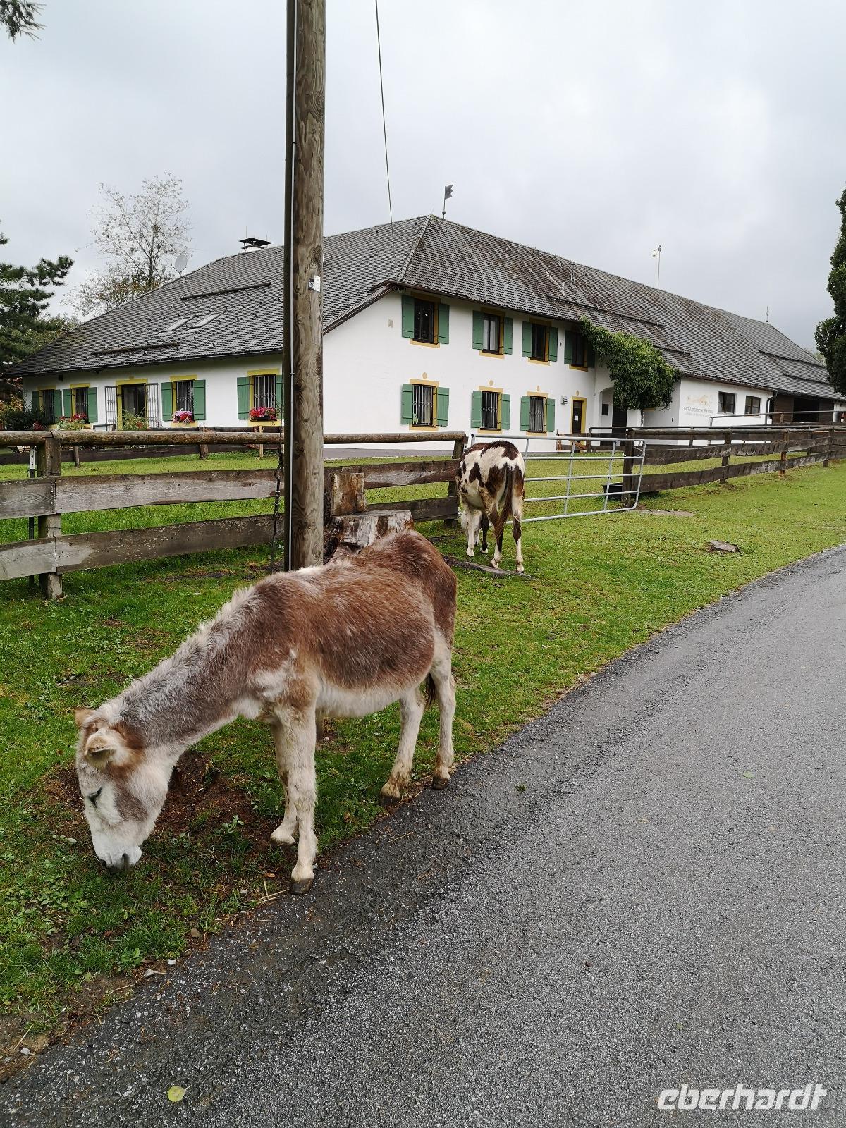 bayrischen Brotzeit kam die Kraft bald wieder zurück. Also dann gings weiter, Punkt 14:00 waren wir wieder alle im Bus, Jan unser Busfahrer ermöglichte uns wieder den komfortablen Einstieg direkt in der Fußgängerzone und dann waren wir auch schon auf dem Weg zum Gnadenhof Gut Aiderbichl. Empfangen wurden wir von Paul, einem sympathischen Österreicher der sich schon über 22 Jahre für die Tiere auf dem Hof einsetzt. Der Regen ließ langsam nach, und wir folgten Paul durch die Freigehege und Ställe, seinen Ausführungen und Geschichten von armen geschundenen Reitpferden, Brunnenpferden aus Rumänien, von zurückgelassenen Ziegen und Eseln die alle eine Zuflucht im Gut Aiderbichl fanden und hier ein schönes Leben haben. Diese Geschichten berühren und wärmen das Herz und somit wollen die meisten auch etwas dazu beitragen damit es den Tieren weiterhin gut geht. Uns ging es ja nun auch besser und schon fast wieder gut, wir kehrten mit dem Bus zurück zu unserem Hotel und machten uns fertig für ein kräftig bayrischer Abendessen.