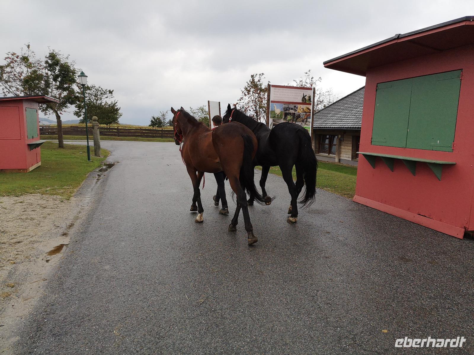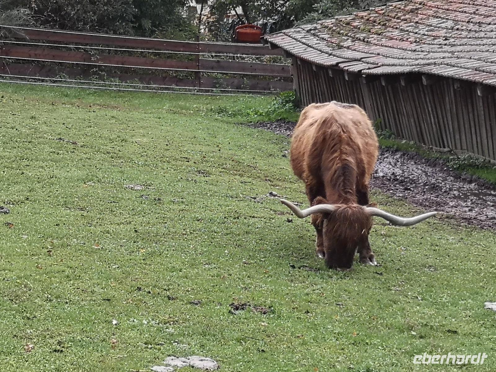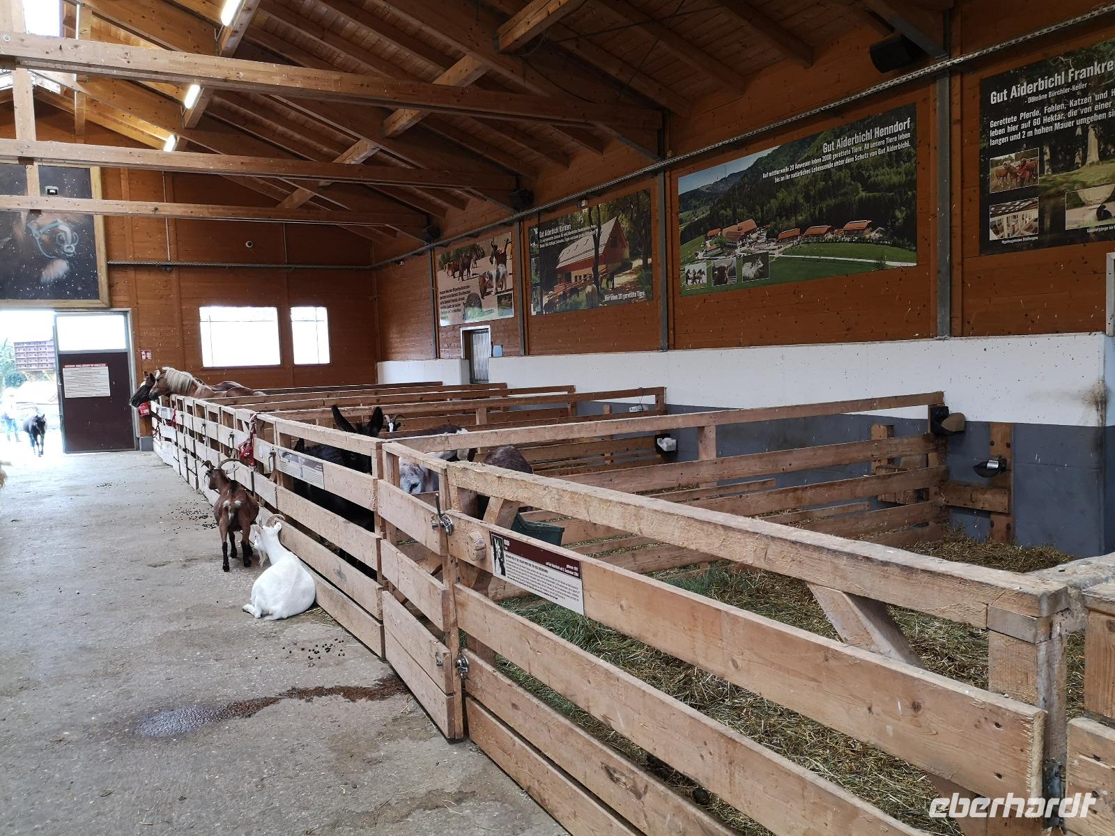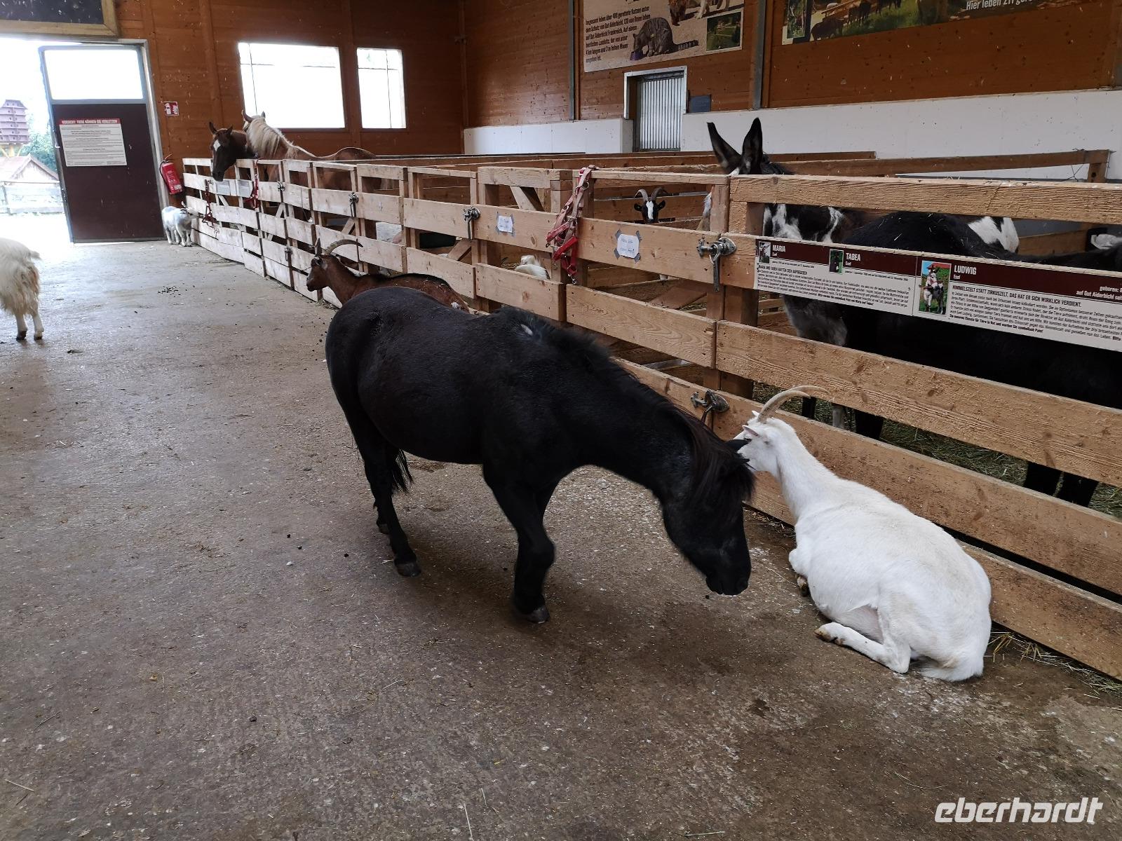 bayrischen Brotzeit kam die Kraft bald wieder zurück. Also dann gings weiter, Punkt 14:00 waren wir wieder alle im Bus, Jan unser Busfahrer ermöglichte uns wieder den komfortablen Einstieg direkt in der Fußgängerzone und dann waren wir auch schon auf dem Weg zum Gnadenhof Gut Aiderbichl. Empfangen wurden wir von Paul, einem sympathischen Österreicher der sich schon über 22 Jahre für die Tiere auf dem Hof einsetzt. Der Regen ließ langsam nach, und wir folgten Paul durch die Freigehege und Ställe, seinen Ausführungen und Geschichten von armen geschundenen Reitpferden, Brunnenpferden aus Rumänien, von zurückgelassenen Ziegen und Eseln die alle eine Zuflucht im Gut Aiderbichl fanden und hier ein schönes Leben haben. Diese Geschichten berühren und wärmen das Herz und somit wollen die meisten auch etwas dazu beitragen damit es den Tieren weiterhin gut geht. Uns ging es ja nun auch besser und schon fast wieder gut, wir kehrten mit dem Bus zurück zu unserem Hotel und machten uns fertig für ein kräftig bayrischer Abendessen.