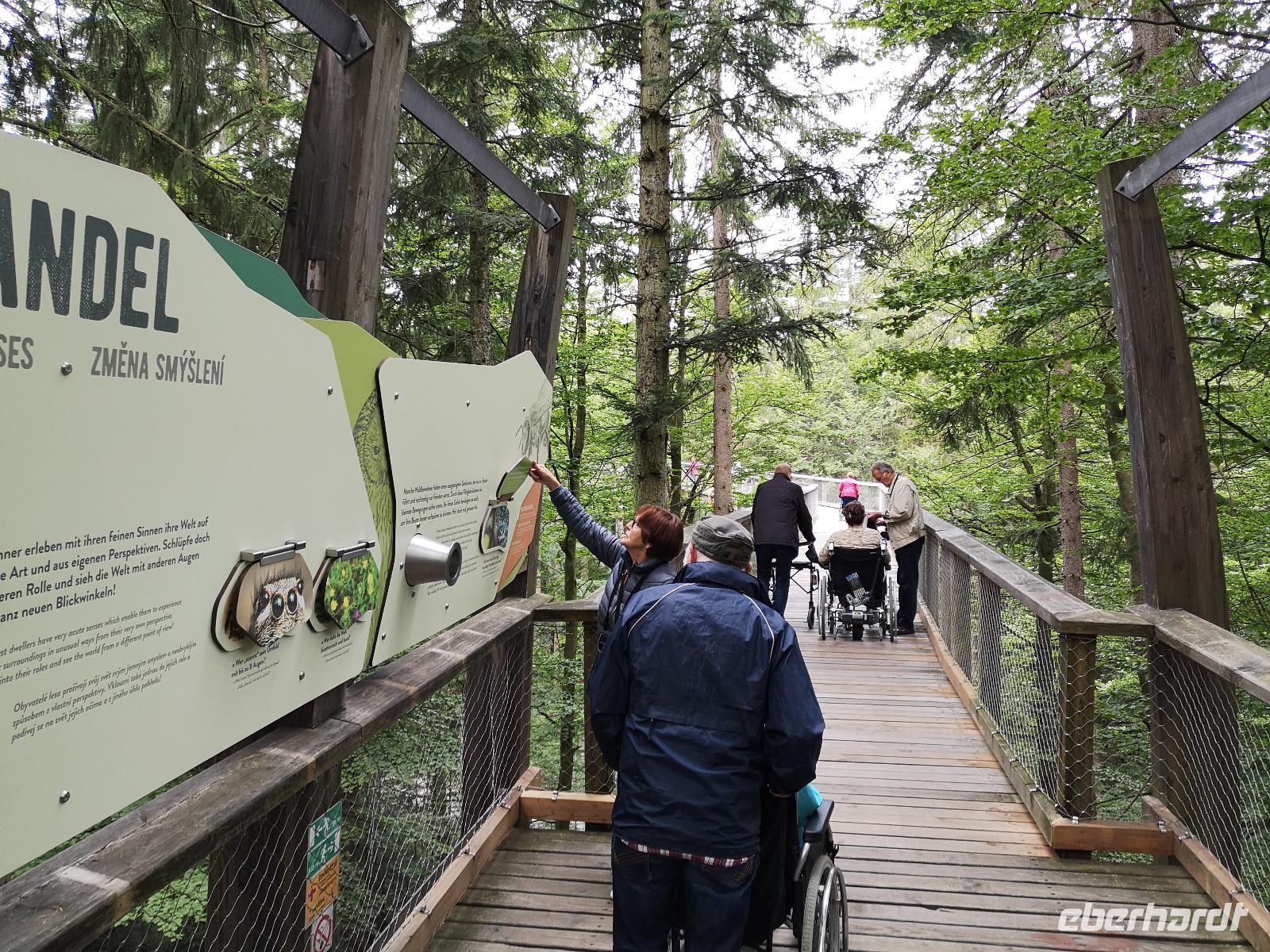 Waldes hinein. So zog sich der Pfad für 1,3 km durch den Wald, immer wieder abwechslungsreich unterbrochen durch Informationsstationen, an denen man entspannt