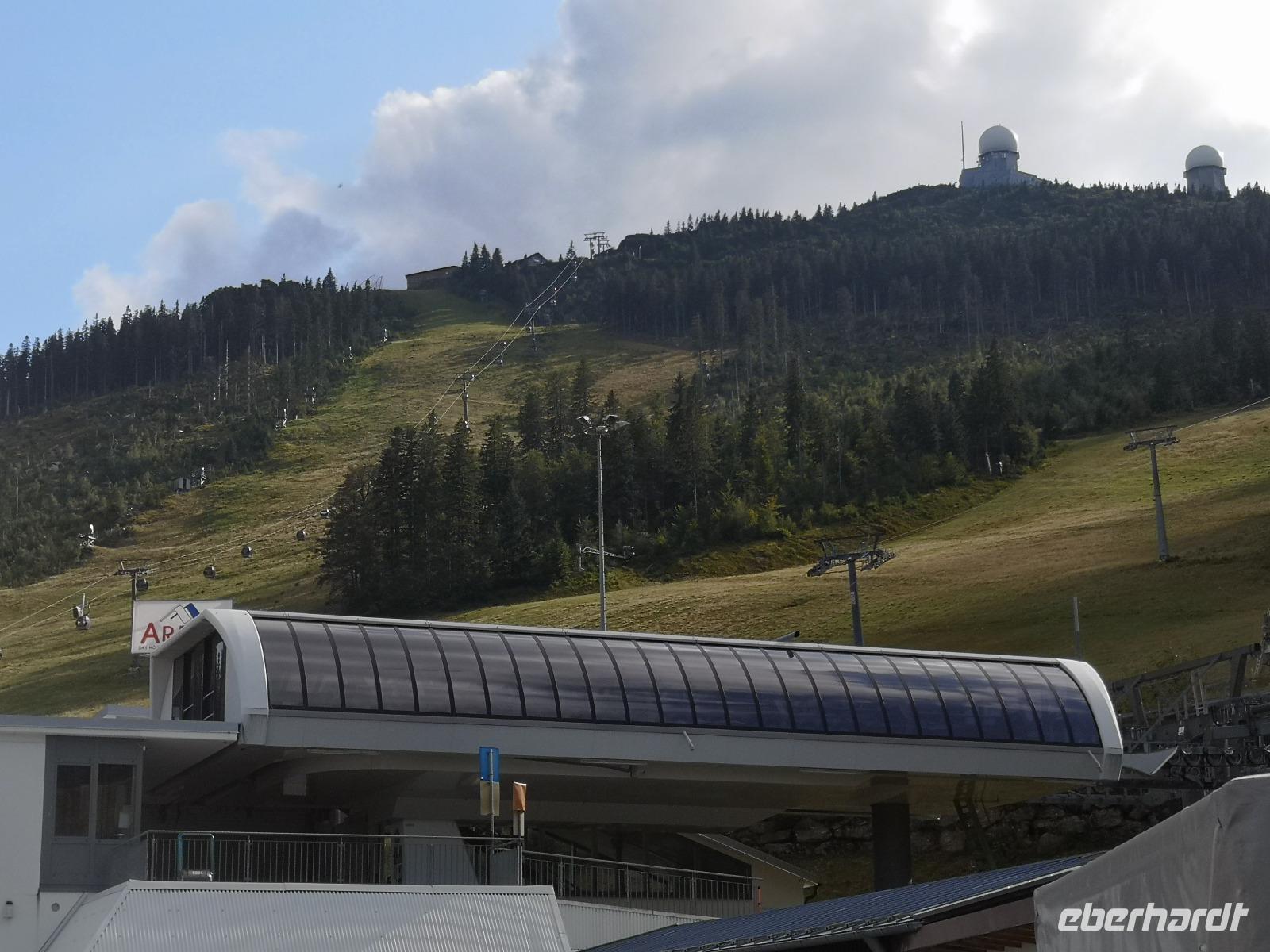 gebracht und ca. 80 m unterhalb des Gipfels an der Bergstation konnten wir wieder