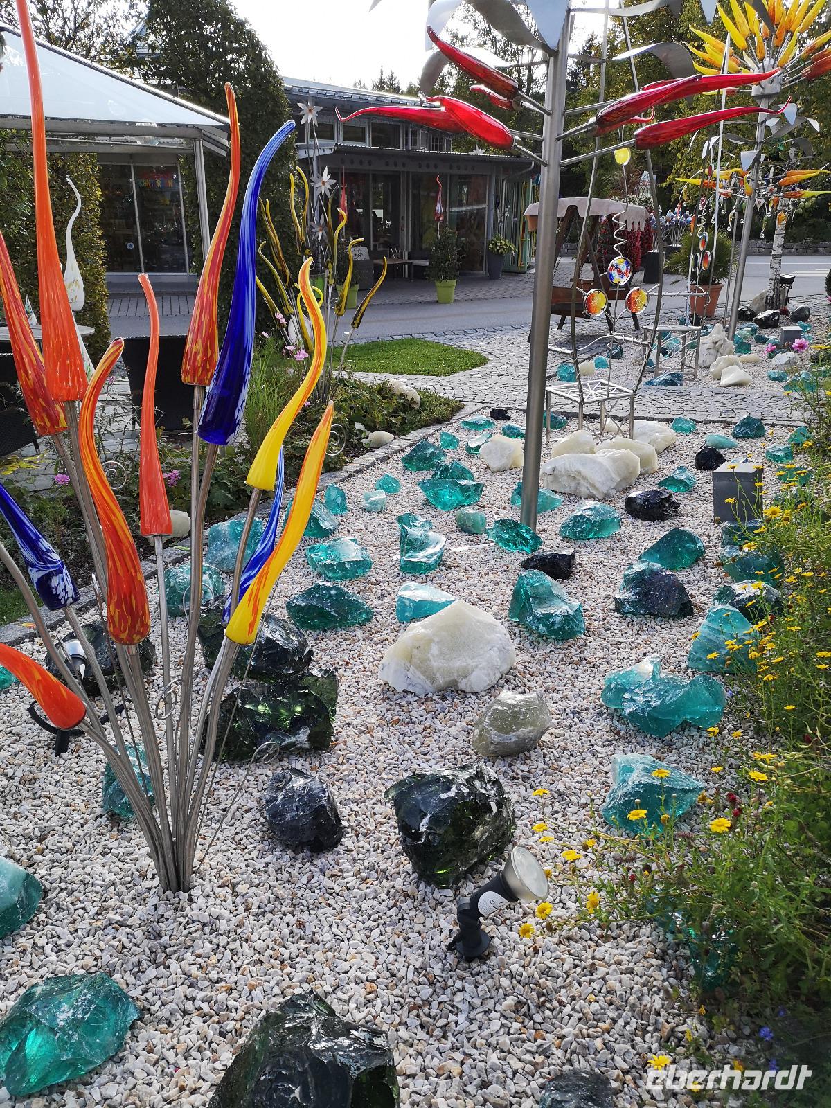 Glases. Hier funkelten Gläser in allen Formen und Farben in den Gärten und den