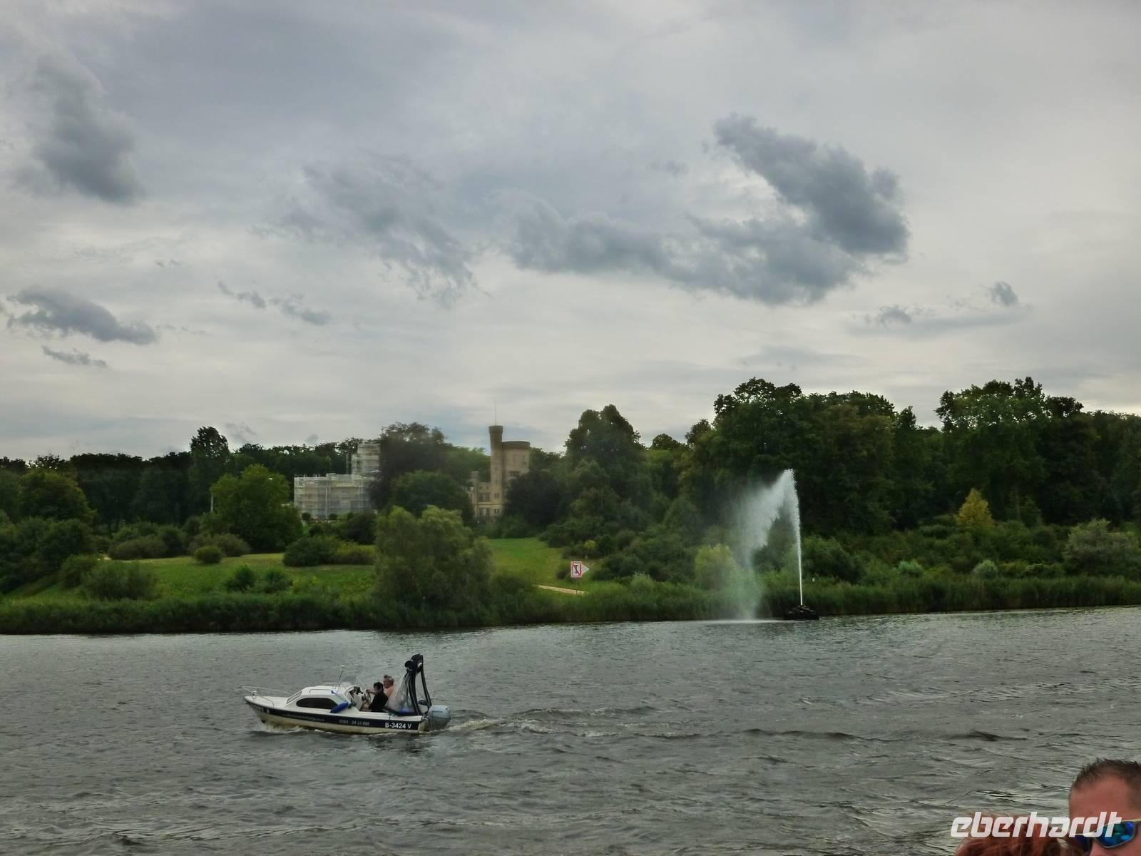 Nach einem reichhaltigen Sonntagsfrühstück starteten wir erst gegen Mittag, um mit einem kurzen Fotostopp an der Glienicker Brücke, nach Potsdam zu gelangen. Diese Kurzreise sollte nämlich mit einer Schlösserfahrt enden. Diese Fahrt widmet sich in besonderer Weise den Parks und den Schlössern der Hohenzollern-Dynastie. In nur neunzig Minuten passierten wir die schönsten am Wasser liegenden Sehenswürdigkeiten. Vorbei am Park Babelsberg mit seinem Schloss, dem Flatow-Turm und dem Hofdamenhaus gelangte unser Schiff "MS Charlottenhof" unter der geschichtsträchtigen Glienicker Brücke hindurch auf den Jungfernsee. Entlang der einstigen Grenzlinie zwischen Ost und West erstrecken sich Schlösser und Gärten zu beiden Seiten der Havel. Preußens Könige und berühmte Baumeister erschufen diese zum UNESCO-Welterbe gehörende Landschaft. Während das Schiff noch Kurs auf die Sacrower Heilandskirche setzte, gelangte hinter einer Landspitze bereits das märchenhaft anmutende Schloss auf der Pfaueninsel ins Blickfeld. Ein weiterer Höhepunkt der Fahrt ist der Neue Garten mit seinem Marmorpalais und dem Schloss Cecilienhof, in dem mit der Unterzeichnung des Potsdamer Abkommen im Sommer 1945 Geschichte geschrieben wurde. Anschließend ließen wir uns am Nachmittag Kaffee und Kuchen in einem Café am Hafen schmecken, bevor wir so langsam an die Heimreise denken mussten.