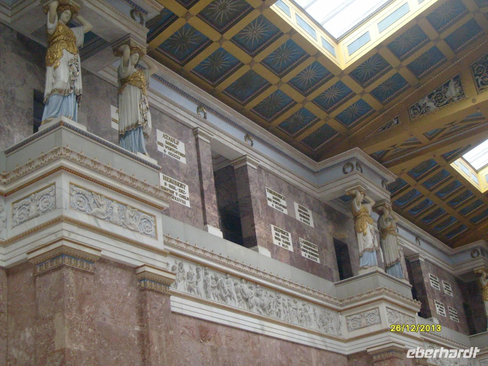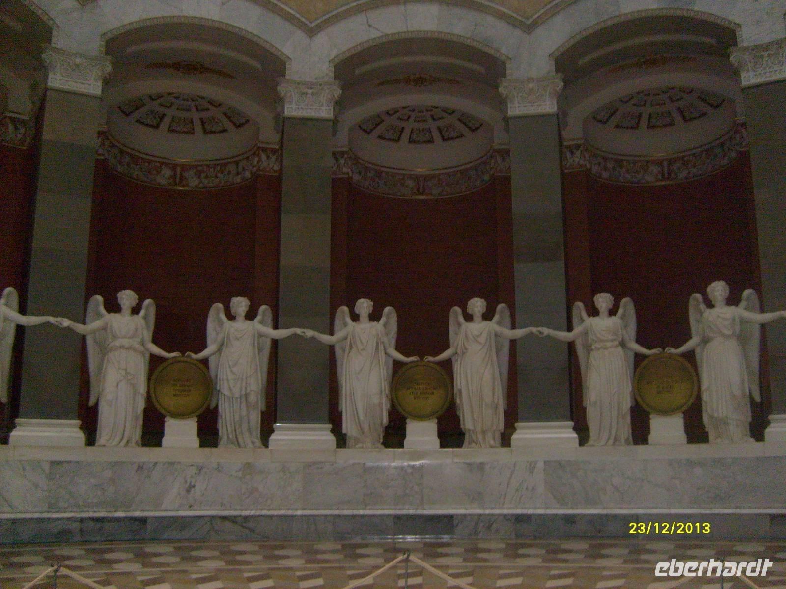 Seitdem stehen die 34 Siegesgöttinnen auf einem rundum laufenden Marmorsockel aus weißem Carraramarmor im Kuppelsaal Hand in Hand - als Sinnbild deutscher Eintracht.