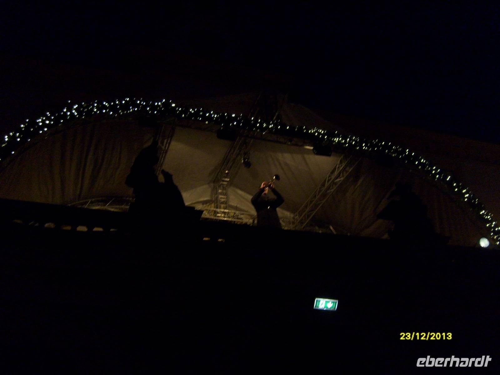 Zum Ende eines jeden Markttages erklingt vom Schlossbalkon der Weihnachtsklassiker "Stille Nacht, heilige Nacht", vorgetragen von einem Trompeten-Solo.