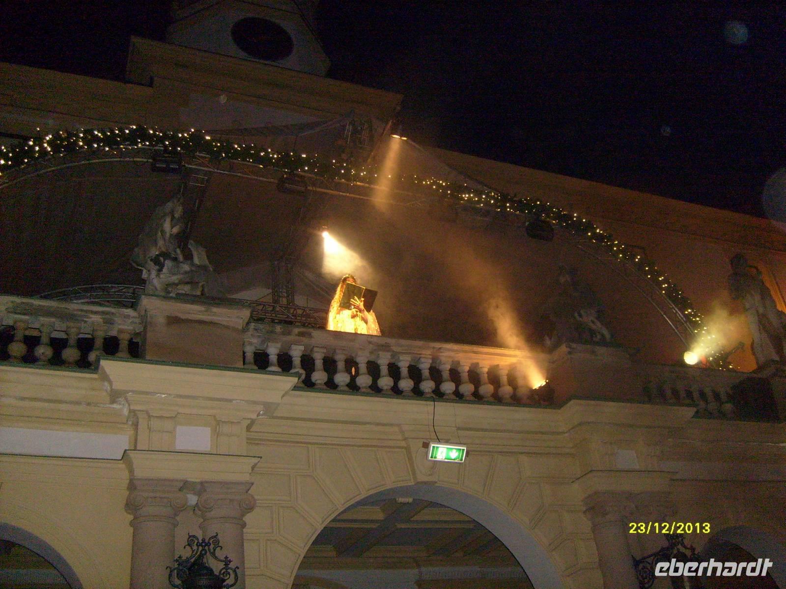 Auch das Christkind verabschiedet sich vom Schlossbalkon von den Besuchern, und es erklingt die Schluss-Fanfare.