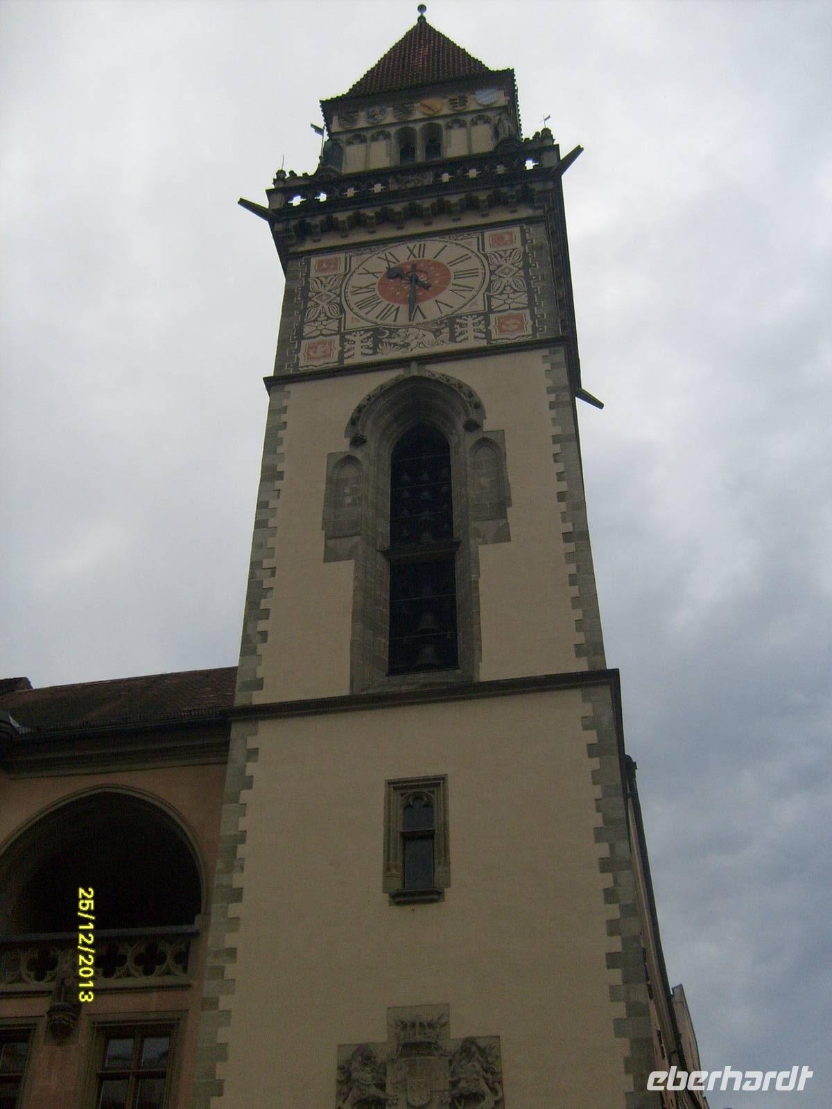 Vom Domplatz laufen wir weiter durch die engen Gassen weiter in die Altstadt und erreichen den Goldenen Turm. Dieser Geschlechterturm stammt aus dem 13. Jahrhundert, und ist der höchste Patrizierturm mit 9 Geschossen. Die reichen Patrizierfamilien bauten im Mittelalter diese Türme als Statussymbol. Je bedeutender die Familie war, umso höher wurde der Turm erbaut. Heute sind noch einige dieser mittelalterlichen "Wolkenkratzer" erhalten, sie geben den Stadtbild einen einzigartigen Charakter.