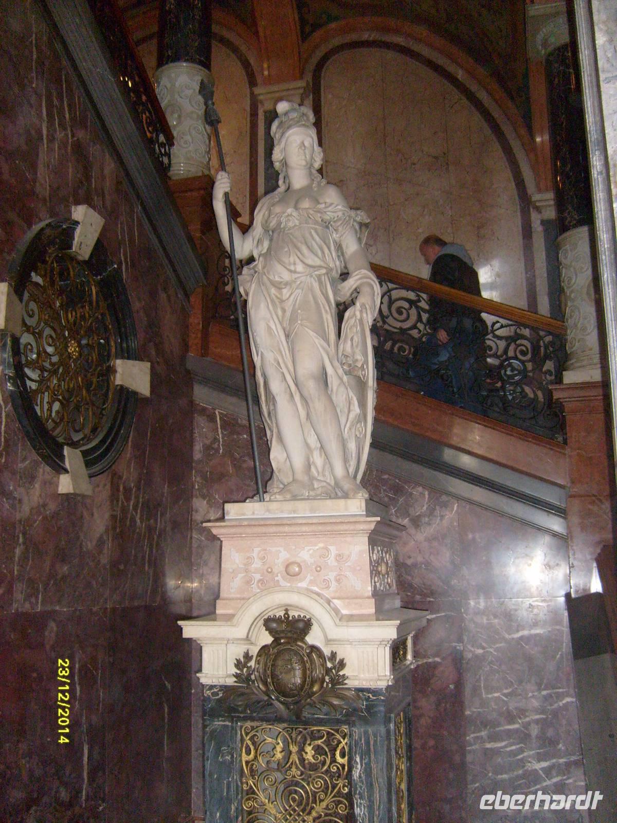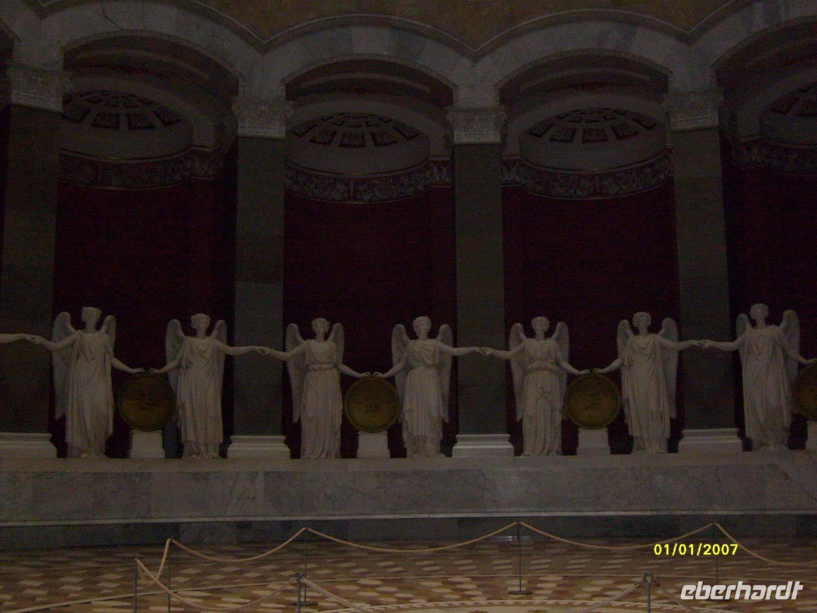 Seitdem stehen die 34 Siegesgöttinnen auf einem rundum laufenden Marmorsockel aus weißem Carraramarmor im Kuppelsaal Hand in Hand - als Sinnbild deutscher Eintracht.