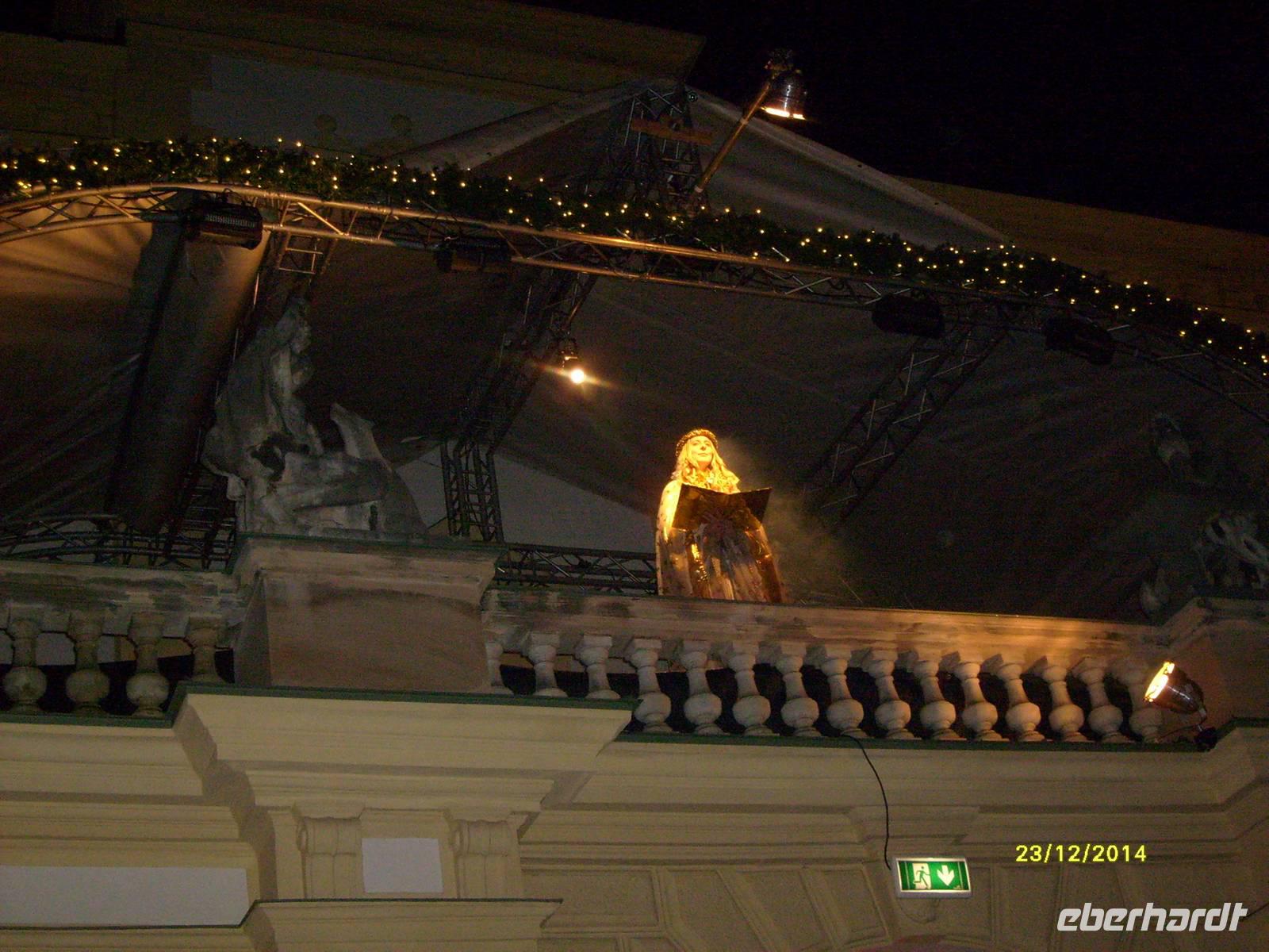 Auch das Christkind verabschiedet sich vom Schlossbalkon von den Besuchern, und es erklingt die Schluss-Fanfare.