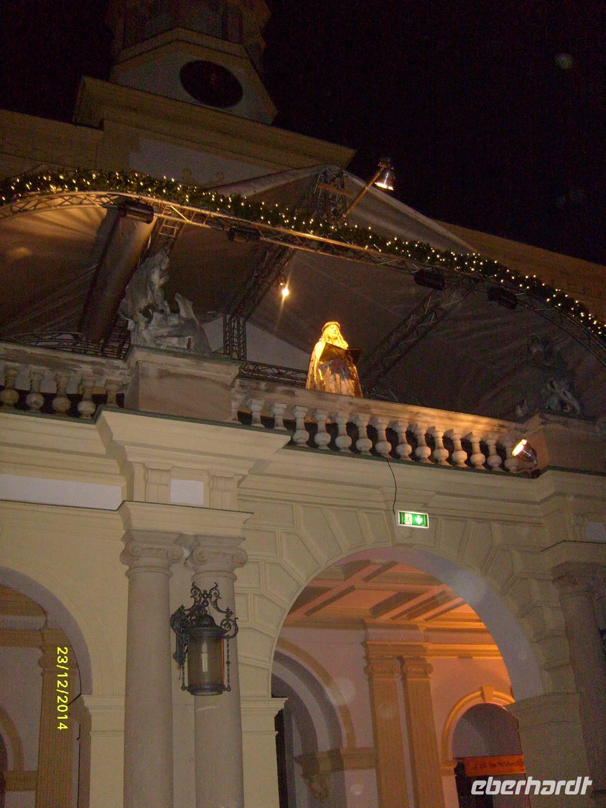 Zum Ende eines jeden Markttages erklingt vom Schlossbalkon der Weihnachtsklassiker "Stille Nacht, heilige Nacht", vorgetragen von einem Trompeten-Solo.