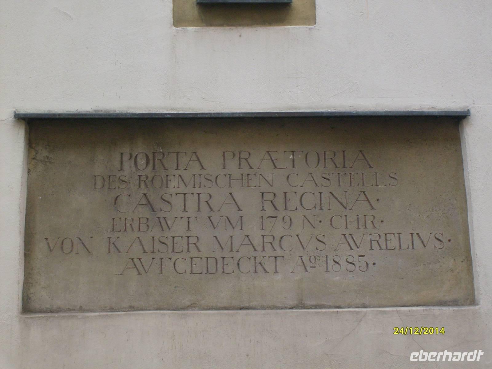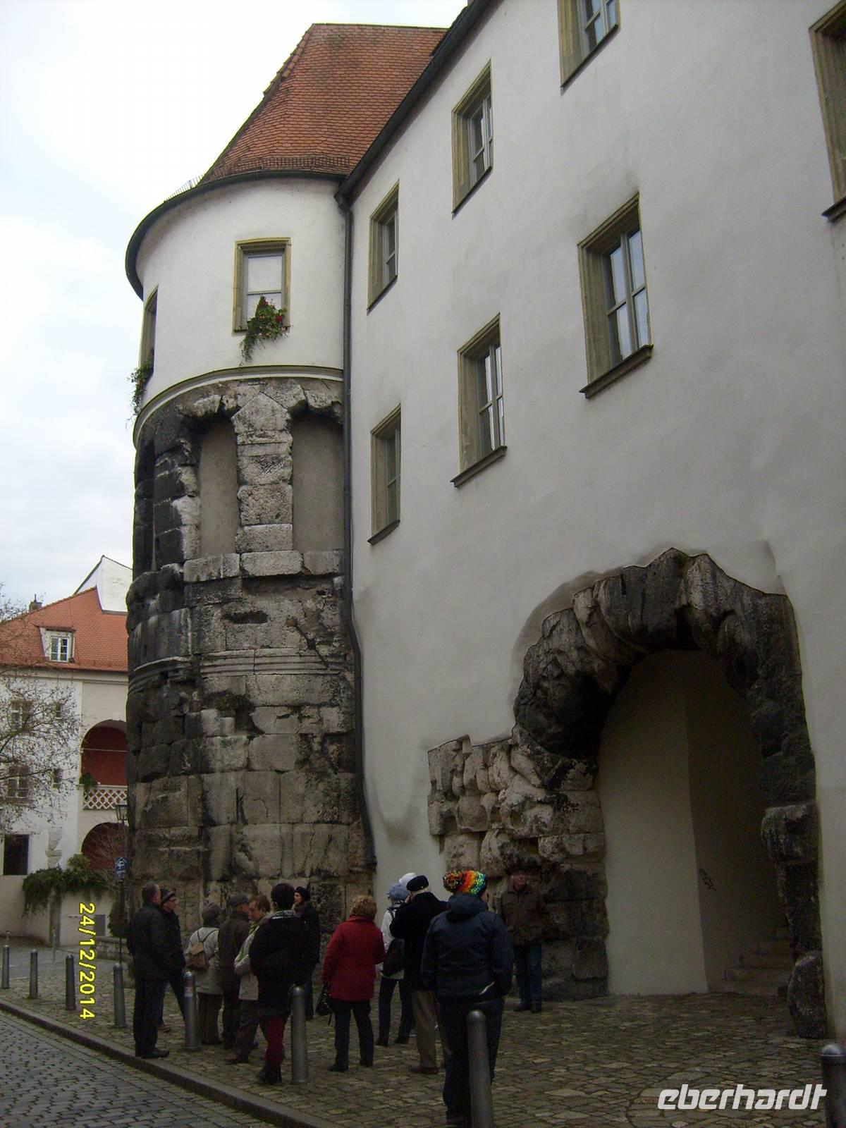Unser Rundgang führte weiter zur Porta Praetoria. Sie gilt als eines der ältesten erhaltenen römischen Bauwerke Deutschlands. Das Tor ist ein Rest des ehemaligen römischen Legionärslagers "Castra Regina" und läßt sich daher auf ein Alter von 2.000 Jahren schätzen.