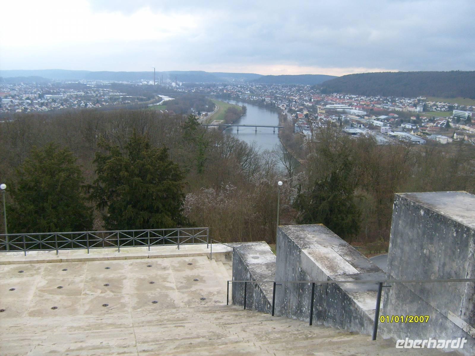 Von hier oben blickt man auf Kehlheim, und auf die Einmündung der Altmühl in die Donau.