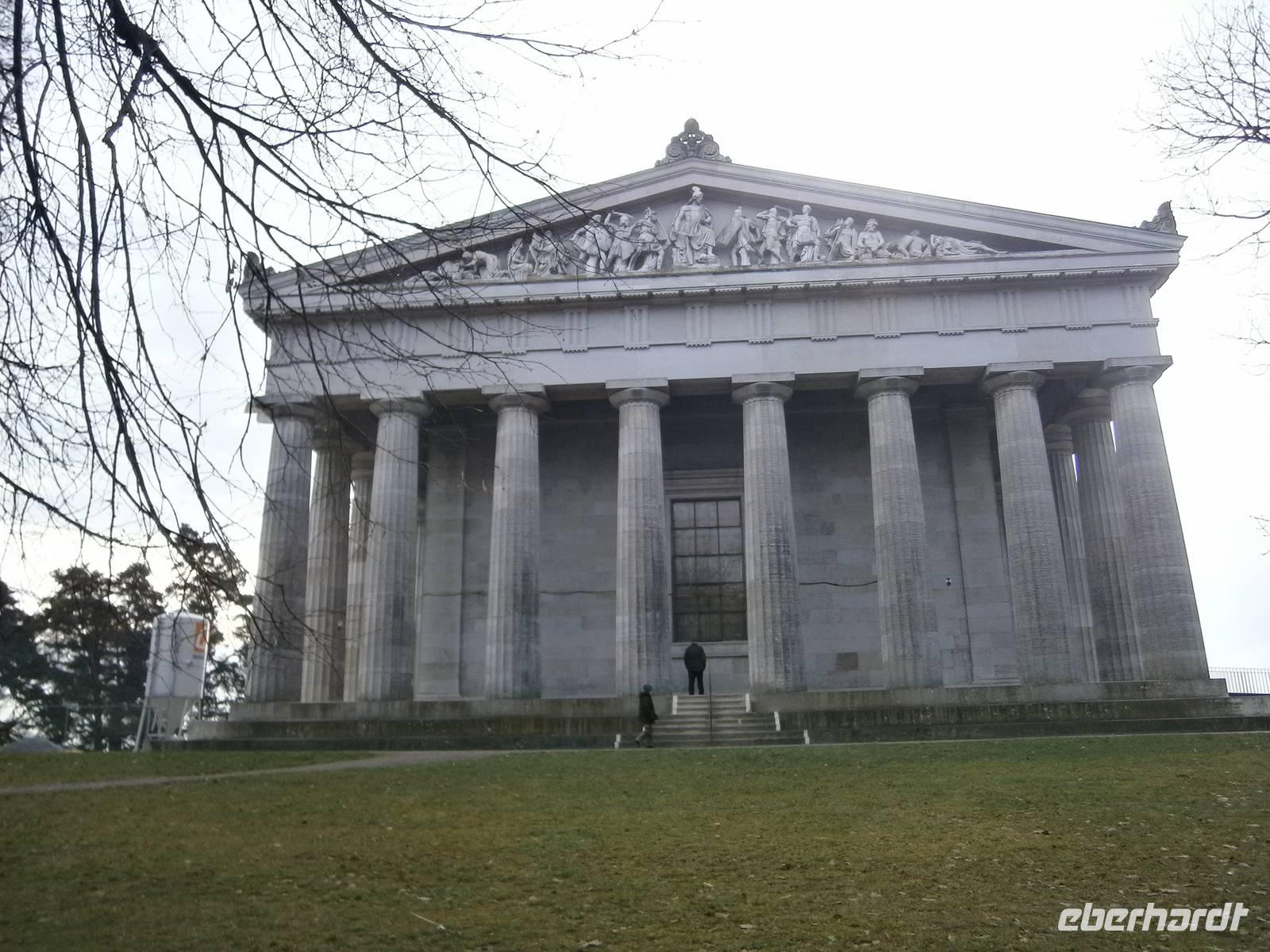 Den ersten Tag des neuen Jahres beginnen wir mit einem ausgiebigen Frühstück. Dann heißt es Koffer laden, denn es geht schon wieder auf Heimreise. Doch zuerst führt uns unsere Heimfahrt erstmal zur Ruhmeshalle der „Teutschen". Die Walhalla hoch über dem Donautal gelegen bietet bei guter Aussicht einen Blick hinunter in das Donautal und nach Regensburg. Kronprinz Ludwig von Bayern fasste den Plan, die „rühmlich ausgezeichneten Teutschen" in einem Ehrentempel zu vereinen. Für den Bau hatte er das griechische Tempelschema vorgeschrieben. Leo von Klenze, der Architekt, gestaltete die Außenarchitektur der Walhalla nach dem Vorbild des Parthenon auf der Akropolis in Athen. Im Inneren der Ruhmeshalle stehen Marmorbüsten und an den Wänden sind Marmortafeln angebracht. Es ist eine „Versammlung" von Persönlichkeiten die von deutscher und europäischer Geschichte zeugen.