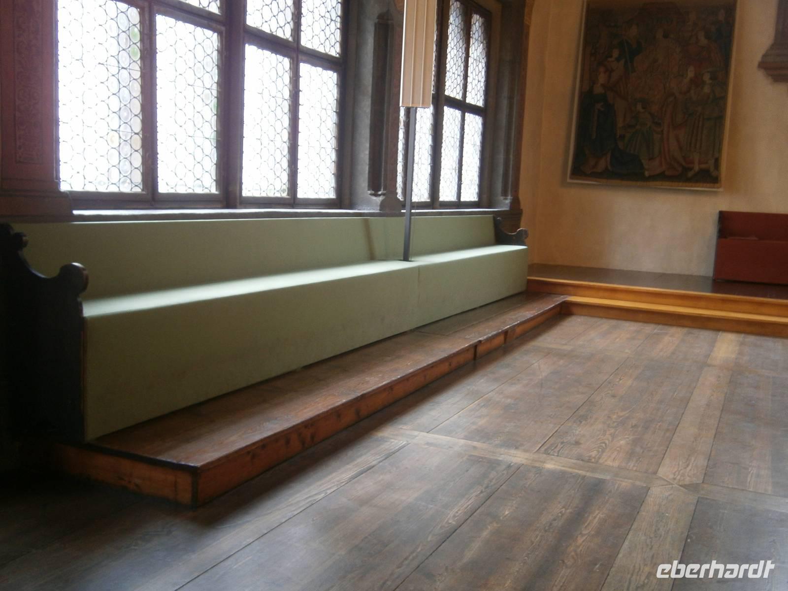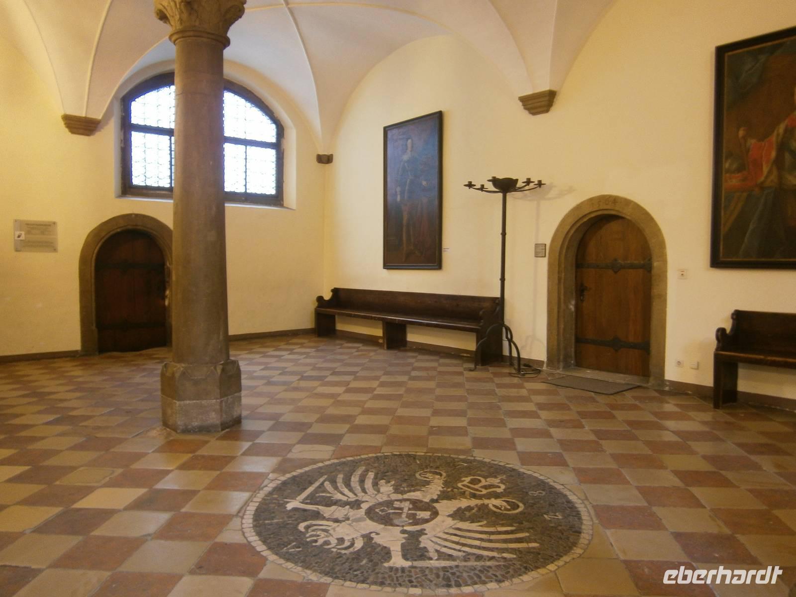 Am nächsten Morgen bringt uns unser Buschauffeur zum zentralen Busterminal. Den Weg kennen wir schon vom Vortag. Gemeinsam spazieren wir wieder über die Steinerne Brücke. Der Besuch des Reichstagsmuseums, ein Ort mit großer Geschichte, steht auf dem Programm. Im Alten Rathaus schlug über Jahrhunderte das Herz der Freien Reichsstadt Regensburg. Hier arbeiteten der Stadtrat und die Verwaltung; hier war - mit Gefängnis und Fragstatt im Untergeschoss - das Gerichtswesen ansässig. Von 1663 bis 1806 tagte am Ort zudem der Immerwährende Reichstag. Er brachte damals die große deutsche und europäische Politik und ihre Vertreter nach Regensburg. Die Atmosphäre des Reichstags ist im Reichssaal und den Beratungszimmern noch gut zu spüren Das Museum wurde 1963 im Reichssaalbau und den historischen Räumen des Alten Rathauses eingerichtet. Das Museum umfasst den Reichssaalbau und andere sehenswerte Räume. Darunter unter anderem das Kurfürstenkollegium. Es diente als Ratsstube und später als Beratungszimmer der Kurfürsten. Das Kurfürstliches Nebenzimmer - hier steht der angeblich originale „Grüne Tisch" und der Reichssaal - einer der bedeutendsten Profanräume des Mittelalters mit erhaltener Holzdecke und dem Kaiserthron. Eine Entscheidung am grünen Tisch fällen, hat ihren Ursprung am grünen Tisch im Saal. Gemeint ist, dass damit zwar die theoretische Grundlage beschlossen wurde, aber die Entscheidung sich erst noch in der Praxis bewähren muss.