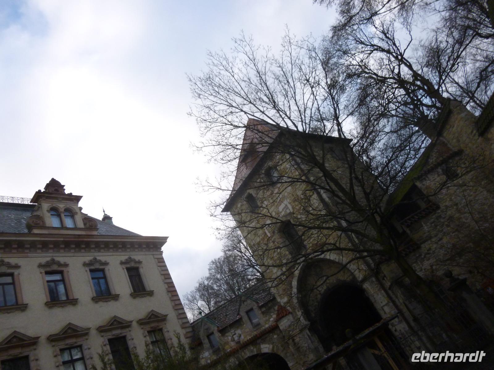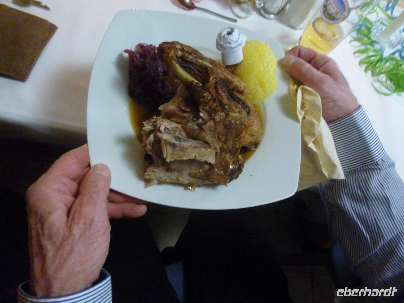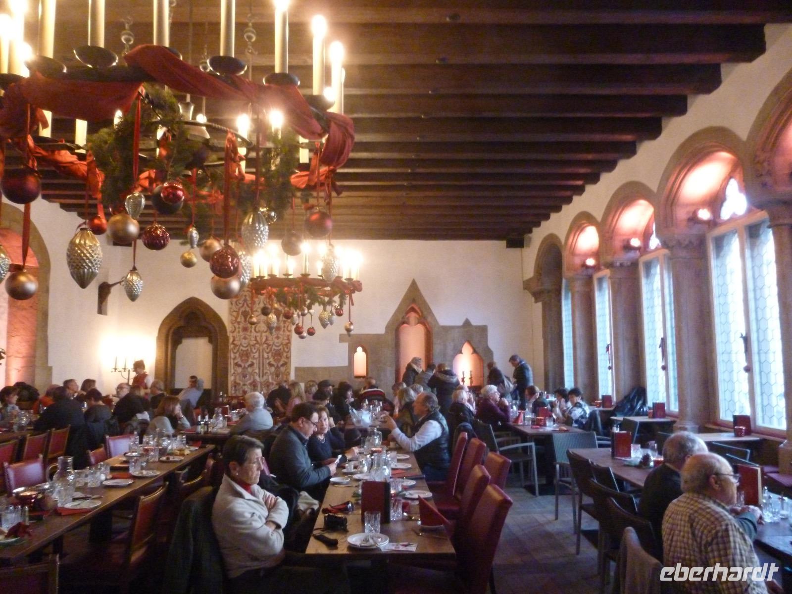 Der Burgherr intonierte im Sprechgesang mit angenehmer Stimme zwei Strophen der Heldenballade, es gefiel und dennoch wollte keiner in der momentan recht nasskalten Welt des Mittelalters bleiben. Auch knurrte uns der Magen und so fuhren wir zum schönen Schlosshotel nach Eggersberg. Es hatte kaum geschneit und wir steuerten mit hungrigem Magen das schöne Schlossrestaurant an.