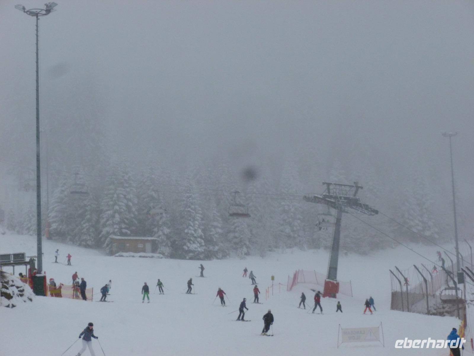 Unser Weg führte uns Nachmittags zum Hohenbogenberg nahe dem alten Wallfahrtsort Neukirchen beim Heiligen Blut. Dort erwartete uns leichtem Nieselregen die schwungvolle Musik von „Erwin und den Heckflossen", ein stimmungsvoller Ski-Fackelformationslauf und zum Abschluss ein Riesenfeuerwerk. Gegen Mitternacht zurück schliefen wir umso besser.